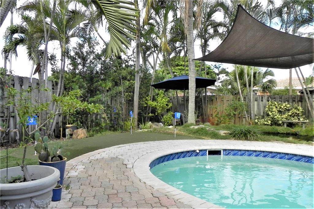 This one "hits home" on so many levels. Definitely a MUST SEE. From the backyard area with a large covered patio, waterfall pool, Koi pond, butterfly garden, small putting green, lily & lotus pool, and more. Spacious 3/2 home in the heart of Hollywood Hills has bonus room perfect for an indoor office. Remodeled kitchen with double oven and extra large pantry. Impact windows throughout. Tiled living areas and laminate bedrooms. Unique primary bathroom/dressing room has vanity, walk-in closet, separate tub & shower. Wireless monitored alarm system, composter, blown in insulation in attic, wireless cameras inside and out. Landscape lighting. 2-car garage.