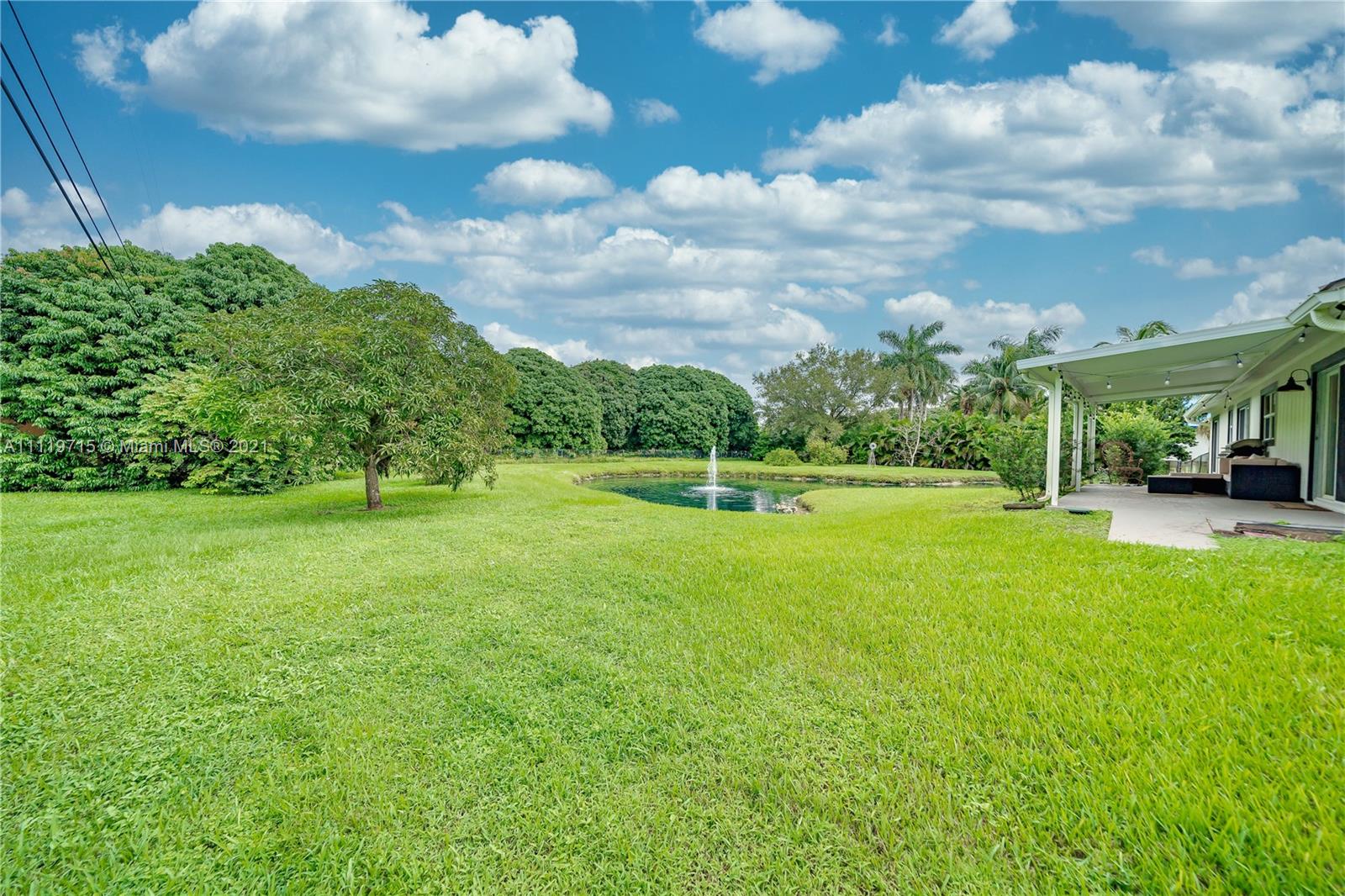 Wow move in ready 3 bedroom 2 bathroom one story home on a 56+ sqft lot (over 1.3 acres) including metal roof, full impact windows, 2016 AC, 2017 water heater, and brand new well pump, and all new insulation blown in the attic both done in 2020. Enjoy open living spaces including expansive tv room and kitchen that overlooks the family room, and neutral tile in all main living spaces. Relax on your back patio overlooking the pond. Start your own business and take advantage of the tax benefits with your amazing mature lychee and mango trees. Property is fully fenced. No HOA, minutes from 595, and I75, great Davie school system, and the list goes on.