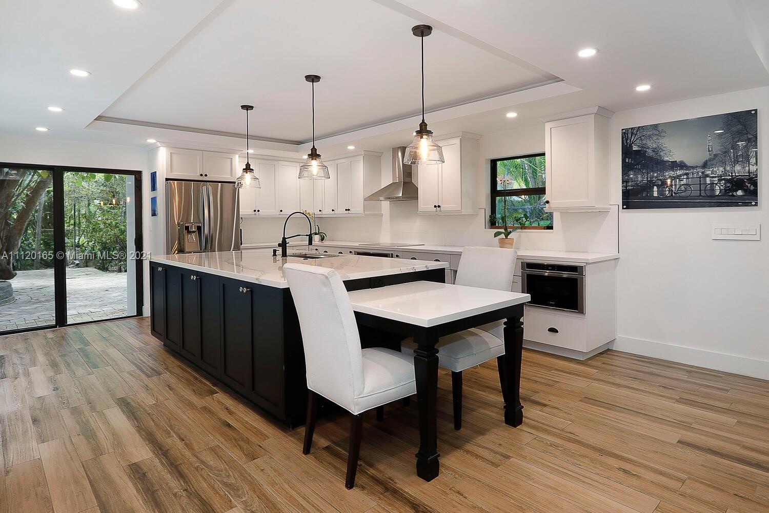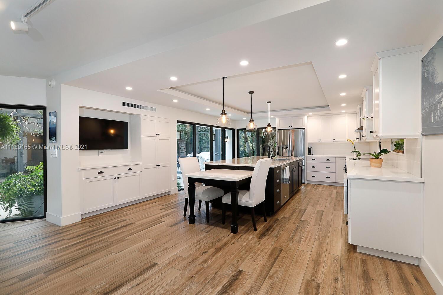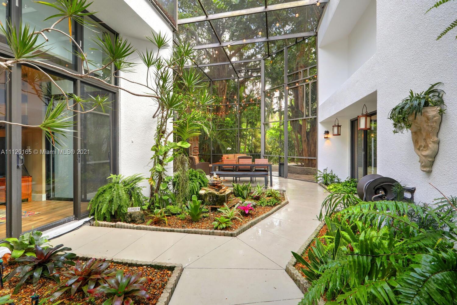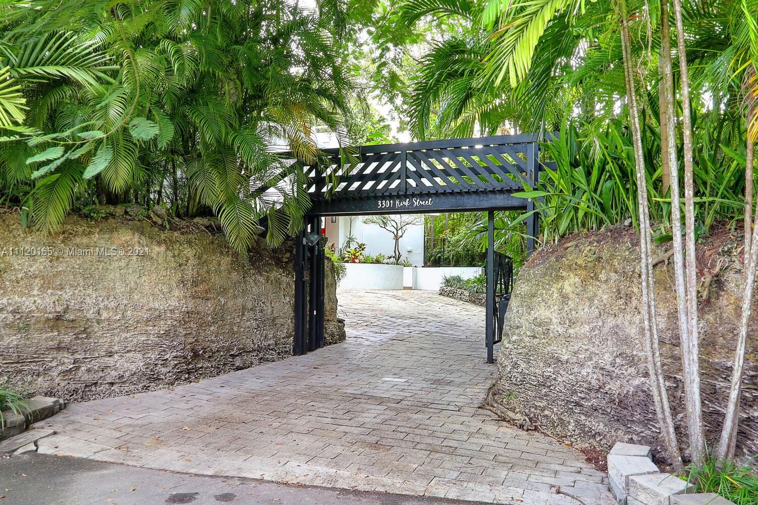 Unique modern-style home designed by the renowned architect, Hernando Acosta. Surrounded by lush tropical garden & set high on the Silver Bluff Ridge (22 ft. above sea level). The impressive, gated entry is framed w/massive coral rock formations & opens to a bricked motor court. Light-filled interior spaces w/ high, wood-beamed ceilings overlook the expansive double-height screened terrace for year-round outdoor living & entertaining. New custom kitchen (2017) features lacquered wood cabinetry, quartz countertops, high-end appliances & large center island. Recent updates: 2 new HVAC systems, water heater, wood-plank style porcelain tile flooring, updated bath & impact glass throughout the home. Additional features: fireplace, wine cellar & 2CG. Walk to bayfront parks & the Grove village.