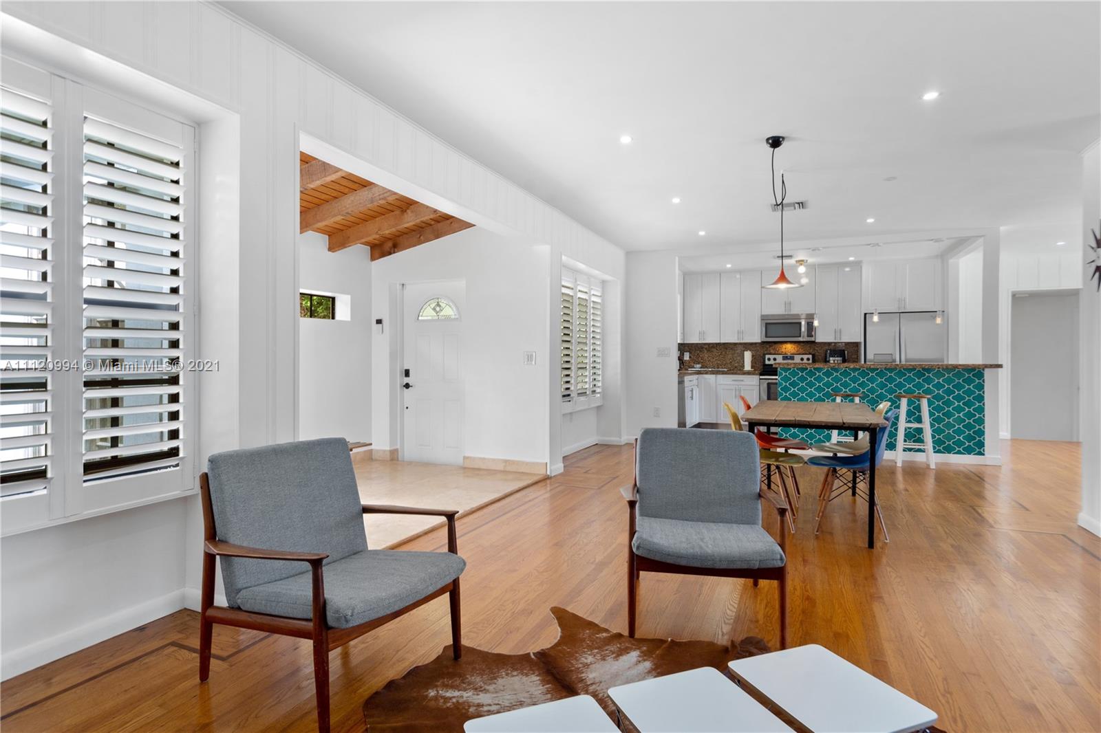 Relax and entertain in this updated 3 bed - 3 bath house in one of the best neighborhoods of Miami Shores! This charming house sits on a 9,600 sq ft lot and features hardwood floor throughout, an open & split floor plan, an updated kitchen with stainless steel appliances, 3 modern bathrooms and a laundry room. The large & bright dining and living room with new impact sliding door overlooks a large tropical backyard with pool that offers great privacy. The spacious master bedroom has direct access to the pool area. The property is centrally located near private and public schools, a golf course, grocery stores, restaurants, and just a few minutes from major entertainment areas & the beach. The property is not in a flood zone (1/10).