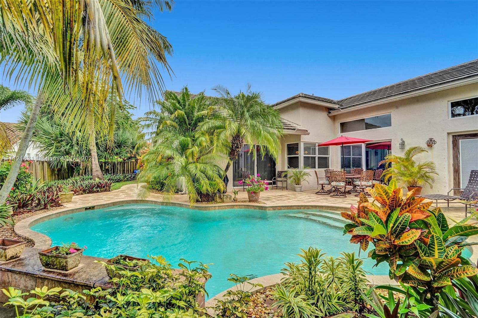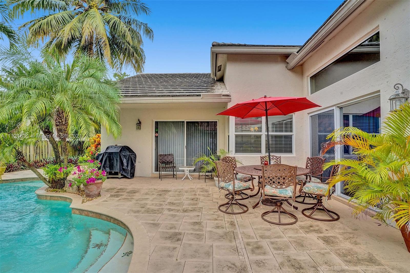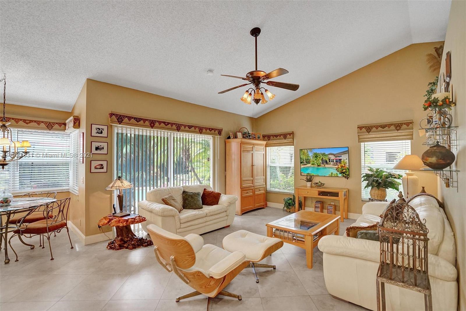 This 4 bedroom 3 bath **POOL** home is located in the exclusive Ridge on Nob Hill development in Davie! This home features a triple split floor plan, tiled floors throughout **IMPACT WINDOWS**, newer A/C; light and bright remodeled kitchen and bathrooms, inside laundry room and vaulted ceilings! original roof! Amazing backyard with beautiful views of the pool with lush landscaping with a fully fenced backyard! Located in the top school district and easy access to the Ridge and Tree Tops Park! Subdivision features community pool, sidewalks and walking trails! Chandelier over kitchen table excluded! Seller may need a 30 day post occupancy!