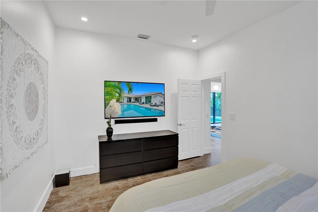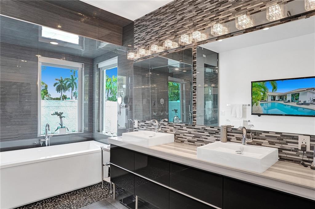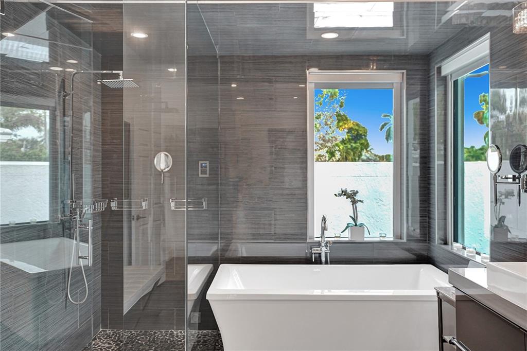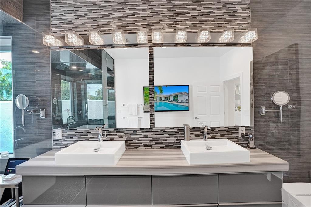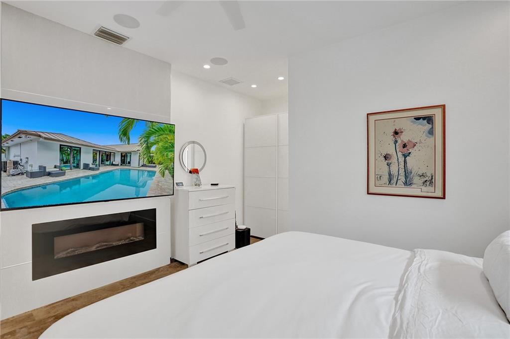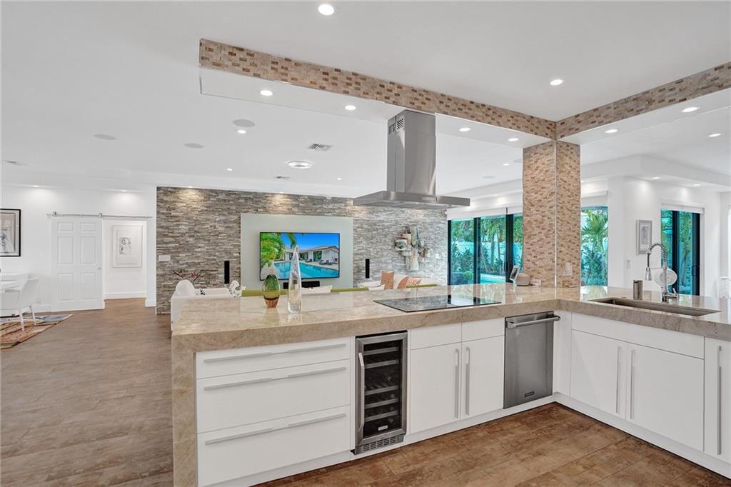 Exquisite, Contemporary, Walled & Gated Smart Home in Desirable Coral Ridge Country Club. Open Floor Plan; Perfect for Entertaining w/ 2 Built in Dolby Atmos Theatre Systems; including 5 TV's & Speakers. Porcelain Wood Grain Plank Floors Grace Living Areas including Bedrooms not Baths. Stunning Kitchen Anchored w/ a Cut Coral Stacked Column, 14 Ft Quartz Counter for Seating, w/ Induction Cook Top, Viking Appliances & Wine Cooler open to Family Room/ Dining Room w/ Wood Burning Fireplace & Walls of Glass on both sides. Split Bedroom Plan w/ Generous Master Bath, Soaker Tub, Separate Seamless Steam Shower & Toto. Main Area Window Shades Remote & Both Masters Has Black Out Shades. Heated Pool surrounded by Travertine Pavers, ( pool recently resurfaced & new Tile). AC in Garage