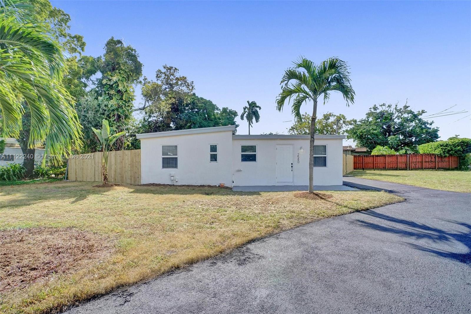 As you drive thru the circular drive way you will be greeted with a 10,000 sq. foot corner lot with beautiful landscaping. Once inside, you will see an open lay out with hand picked finishes. All the windows are hurricane impact rated with window treatments. Flat roof was redone in 2021. The den can be used as a 3rd bedroom or family room. Each room has its own brand new air conditioning/heating unit with temperature control. Quartz countertops with full backsplash, new stainless steal appliances and modern appeal makes this kitchen a dream. Huge private back yard boasts a shed for added storage, fruit tress and a big open field. Minutes to Downtown Ft. Lauderdale, Airport, and Beaches. This Home is Waiting for you.