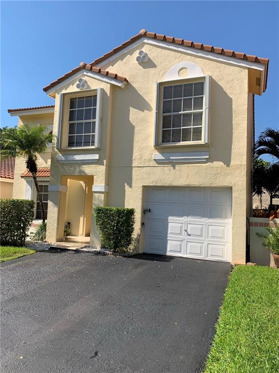 Very neat and well maintained single family home in Weston with one car garage and double driveway. Flexible floor plan allows ground floor to be used as either a great room with a formal dining room, or living room, dining area and family room. Breakfast bar in kitchen. Vaulted ceilings throughout. Master suite features large walk-in closet and his and her sinks in master bath. Second bathroom has a bath tub. Half bath downstairs for use by guests. Large roofed and screened 13x19 patio, perfect for parties, family functions or as a quiet retreat. Good sized privacy fenced backyard with room for swing set, or for dogs to run. Newer A/C system. 2010 roof. Beautiful community swimming pool. Quarterly HOA fee includes mowing of front yard. Top rated schools.