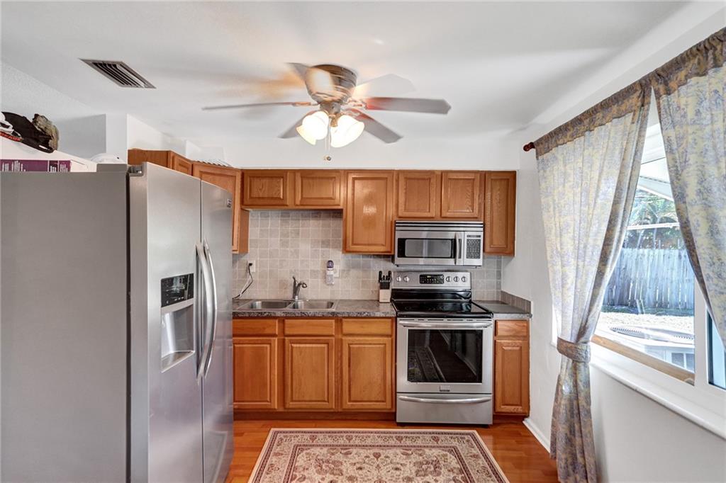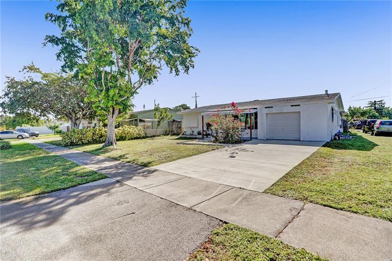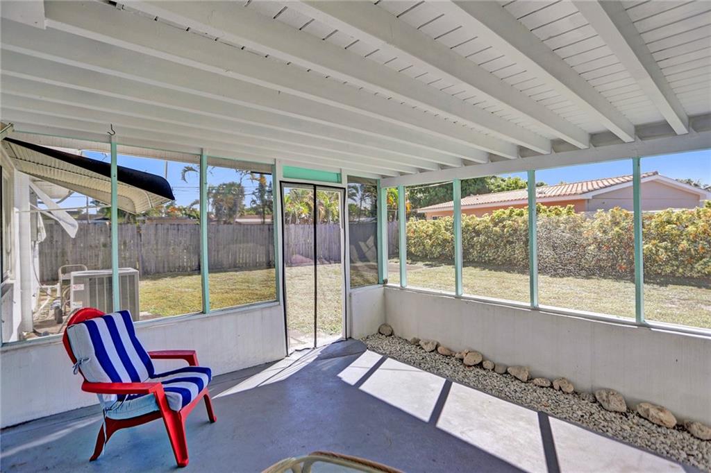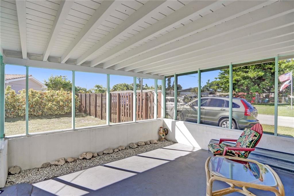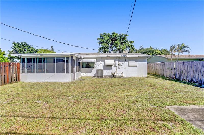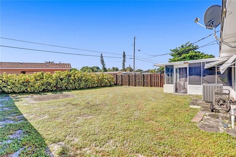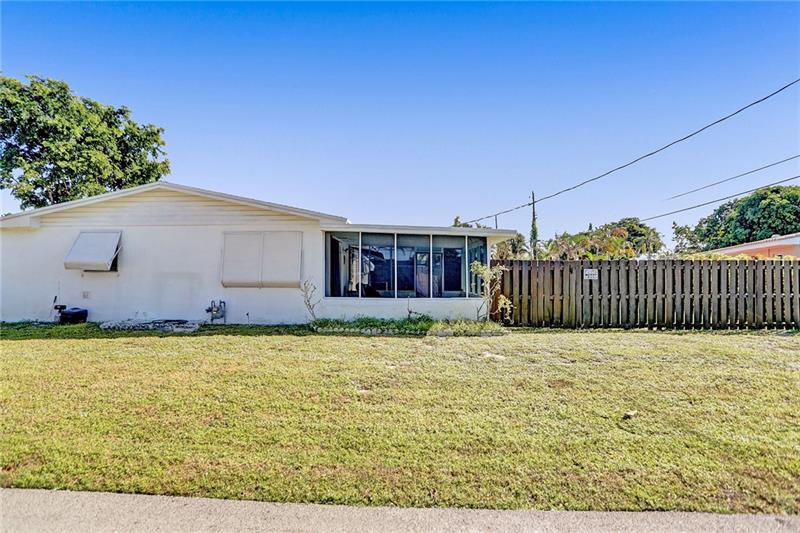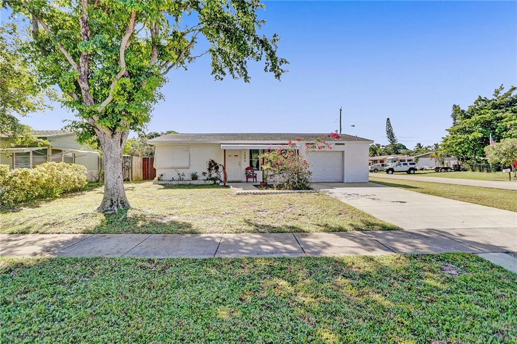 Updated 2/1 in Pompano with one car garage! Some windows and sliding glass door are impact as well as newer garage door. Roof replaced in 2014 as well as the a/c. Updated electric and newer water heater. Kitchen has stainless steel appliances. Very large fenced in corner lot with screened porch. Extended one car garage to accommodate a car and laundry area.