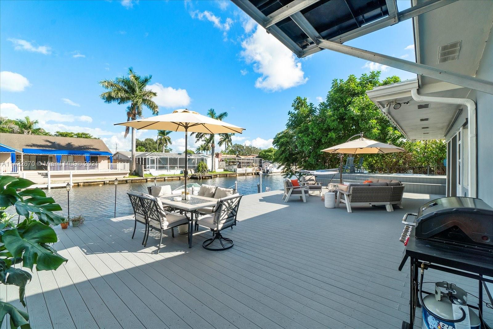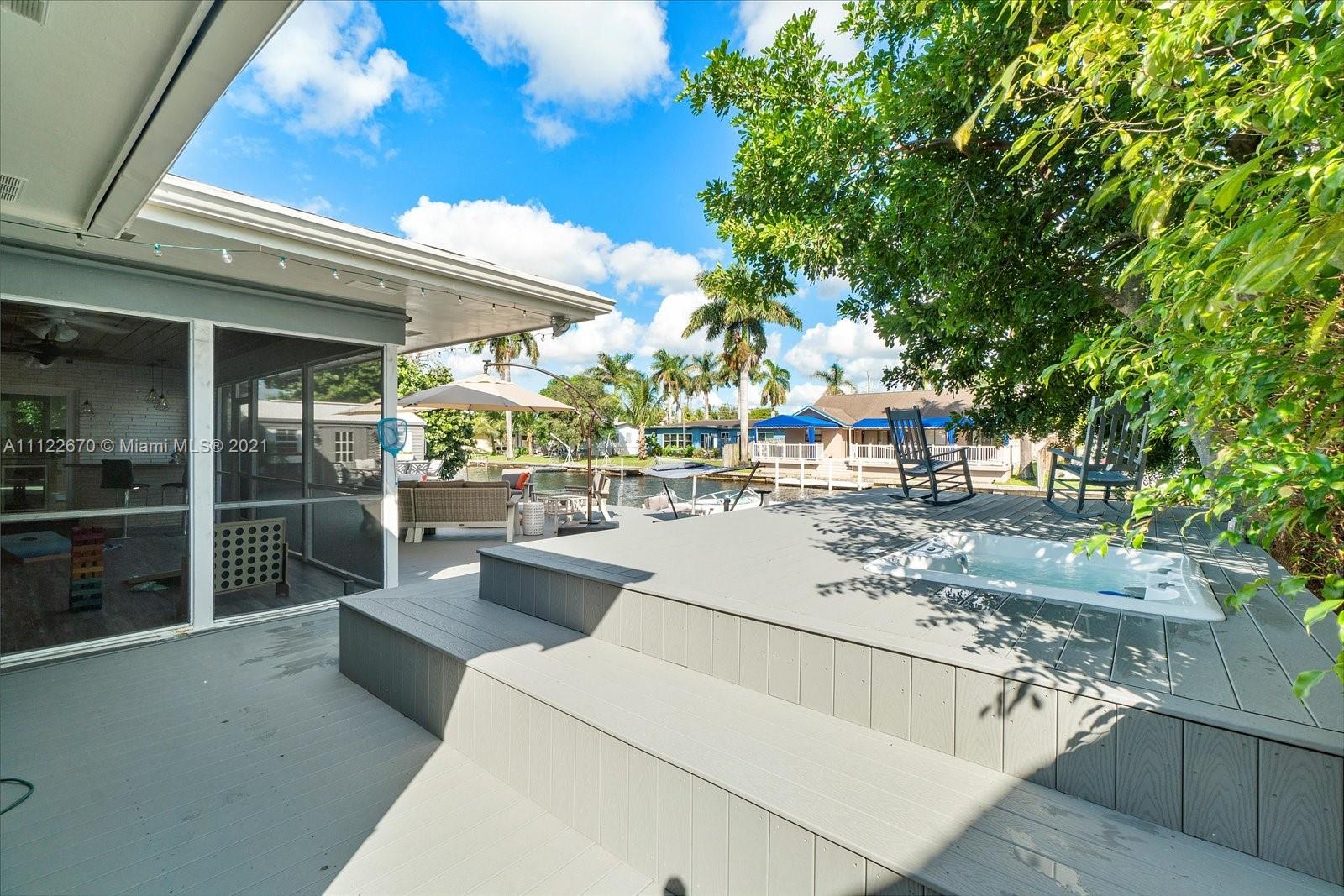 BEAUTIFULLY renovated 4 Bedroom 3 Bathroom on DEEP WATER CANAL WITH OCEAN ACCESS! AND….NO HOA! Enjoy the spacious open floor plan with STUNNING Water Views. Entertainers will LOVE being able to completely open the wall of windows to the screened-in Lanai w/bar. Or, hanging out on the NEW OVERSIZED Deck with Firepit & Hot-tub overlooking the waterway. The New Fully insulated, with double soundproofing, shed provides an AMAZING office or recording space for podcast or recording. Inside the home features a split floorplan, large bedrooms, & a recently renovated kitchen. You’ll love having NEW Impact Windows/Doors/Sliders, a 1-Year-Old Roof, large circular driveway, separate Boat/RV parking WITH 50 Watt RV Plug-in, & a composite Dock. Close to the Beach, Shopping, Schools & Freeways.