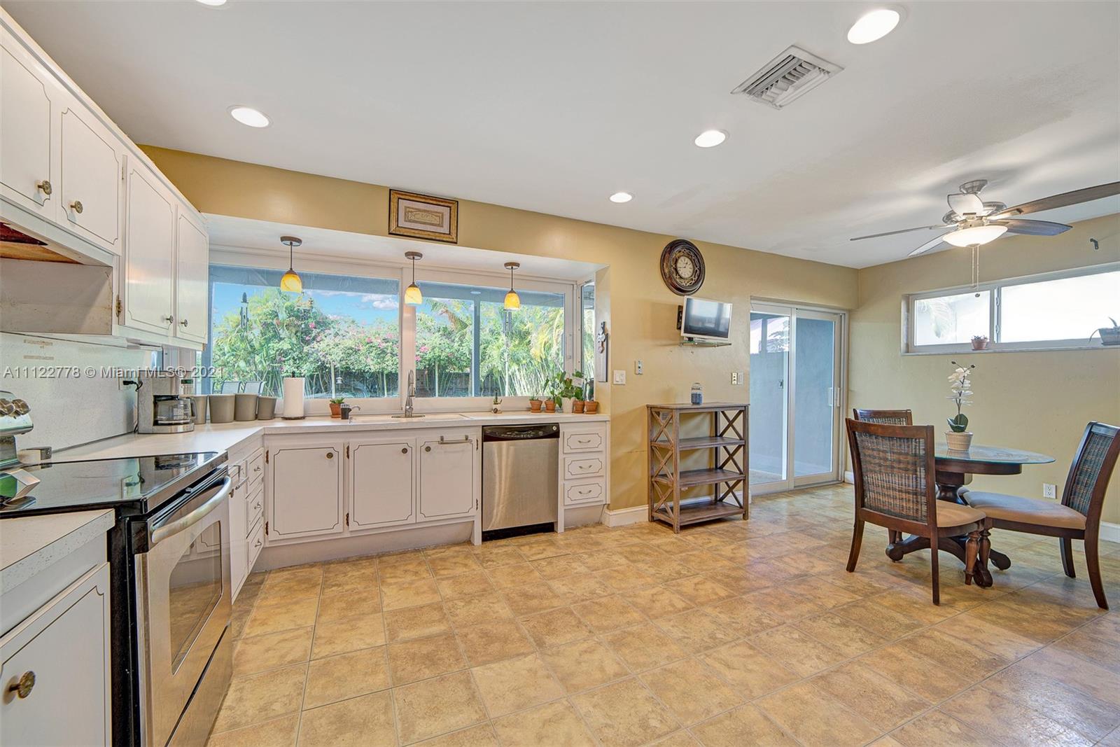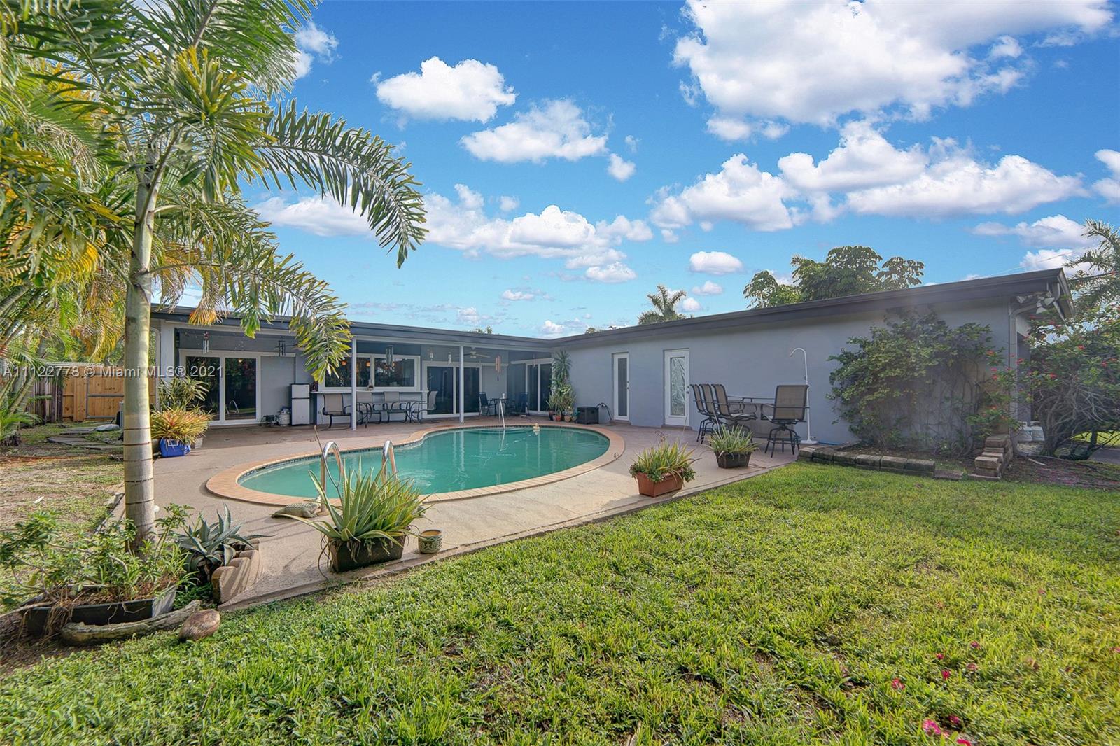 Perfect Tropical Home is waiting for you! Bright sunlit home with natural light in every single room. An open floor plan wisely carves space for a full dining room and an out-cove perfect for a playroom or office. The main suite has ample closet space and full bath with combined tub & shower. The two bedrooms let in tons of light and are smartly laid to optimize space. Most notable is the expansive kitchen area with a sunny breakfast nook. Great for early breakfasts or holiday baking this kitchen area is the heart of the home and leads to your private fenced in pool and garden. The pool area has a concrete patio surrounded by a large yard space for kids, family, pets and entertaining. Make your South Florida dream home a reality today! Contact listing agent for video tour!