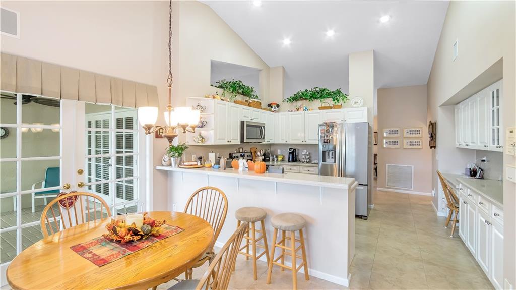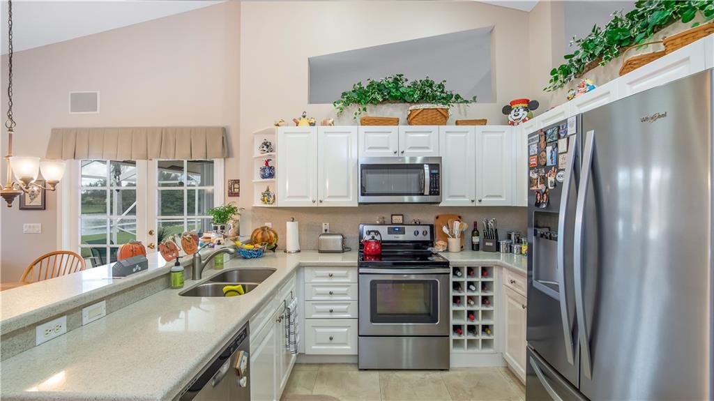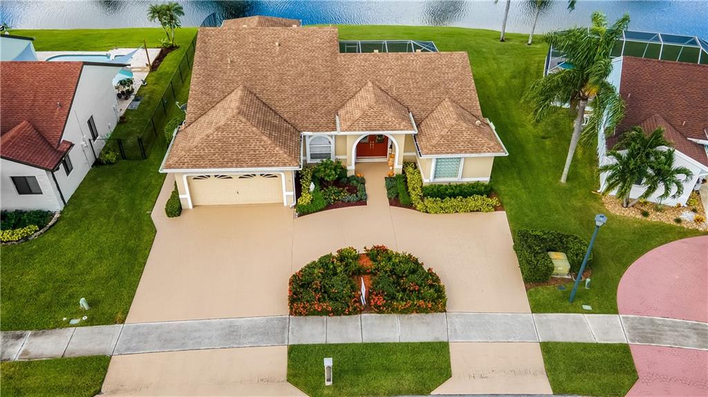 Stunning lake views greet you from every window as you enter this beautifully updated 4 bedroom 2.5 bath in much sought Nob Hill Palms neighborhood! Modern kitchen with white shaker cabinets and expansive quartz countertops!