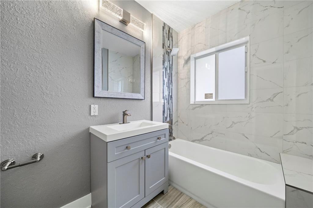 Nestled in the beautiful and charming historic Poinsettia Heights, this newly remodeled gem features an airy and bright entertainer’s kitchen with recessed LED lighting, oversize subway tile backsplash, quartz countertop, spacious cabinets and floor to ceiling pantry, stainless steel appliances. Gorgeous new tile floor throughout the home. 2017 Roof. NO HOA.New hurricane impact windows and doors, new electrical, electric hot water heater, newer A/C. The primary bedroom features a fabulous walk-in shower with designer accents. Create your own outdoor oasis in the huge backyard. Plenty of room for storage in the carport and shed. Located close to shopping (Whole Foods, Best Buy), entertainment and A rated school districts. Highly sought after east Fort Lauderdale neighborhood.