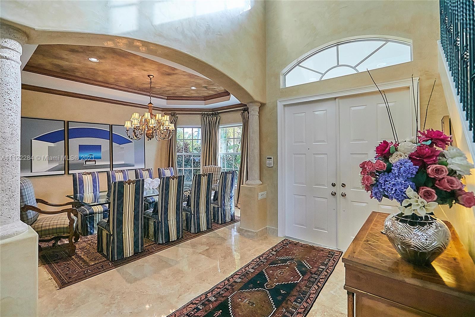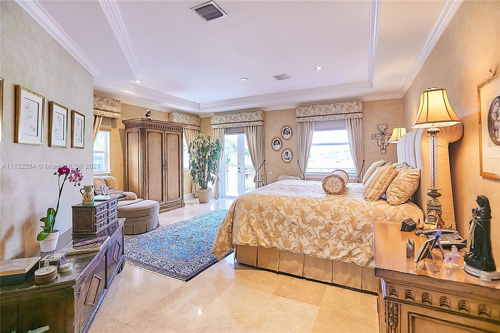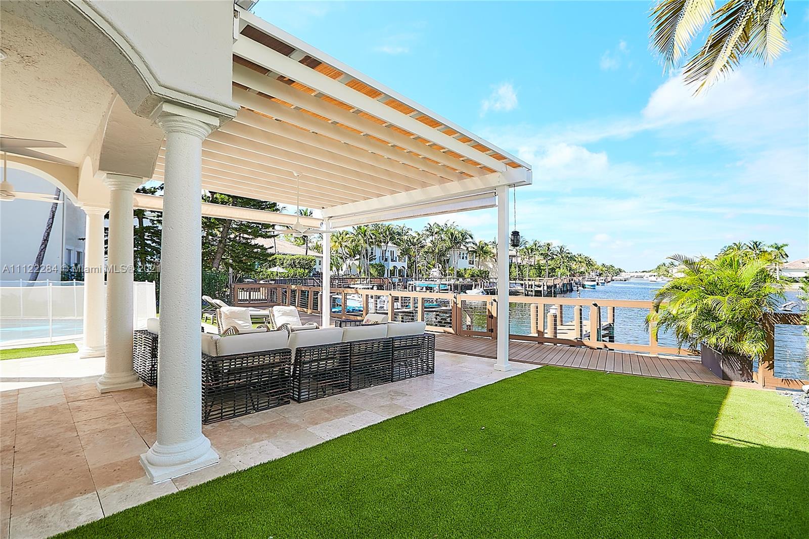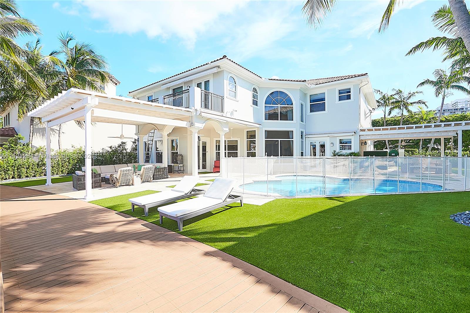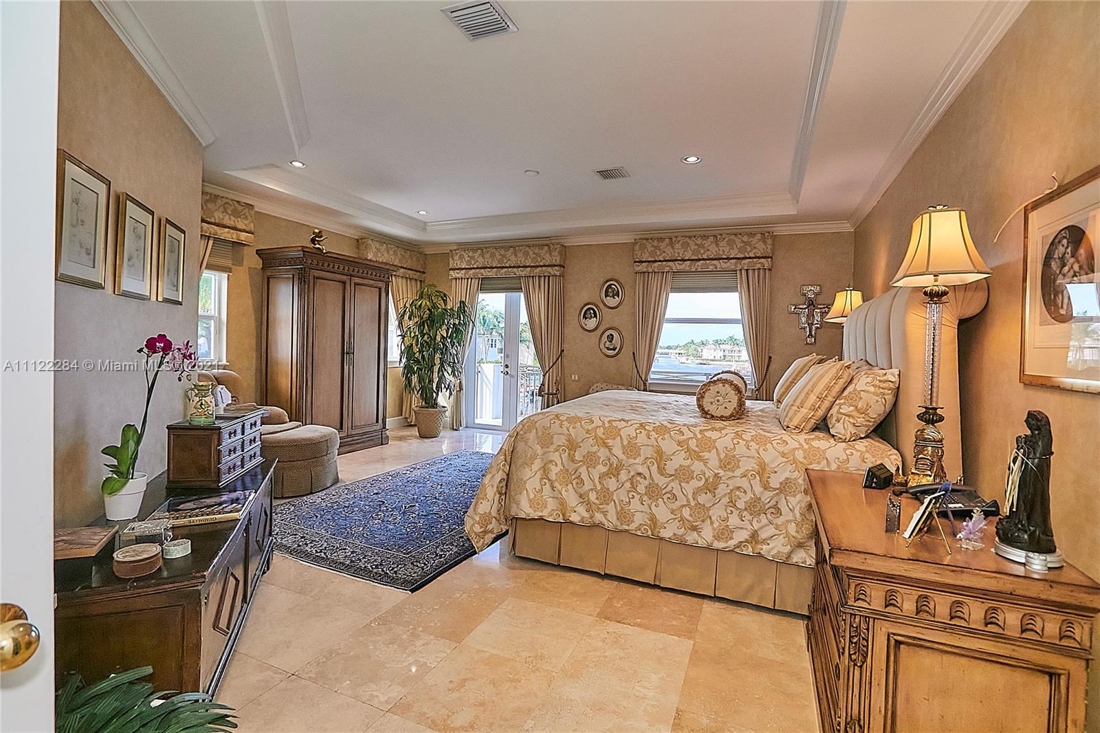 UNIQUE AND EXQUISTE WATERFRONT PROPERTY, HARBOR ISLAND. COMMODORE ESTATE. HOLLYWOOD. FL. 70 feet over the bay plus a dock where 2 boats up to 50 ft could be moored. No bridges to the Atlantic Ocean, Corner lot. 5 Bedrooms with en suite bathrooms plus 2 studios. Large windows, waterfront views, double high ceilings in the reception area, sub zero fridge and separate freezer, top of the line appliances, kitchen island and wine cooler, granite countertops, adjacent butler corner and large pantry, formal dining and family area with informal dining over water views all around. Magnificent outdoor area and fixtures, climatized saltwater pool, summer kitchen and 2 pergolas for “al fresco” enjoyment. 3 A/C zones, 3-car garage. Saturnia floors and much more. Furniture not included.