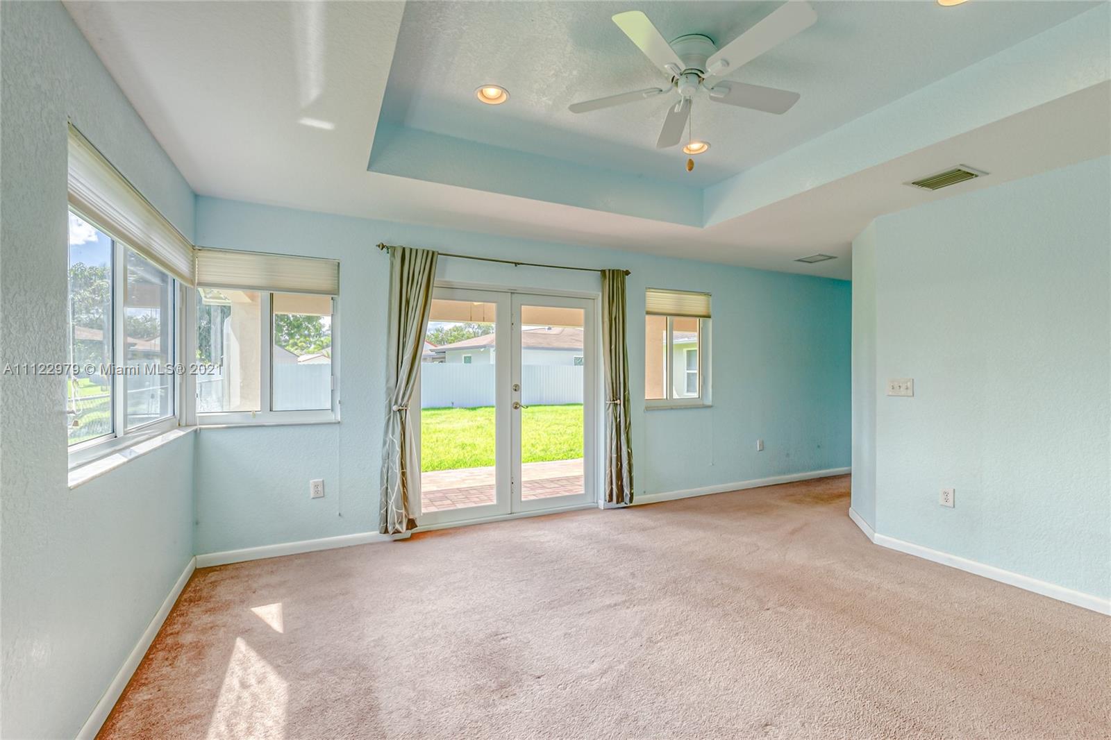 Magnificent 5 bedroom and 3 bath waterfront home in Orange Tree. This gem is move in ready offering a spacious split floor plan with 2 master bedrooms. The kitchen has been upgraded with top of the line hardwood custom cabinets, massive granite counter tops, and new stainless steel appliances. The kitchen opens up to family room which is great for entertaining. There is also a formal dining room and living room when you enter the house. It has 2 NEW A/C units, Hurricane Impact Windows and French Doors, 2 Car Garage, and the roof is 12 yrs old. Enjoy the spacious covered patio with plenty of lights and ceiling fans. The backyard has room for a pool and large gates to the backyard to park your boat (no hoa). This home has it all, friendly neighbors and it's in a A+ School District.