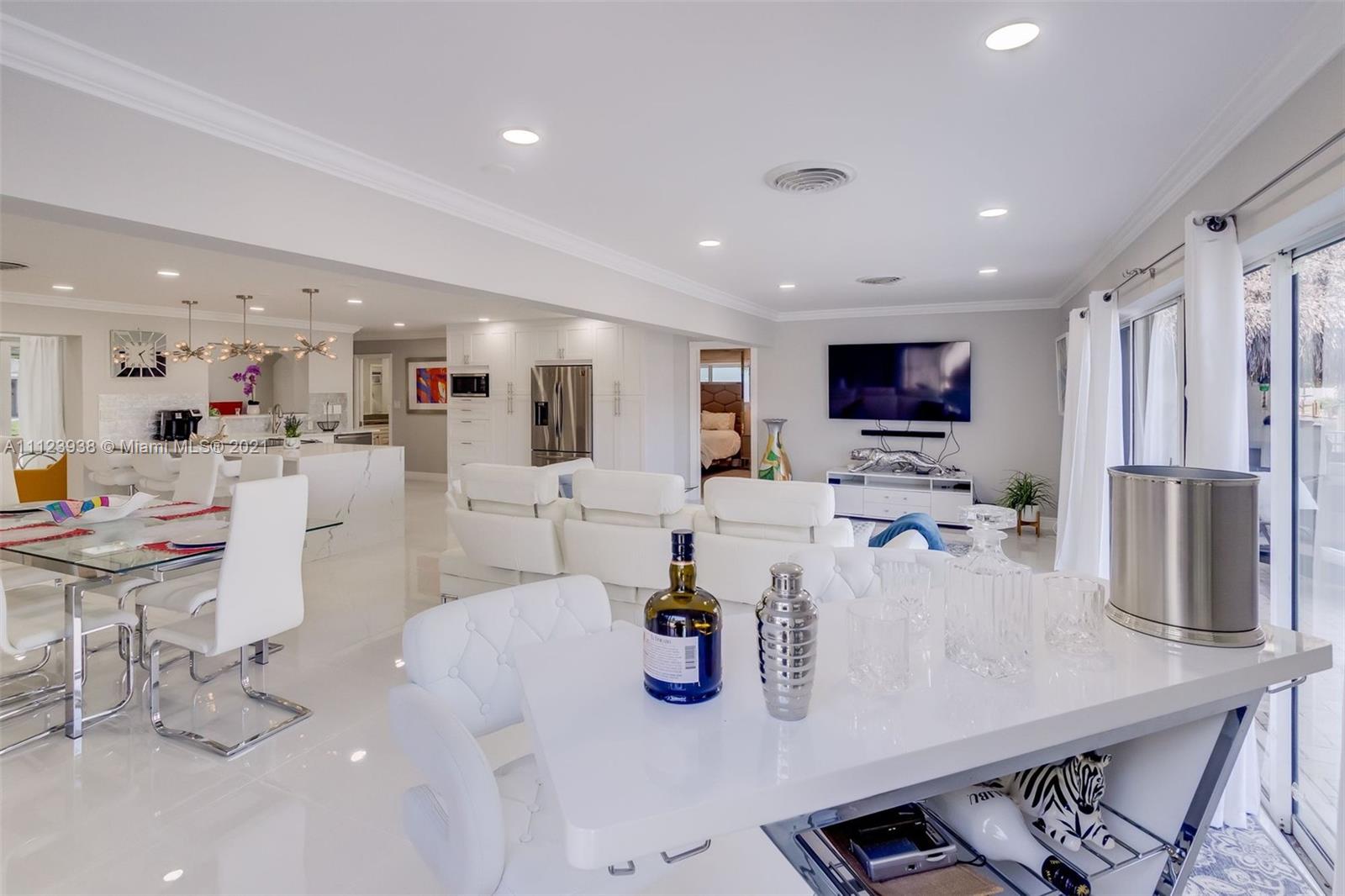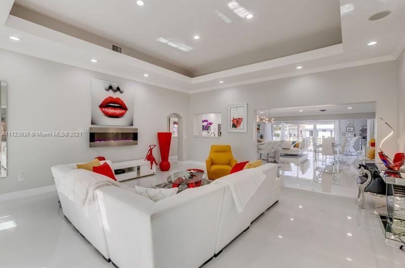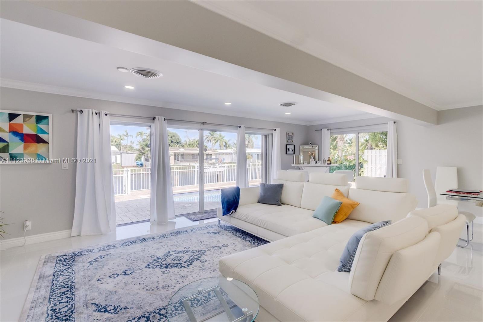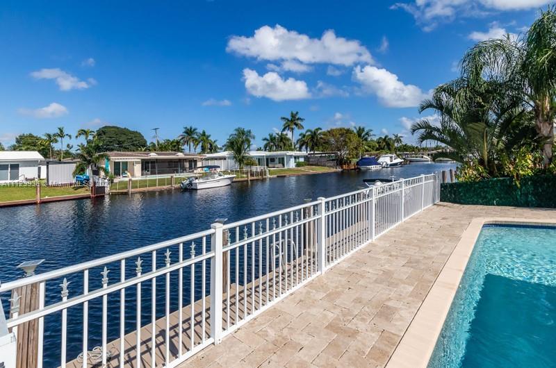 Completely renovated Amazing designer home !!! Seller spared no expense 4 bedroom 2 full bath 2 car garage extreme high end finishes wood cabinetry quartz countertops stainless steel appliances wine fridge huge custom closet custom zebra blinds open concept gleaming white tile flooring thru-out BOATERS DREAM!! Waterfront with ocean access. This property features a 70-foot boat dock, including a boat lift. saltwater pool with tiki hut travertine pool deck one level with huge living area.