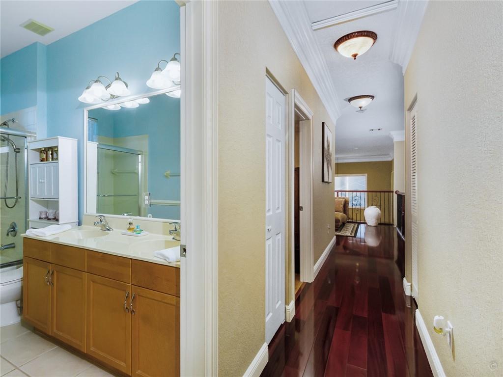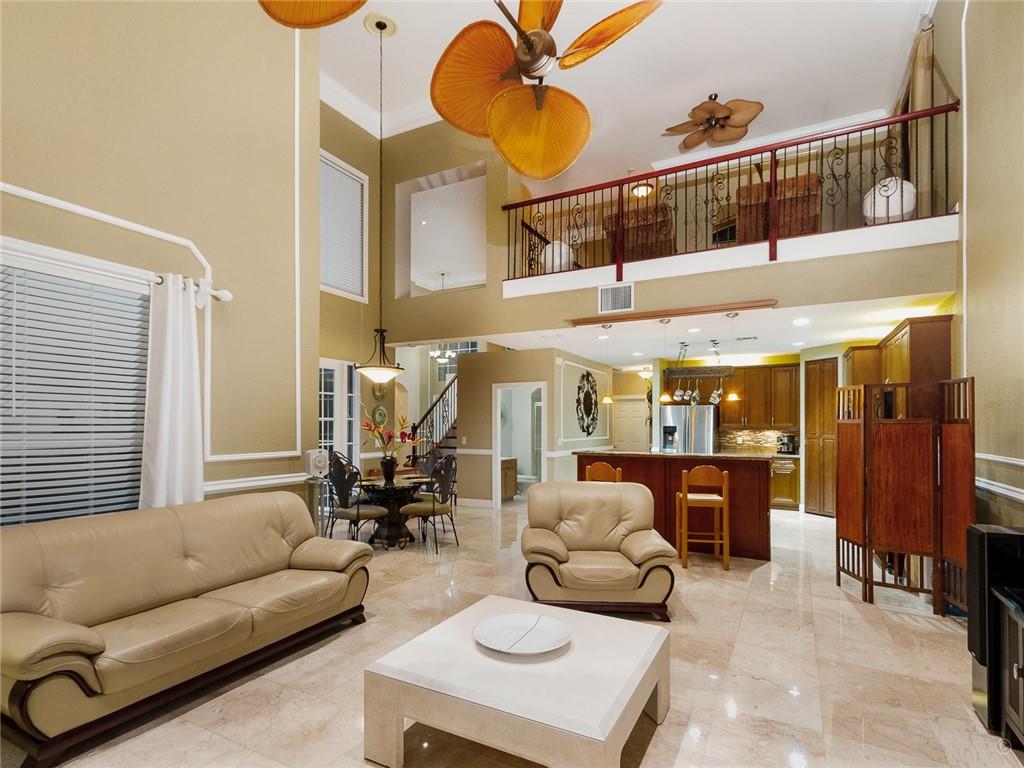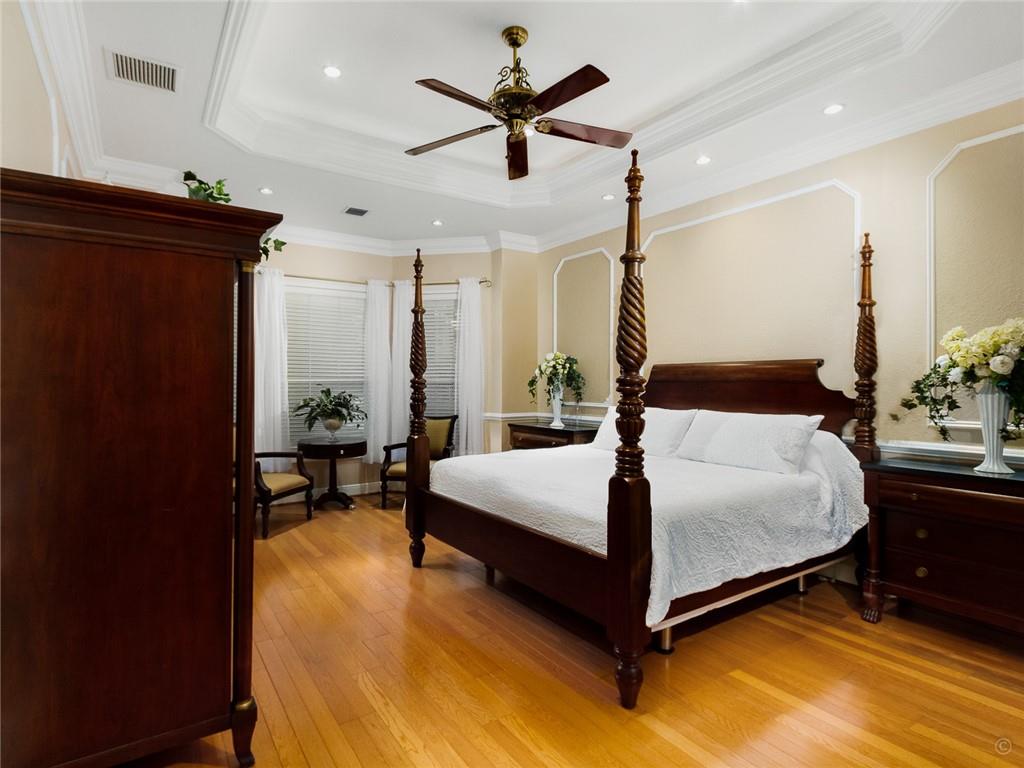 WATCH THE TOUR. Gorgeous Elizabeth model located on a cul-de-sac w/3 Master Bedrooms. The main Master is on the 1st flr, along with a mini-master suite with a private bath. A 3rd Master is on the 2nd flr. The loft can also be converted to a 6th bedroom. The home features accordion shutters, 2 brand new AC units are now being installed, a beautiful wrought iron staircase, French doors, crown molding, chair rails, a gourmet kitchen w/center island, wood cabinetry, SS appliances & granite. 1st-flr living areas feature beautiful Marble flrs, with gorgeous wood flooring in every bedroom, including the upstairs loft & hallway. The BIG yard has plenty of room for a pool. This guard gated community offers a spectacular 5-Star clubhouse, pool, fitness center, tennis, activities for kids and more