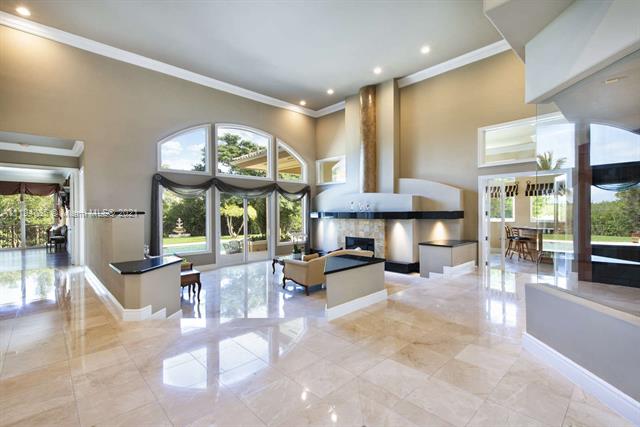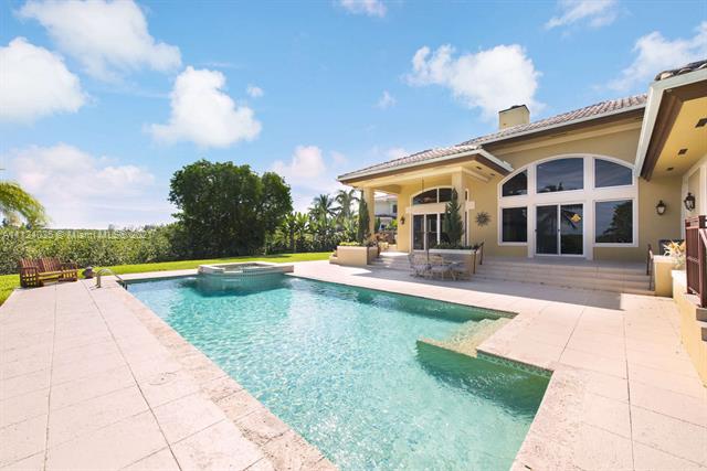 Privacy, security, and ocean access in this one-of-a-kind Coral Gables estate situated at the end of the road on one of the largest lots in the prestigious guard-gated Hammock Oaks. An entertainer's dream! This bright single-story home with attached three car garage has an open floor plan with 20ft ceilings, custom millwork, and marble and Brazilian Teak flooring throughout. It is a 5/5 plus office, zoned for Pinecrest schools, and features wet bar, 300 bottle wine cooler, and dedicated laundry room. Step outside any of the home's custom hurricane resistant doors to enjoy the summer kitchen, oversized saline pool with jacuzzi, and 65ft deeded seawall and dock with weatherproof composite decking, water, and electricity. Truly a boater's paradise with access to Biscayne Bay in minutes!