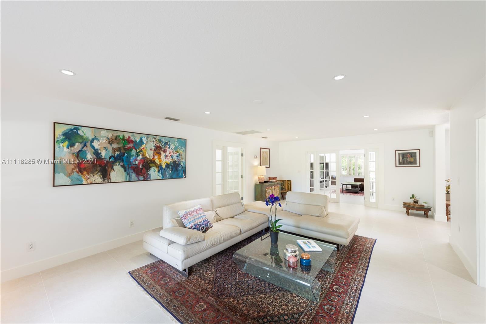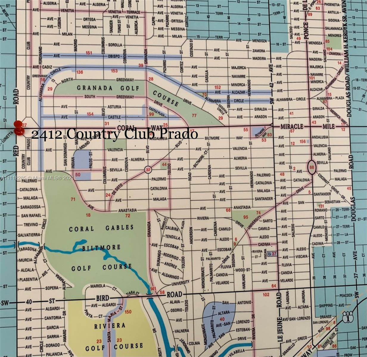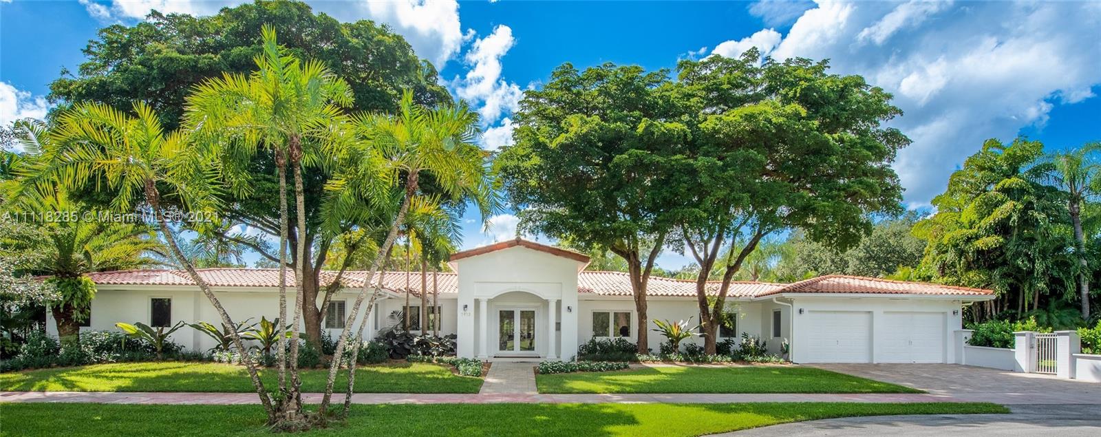 Stunning new listing on historic Country Club Prado. Enlarged in 1995 by Ramon Pacheco this five-bedroom, four-bath home has over 3800 adj. sq. ft. and sits at the end of a cul de sac (near the corner of Red Road and Coral Way) on a large lot with generous parking space for major entertaining. Double front doors to foyer. Living beyond with all family bedrooms off the hall to the left. French doors from Fam. Rm open to the spacious pool/patio. Formal DR. New kitchen with breakfast area. Laundry room. Oversized two-car garage. There is also a maid's room and a full bath. Large office/game room off LR. Huge master suite with separate desk area, walk-in closet, gorgeous new bath. Home would be good as a consulate because of its floor plan/abundant parking... Light, bright, and move-in ready.