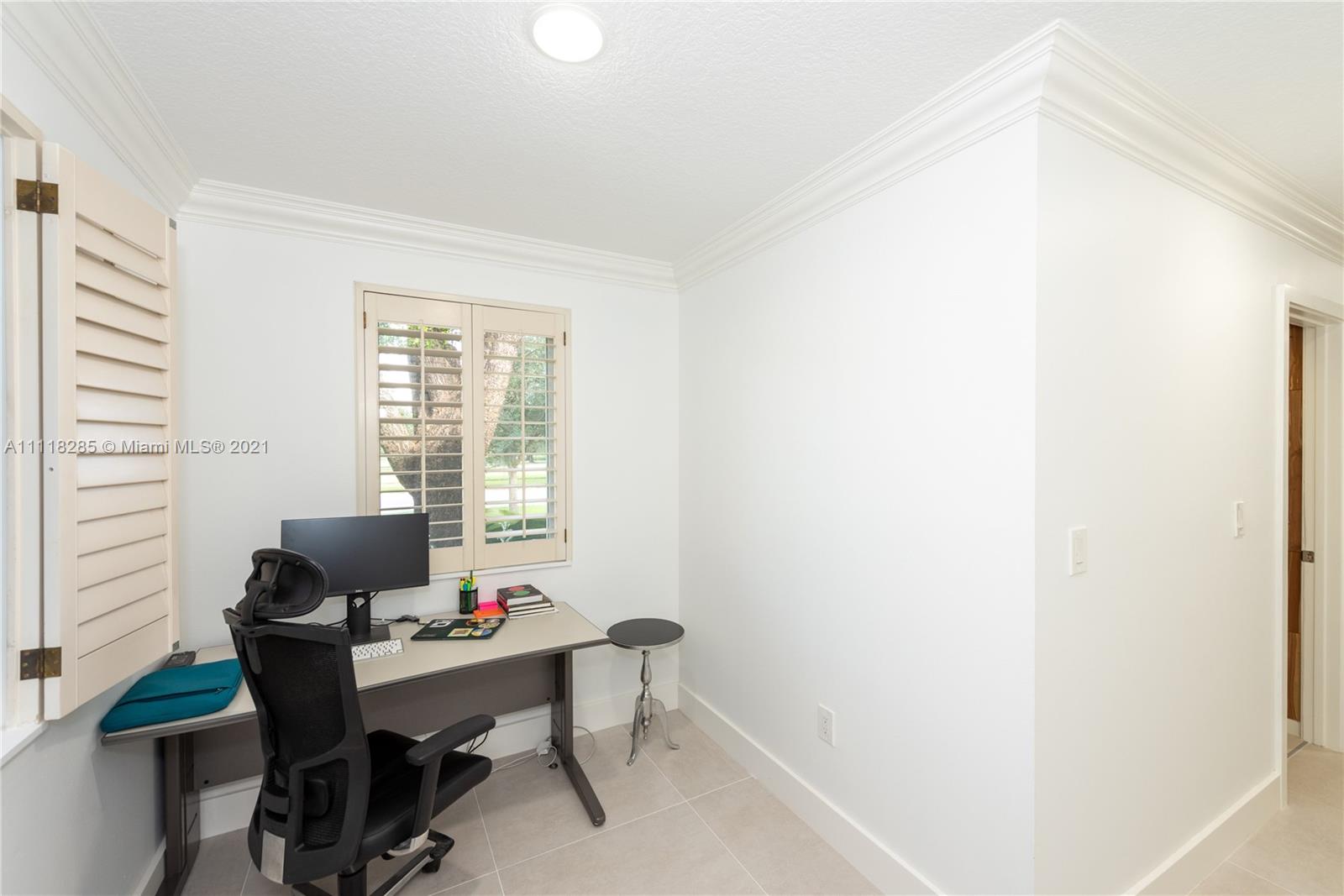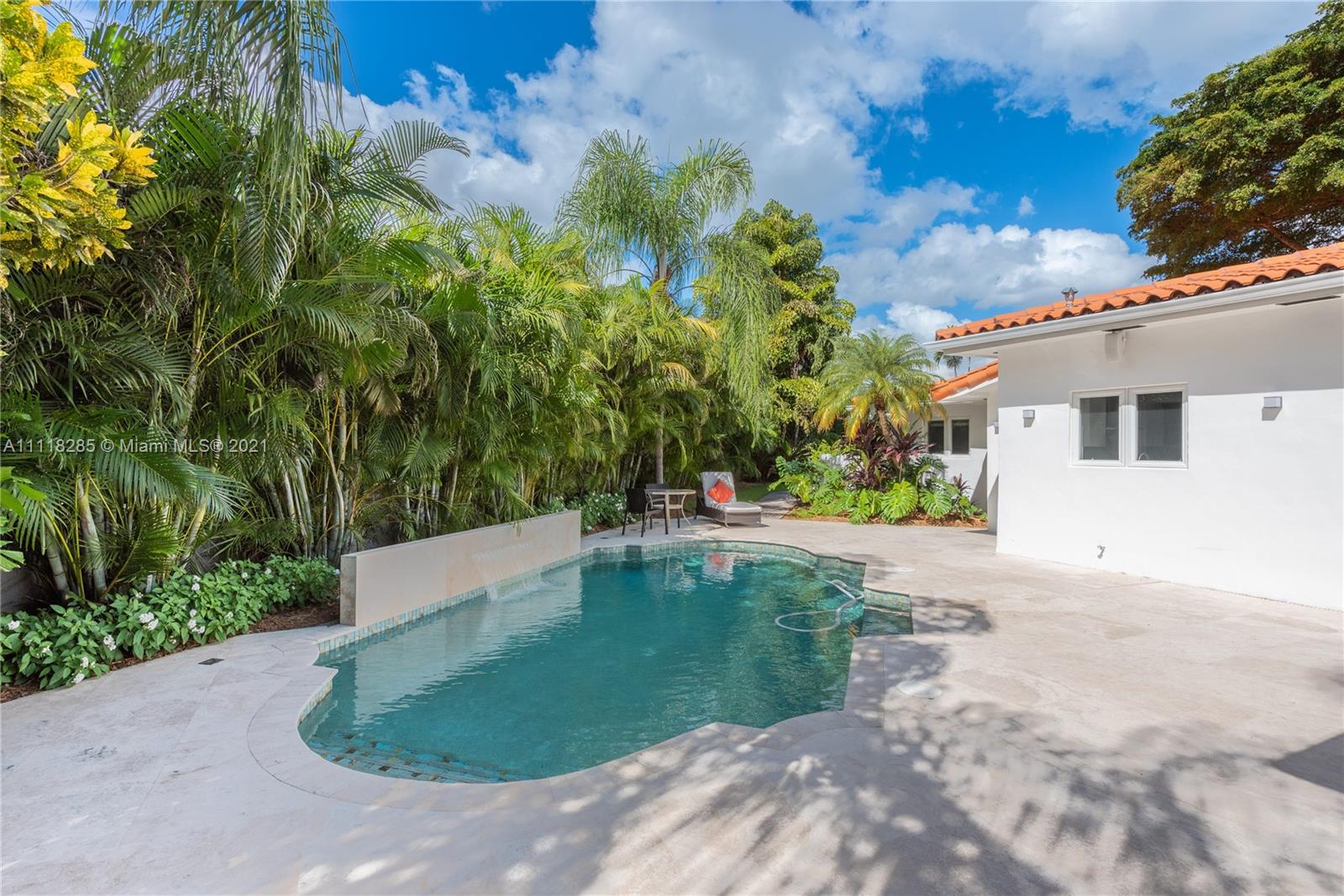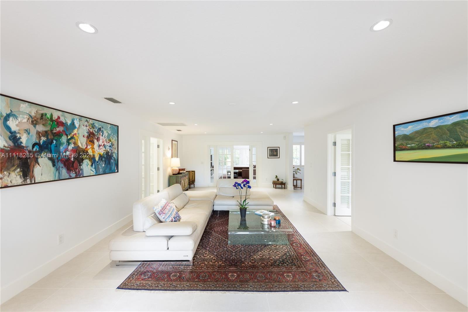 Stunning new listing on historic Country Club Prado. Enlarged in 1995 by Ramon Pacheco this five-bedroom, four-bath home has over 3800 adj. sq. ft. and sits at the end of a cul de sac (near the corner of Red Road and Coral Way) on a large lot with generous parking space for major entertaining. Double front doors to foyer. Living beyond with all family bedrooms off the hall to the left. French doors from Fam. Rm open to the spacious pool/patio. Formal DR. New kitchen with breakfast area. Laundry room. Oversized two-car garage. There is also a maid's room and a full bath. Large office/game room off LR. Huge master suite with separate desk area, walk-in closet, gorgeous new bath. Home would be good as a consulate because of its floor plan/abundant parking... Light, bright, and move-in ready.