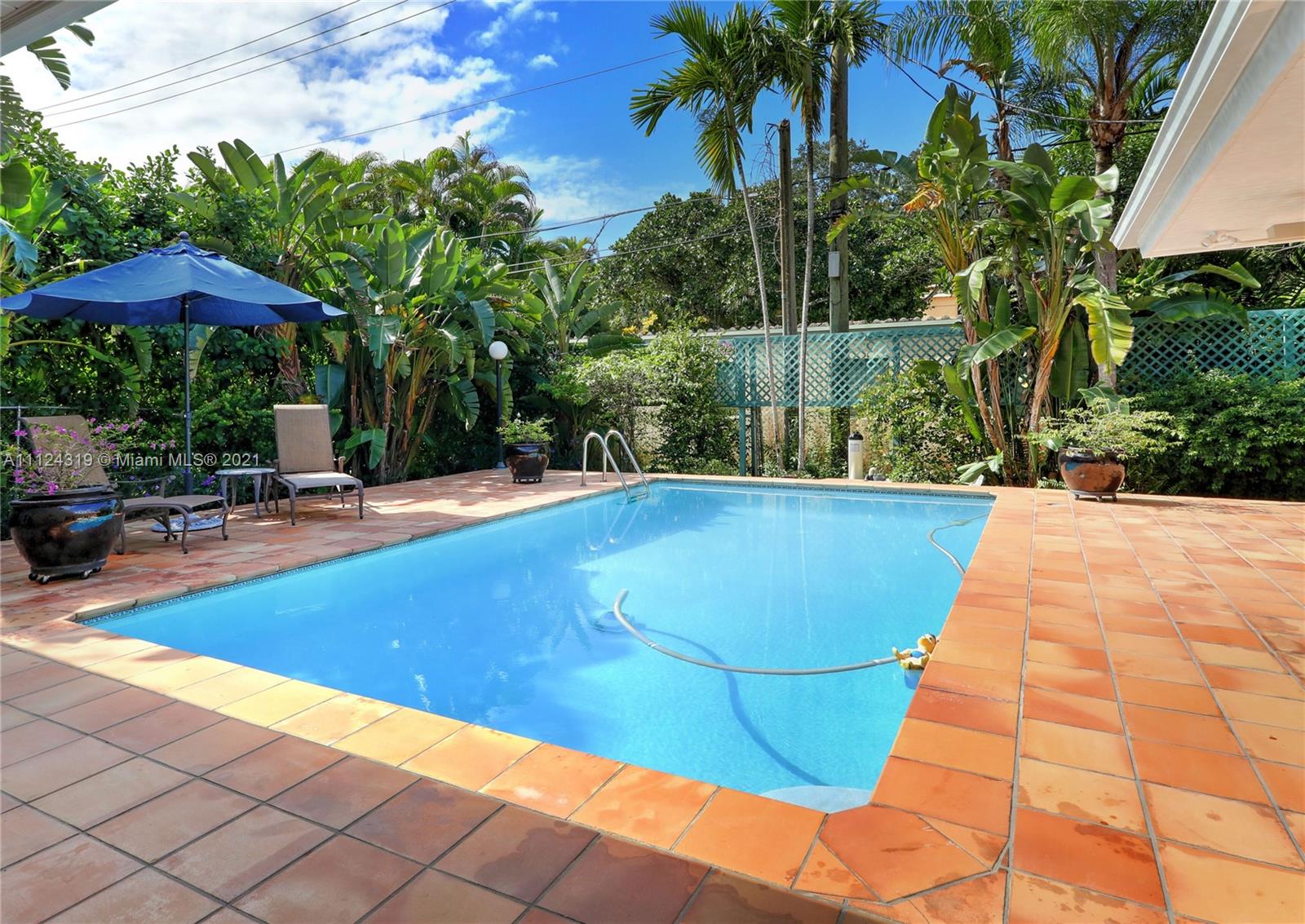 New Listing! Very well priced for quick sale as the owner is moving to Denver. Ideally located on a quiet tree-lined avenue in North Gables between 8th St and the Coral Gables Water-tower, this 4 bedroom/ 3 bath home has a pool and oversized 2-car garage. Functional/multi-use floor plan where the formal dining room, family room, and formal living room can be interchanged. Enter foyer with views through rear Fr doors to the spacious pool/patio deck. The hallway on the north side of the Family room has four bedrooms with the master suite at the rear. The master has double doors leading out to the pool, a very large bath, and two closets. New a/c, impact windows, French doors. Beautifully landscaped. Immaculate, move-in ready. Firm price or higher expected. Inspection report available.