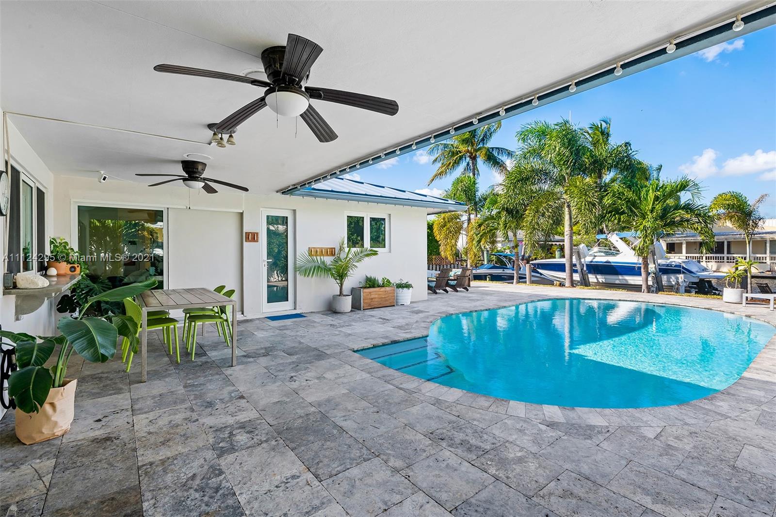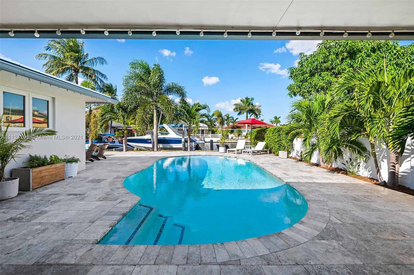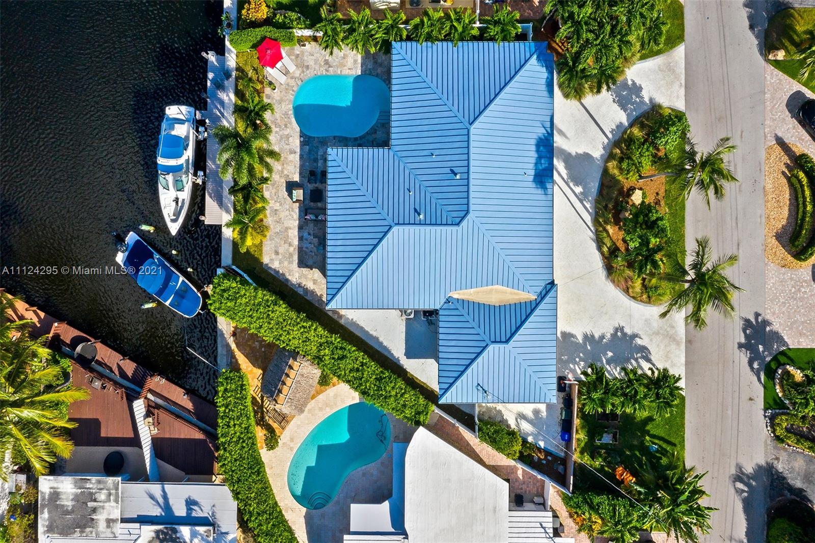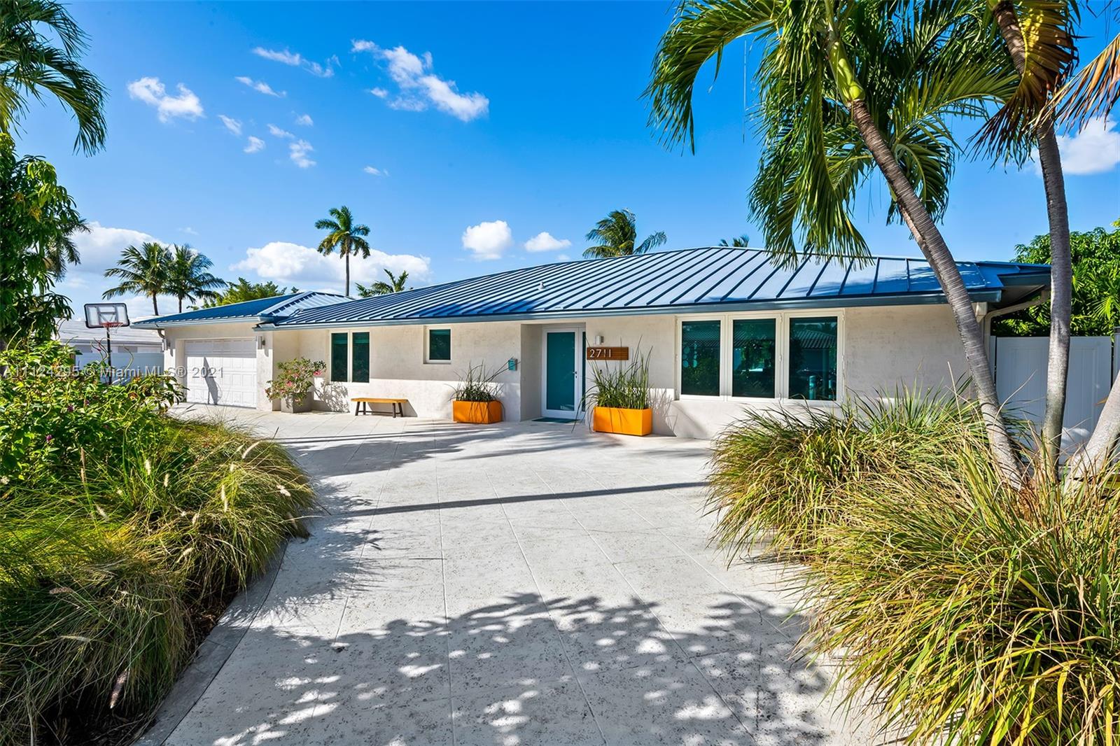 Stunning updated home with 55 feet of tranquil waterfront in East Fort Lauderdale’s sought after Lake Estates neighborhood. Step inside to an open and spacious kitchen which flows between the living and dining room. Recently updated kitchen with new SS appliances, including a double convection oven, reverse osmosis system, wine refrigerator, quartz countertop and windows overlooking the salt water pool and canal. Bright and light from every room, tile flooring, and hurricane impact windows accentuate the beauty of this home. This 4 bed 2 bath home features: 14,000 lb boat lift, dock, pilings, and seawall done in 2016, metal roof, new AC 2021, 2 car garage w/ charge point level 2 charger, pool deck pavers completed in 2018, & a circular driveway. This is a home you don’t want to miss!