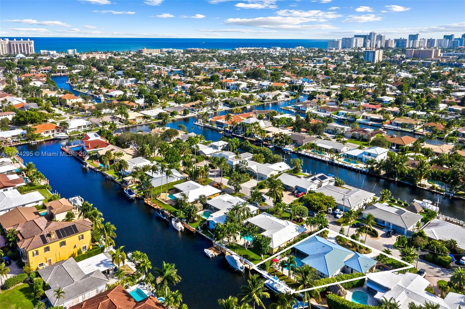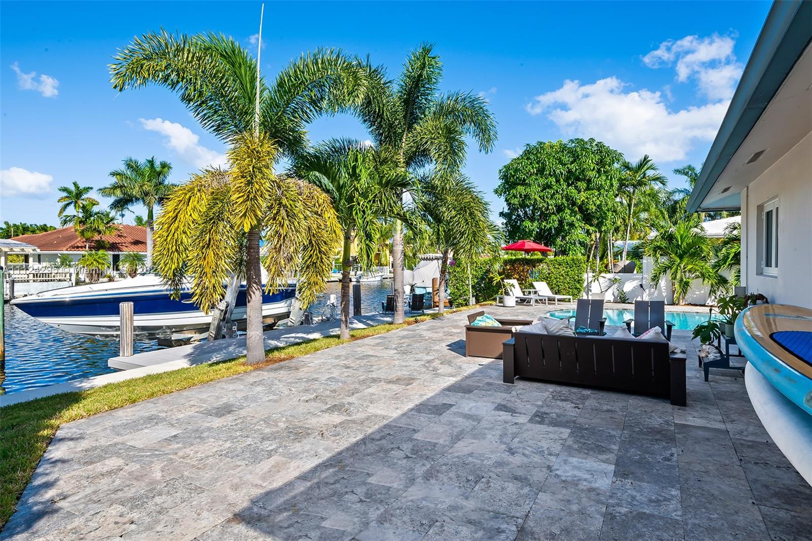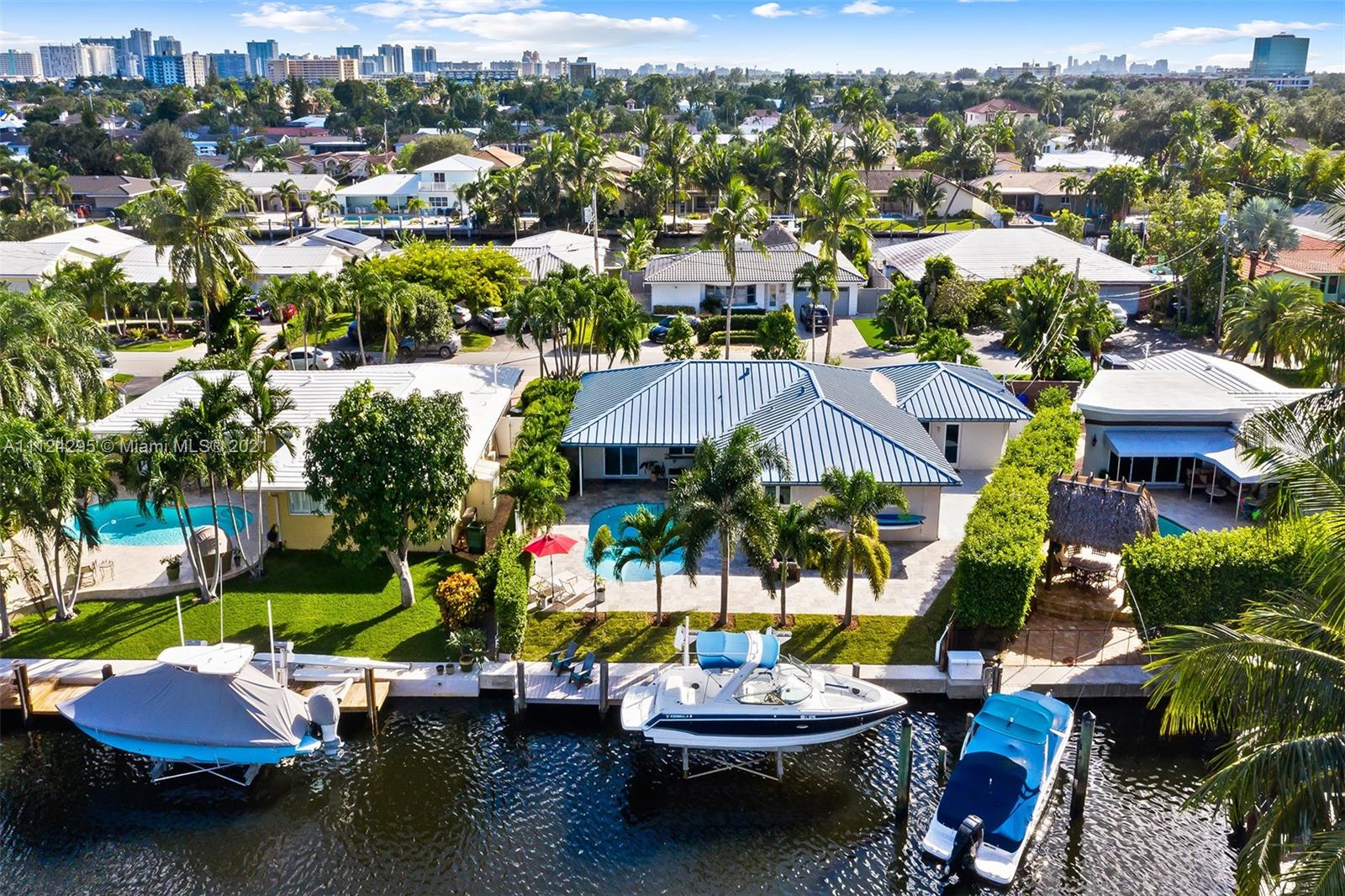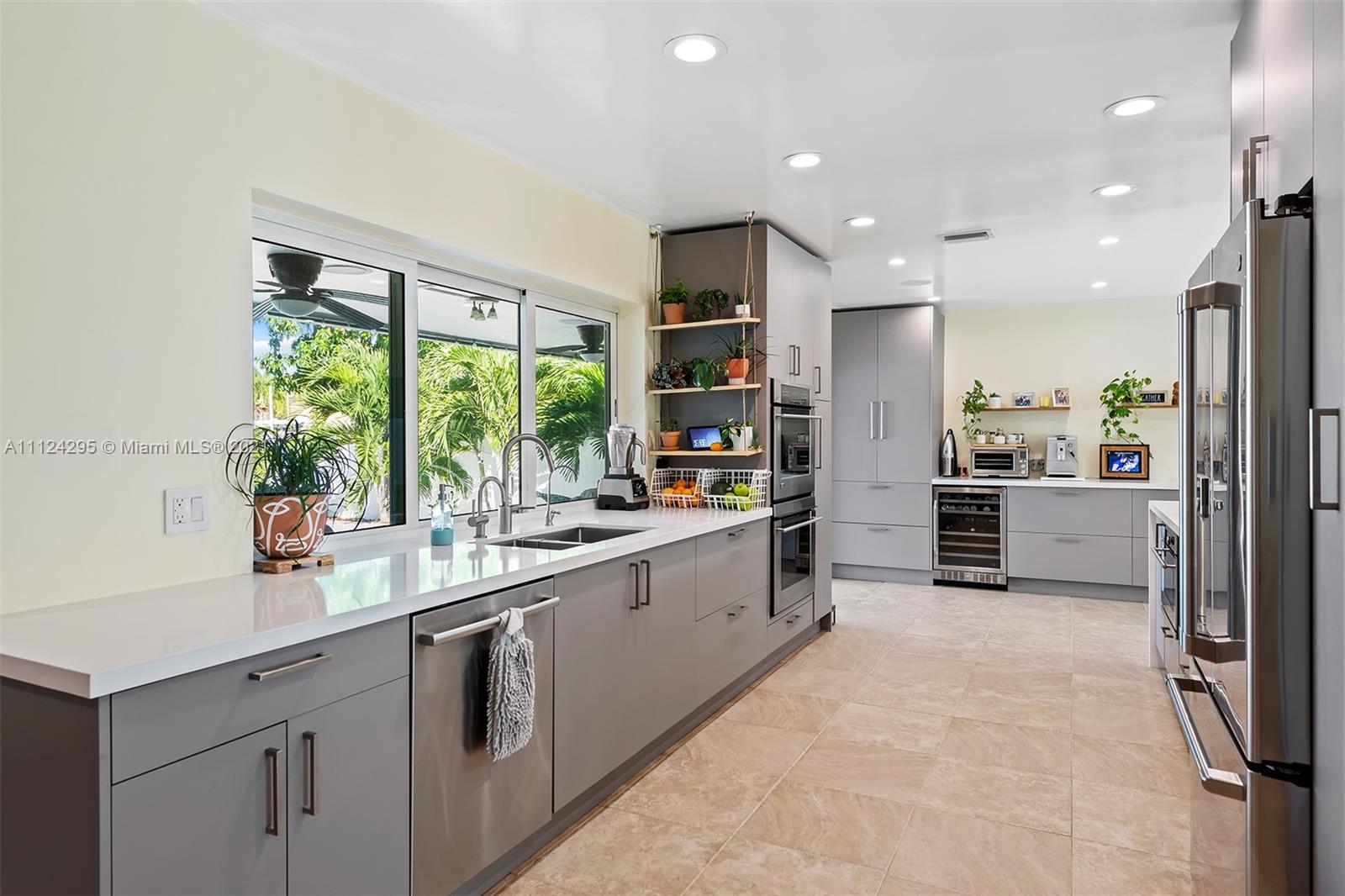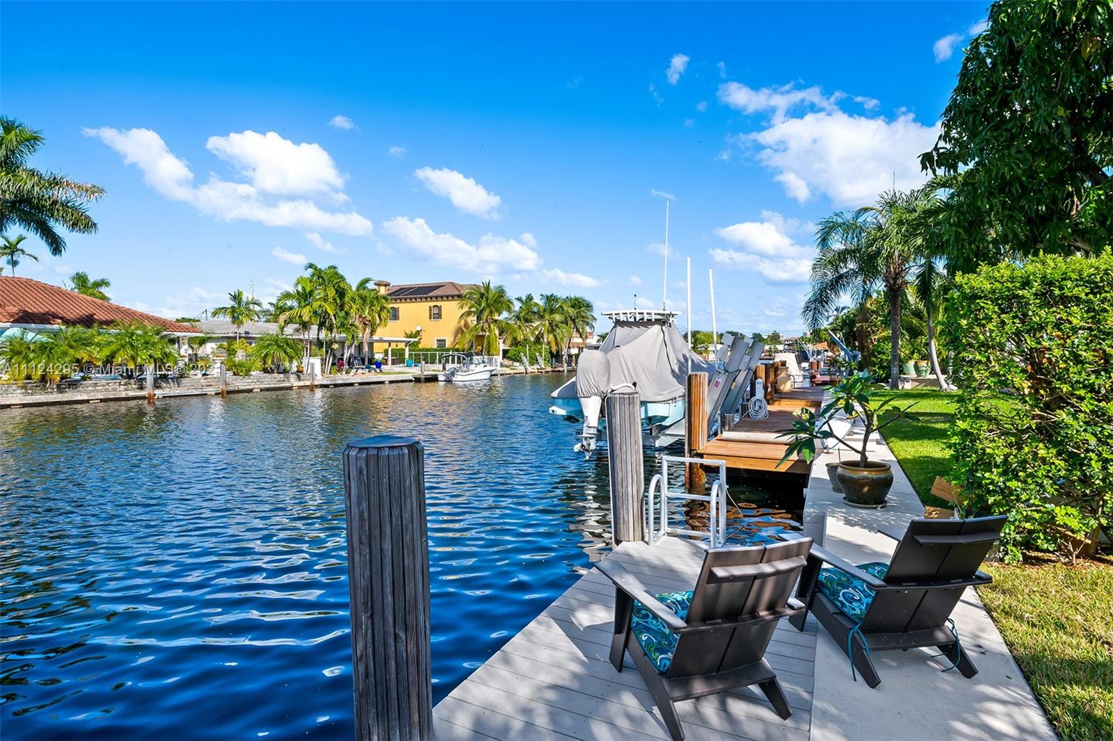Stunning updated home with 55 feet of tranquil waterfront in East Fort Lauderdale’s sought after Lake Estates neighborhood. Step inside to an open and spacious kitchen which flows between the living and dining room. Recently updated kitchen with new SS appliances, including a double convection oven, reverse osmosis system, wine refrigerator, quartz countertop and windows overlooking the salt water pool and canal. Bright and light from every room, tile flooring, and hurricane impact windows accentuate the beauty of this home. This 4 bed 2 bath home features: 14,000 lb boat lift, dock, pilings, and seawall done in 2016, metal roof, new AC 2021, 2 car garage w/ charge point level 2 charger, pool deck pavers completed in 2018, & a circular driveway. This is a home you don’t want to miss!