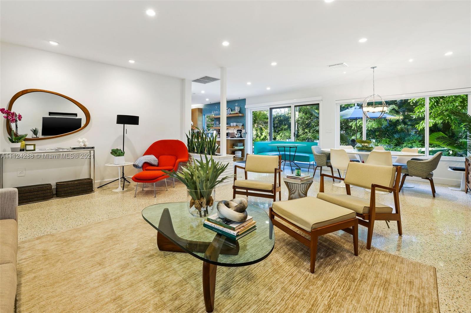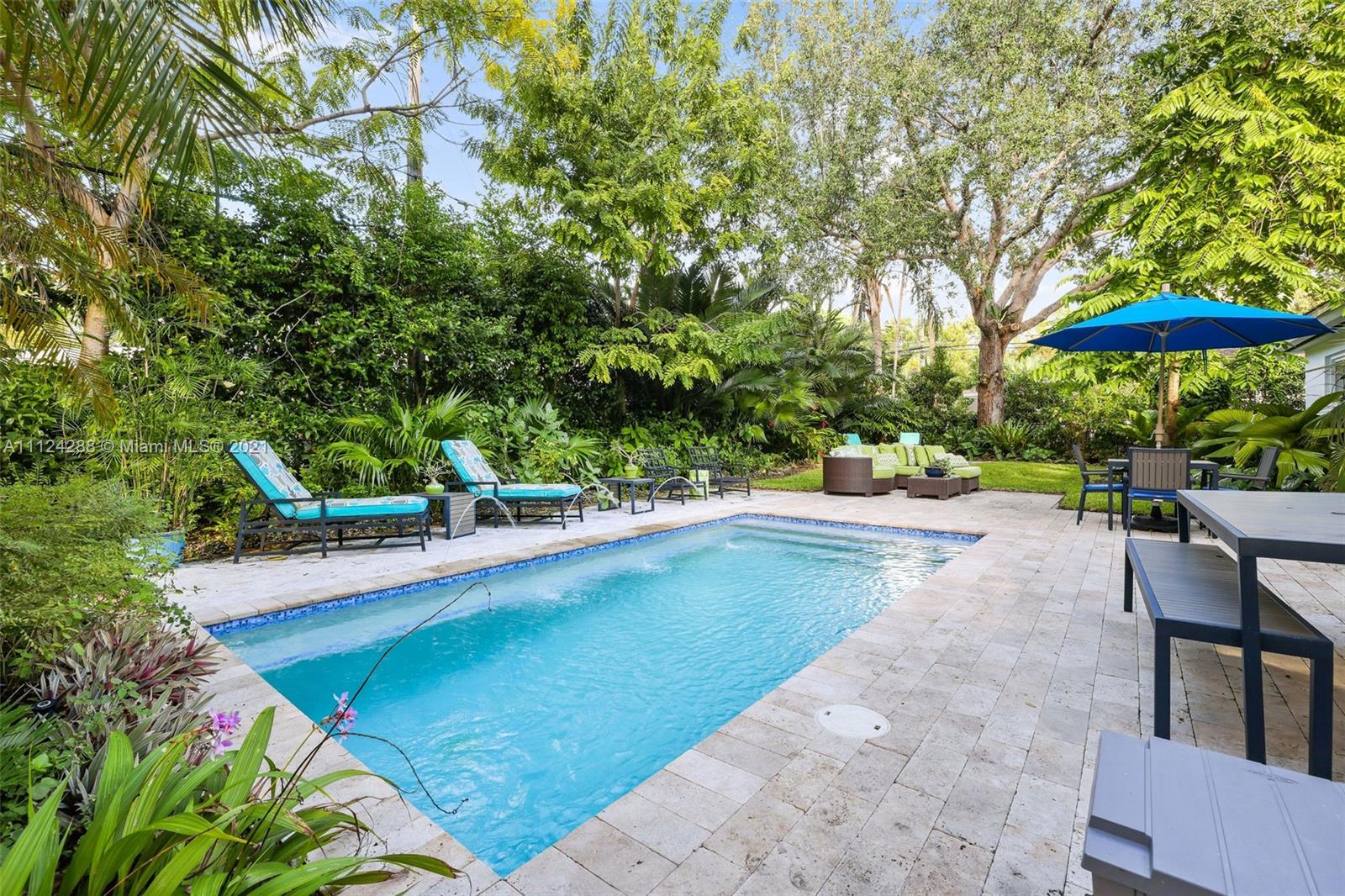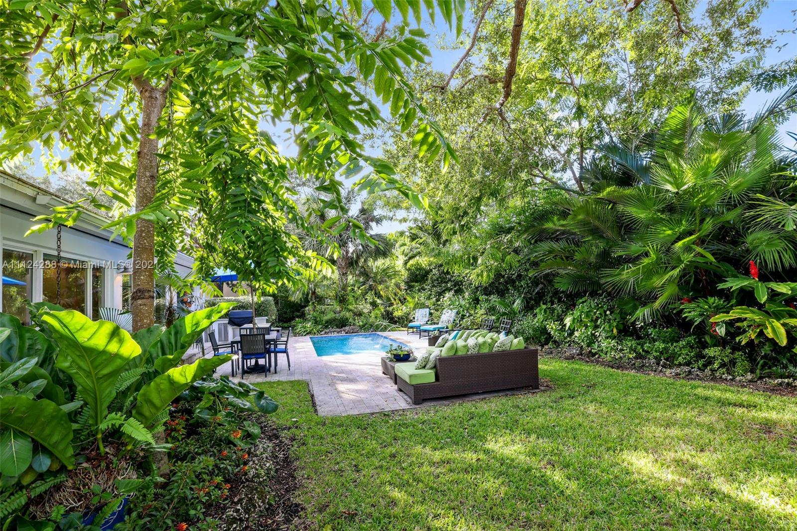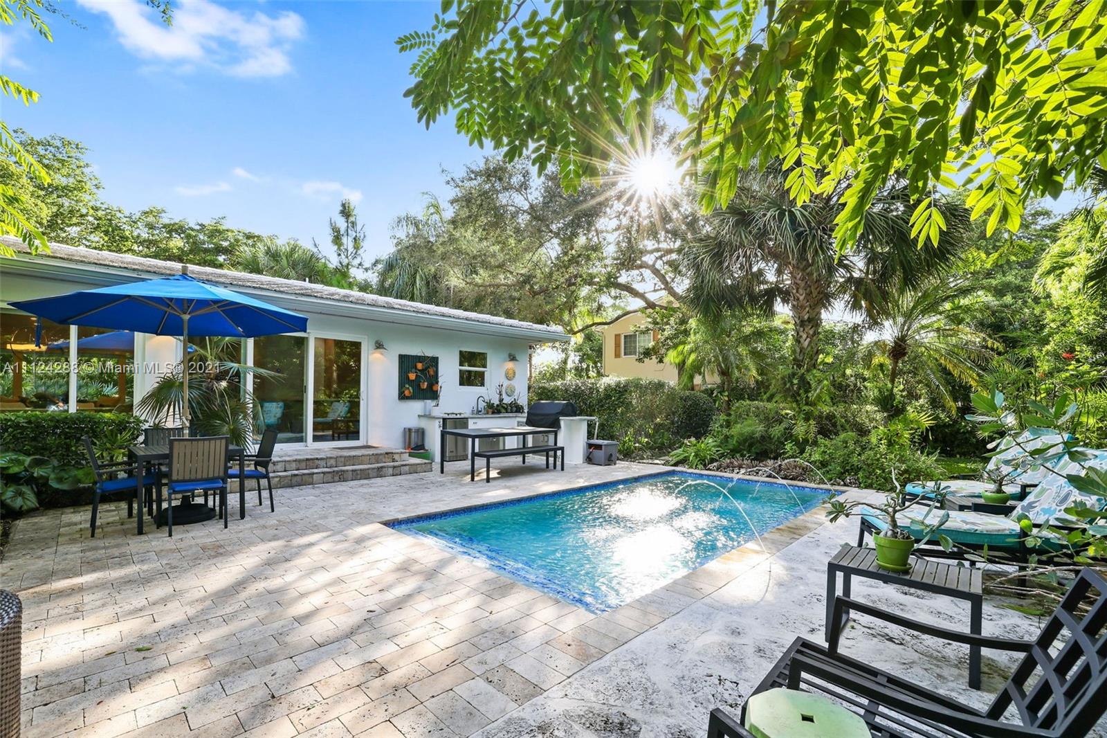 Completely remodeled mid-century modern home with extensive landscaping, a heated salt water pool, and an out-door kitchen, in the best part of Coral Gables on a double sized 10,000 square foot lot, steps away from a 5 acre city park and playground! Everything in this home has been updated to the highest caliber of finish, no ikea kitchens here! Updates include roof, kitchen (all Bosch), large impact windows, plumbing, electrical, septic tank, closets (closet factory), bathrooms, drywall, and lighting. To maintain the mid-century charm, the original terrazzo has been preserved and refinished. No detail has been overlooked, from the blinds and blackouts, down to the door hinges. This is your paradise! OPTION TO BUY FULLY FURNISHED. 80+ species of plant life (we even have a spreadsheet).
