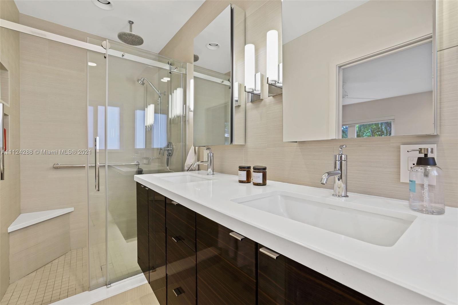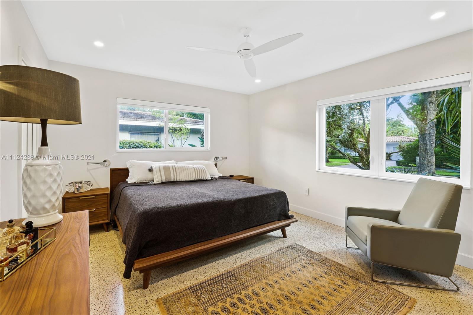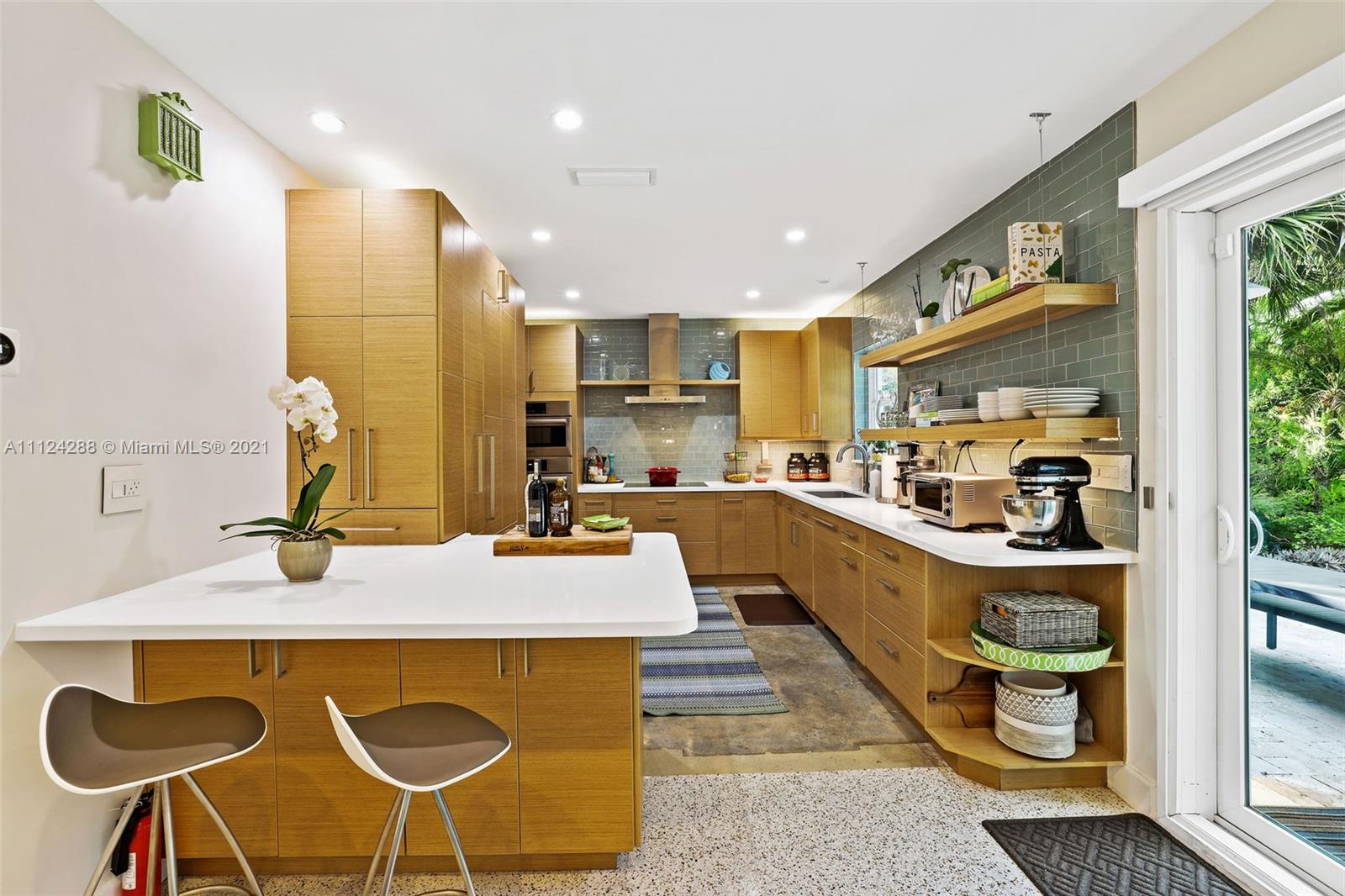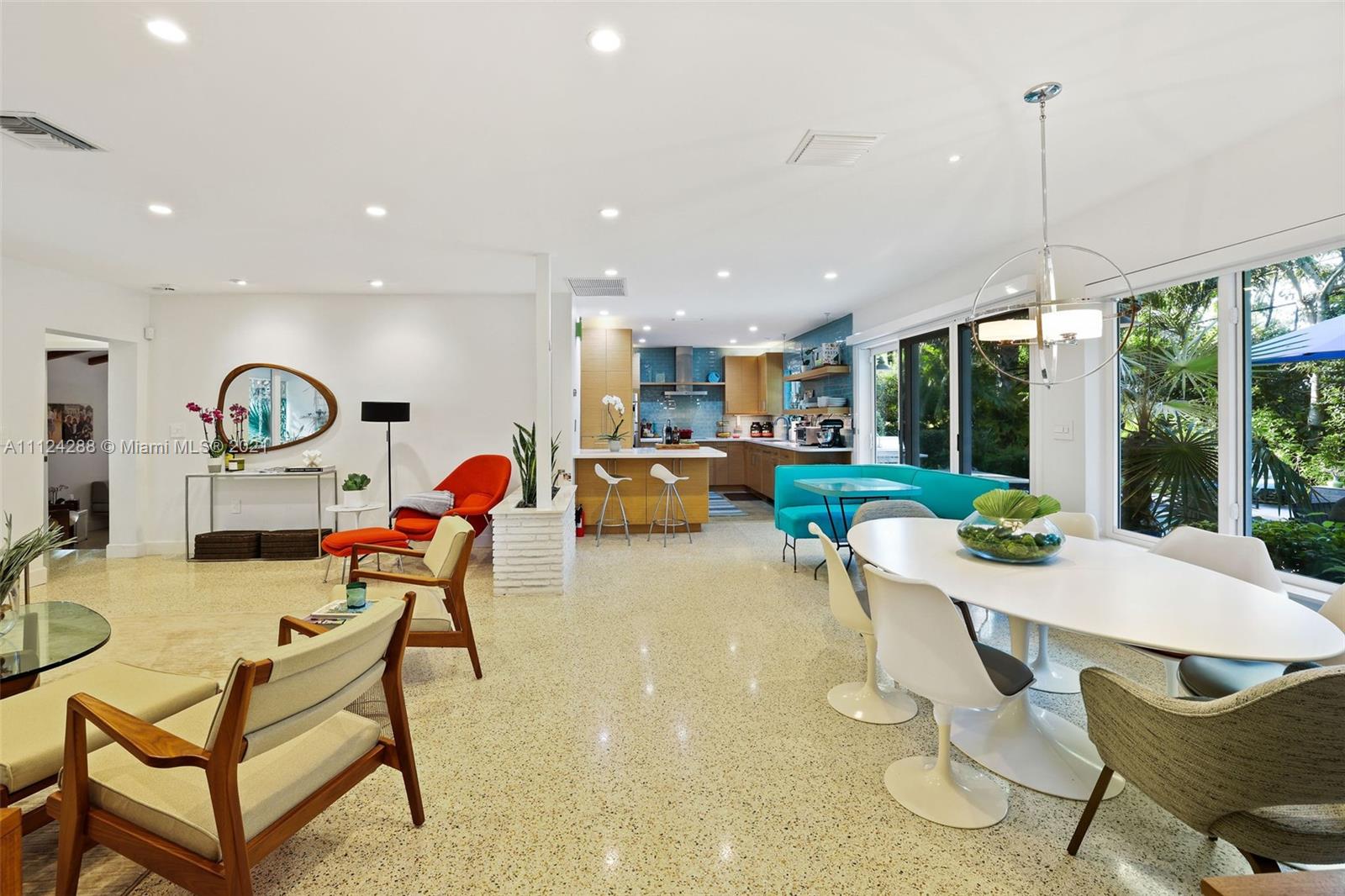 Completely remodeled mid-century modern home with extensive landscaping, a heated salt water pool, and an out-door kitchen, in the best part of Coral Gables on a double sized 10,000 square foot lot, steps away from a 5 acre city park and playground! Everything in this home has been updated to the highest caliber of finish, no ikea kitchens here! Updates include roof, kitchen (all Bosch), large impact windows, plumbing, electrical, septic tank, closets (closet factory), bathrooms, drywall, and lighting. To maintain the mid-century charm, the original terrazzo has been preserved and refinished. No detail has been overlooked, from the blinds and blackouts, down to the door hinges. This is your paradise! OPTION TO BUY FULLY FURNISHED. 80+ species of plant life (we even have a spreadsheet).