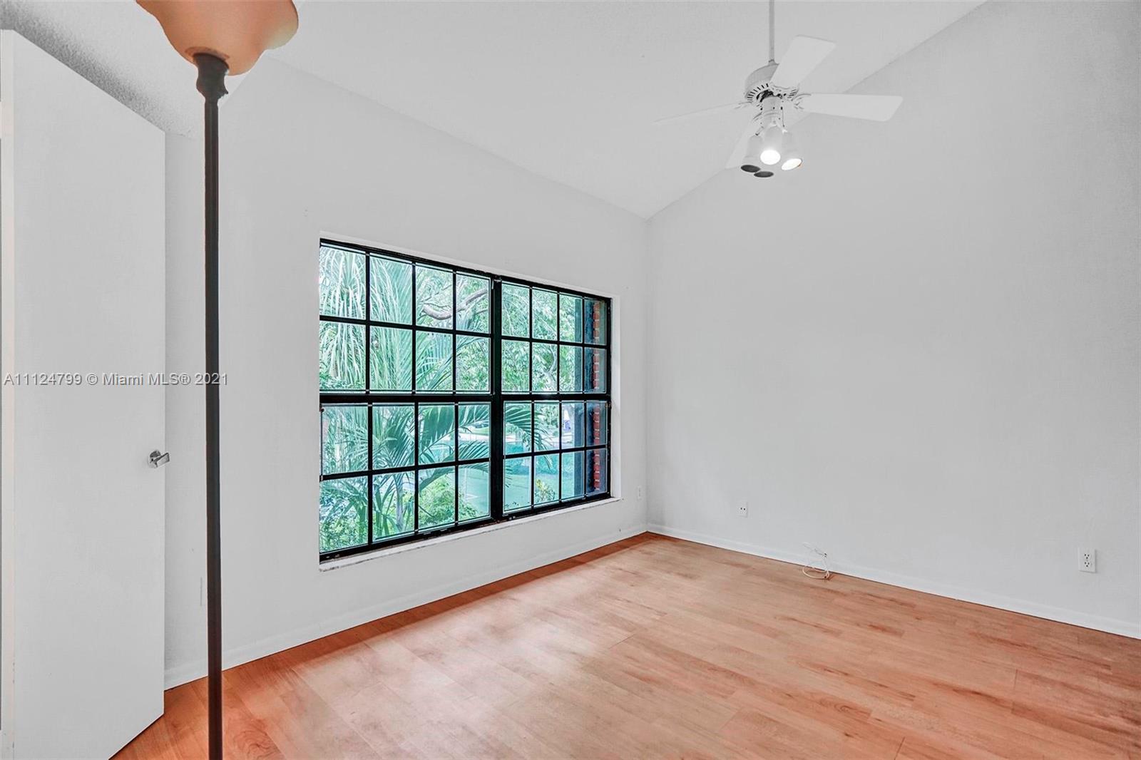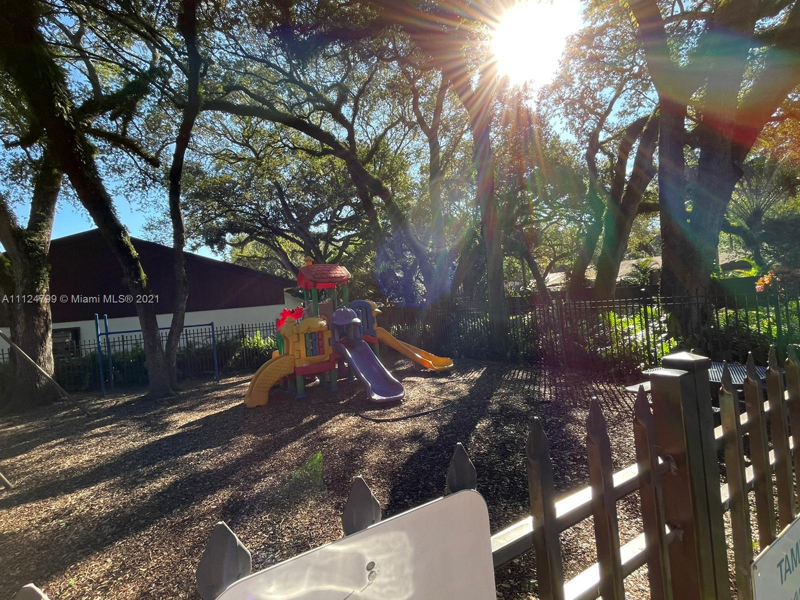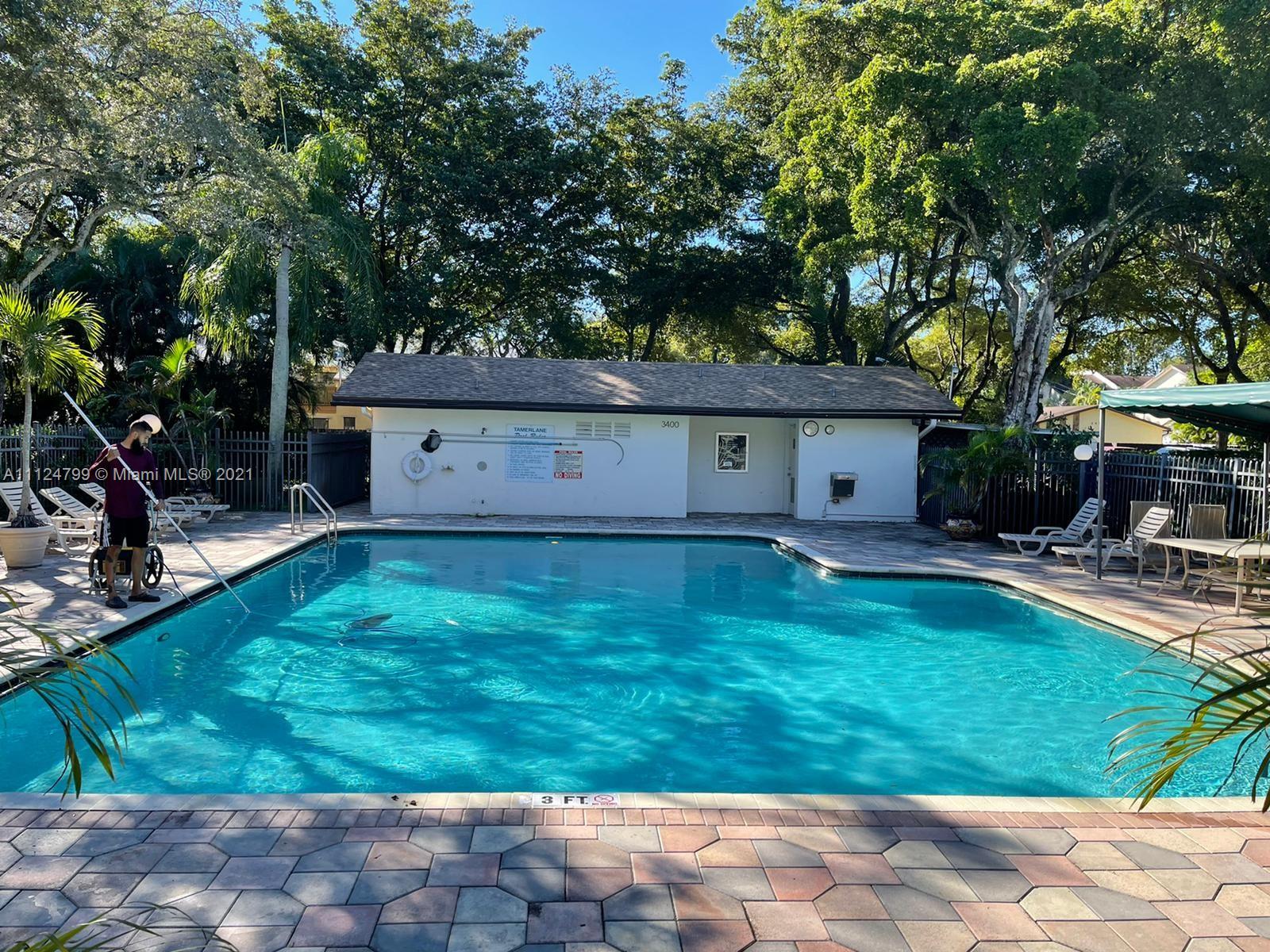 Spacious and bright 3/2 townhouse in a beautiful, leafy community across the street from TY Park in Hollywood. Quiet end unit with tall wood beam ceilings, great for entertaining and relaxing. Literally backs up to the association's private dog park, tennis court, pickle ball courts, basketball court, and steps to the swimming pool and playground. Walk to nearby houses of worship, restaurants and stores, and a short drive to Dania Pointe, Oakwood Plaza, Downtown Hollywood and Hollywood Beach. Exceptional landscaping and amenities in a well-maintained community with low monthly maintenance. Windows upstairs and downstairs look out to many big trees and shrubs. Perfect home for nature lovers, families, dog lovers and active lifestyles.