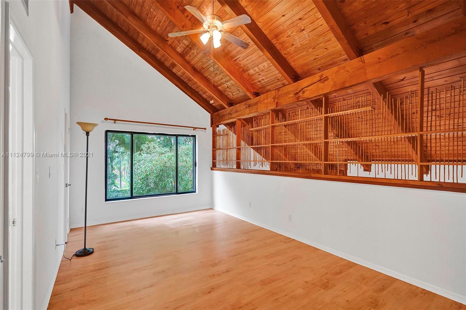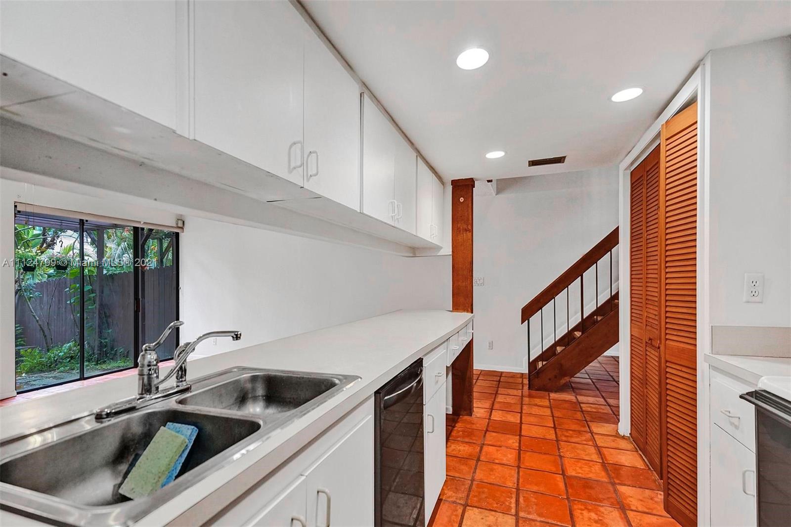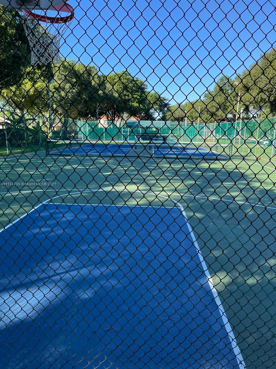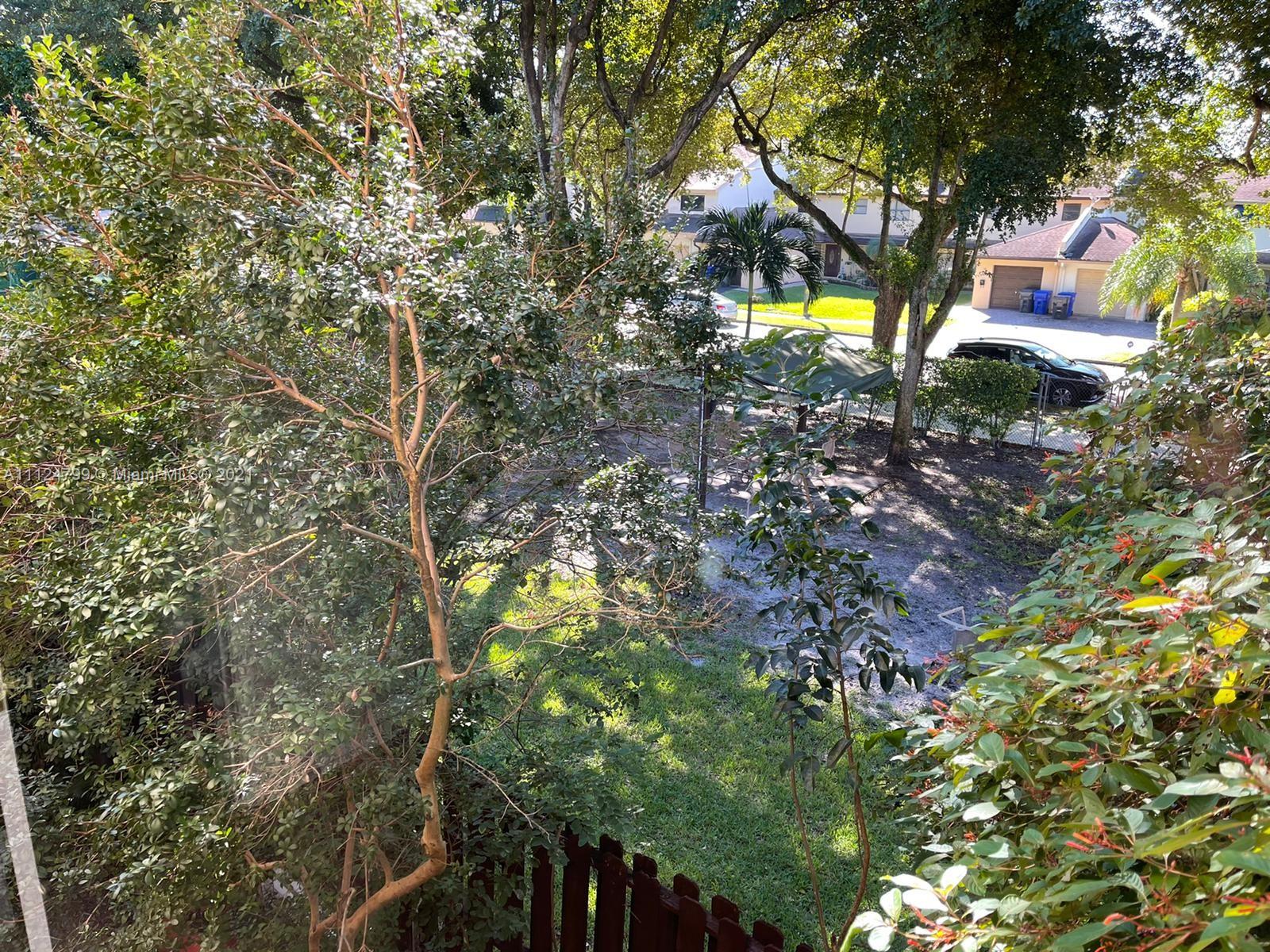 Spacious and bright 3/2 townhouse in a beautiful, leafy community across the street from TY Park in Hollywood. Quiet end unit with tall wood beam ceilings, great for entertaining and relaxing. Literally backs up to the association's private dog park, tennis court, pickle ball courts, basketball court, and steps to the swimming pool and playground. Walk to nearby houses of worship, restaurants and stores, and a short drive to Dania Pointe, Oakwood Plaza, Downtown Hollywood and Hollywood Beach. Exceptional landscaping and amenities in a well-maintained community with low monthly maintenance. Windows upstairs and downstairs look out to many big trees and shrubs. Perfect home for nature lovers, families, dog lovers and active lifestyles.