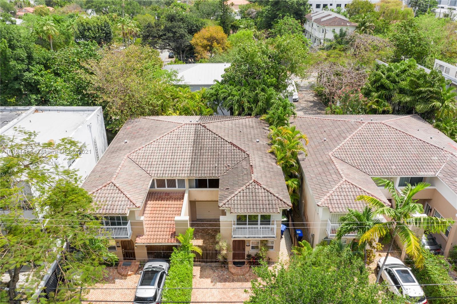 Spacious town home in Coconut Grove. Impact doors & windows. Updated kitchen with SS appliances. Formal living room, formal dining room, open kitchen with breakfast area and large family room. Three bedrooms on the second floor with bamboo flooring. Expansive master suite with large closet, sitting area & large bathroom with separate tub with jets and shower. One car garage plus three gated parking spaces plus street parking in the front. No maintenance fee, 4 units share the cost of the insurance. Current cost for this unit is $4,578 per year. Not in a flood zone. Walking distance to Downtown Coconut Grove, parks & shopping. Quiet, low traffic street.