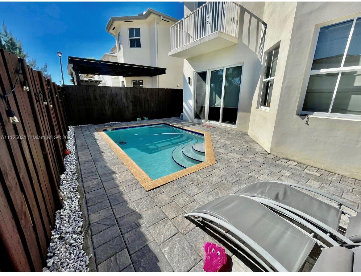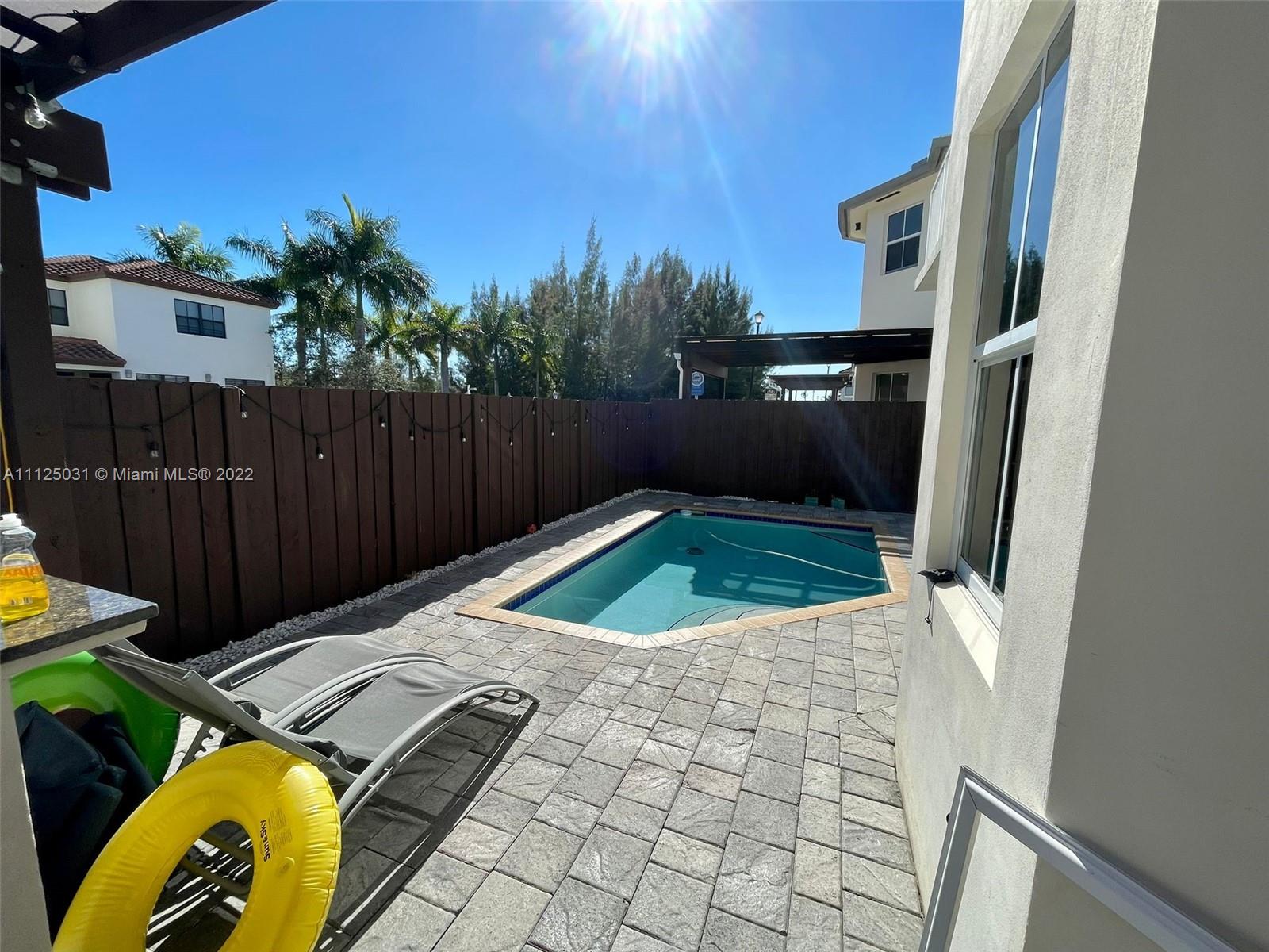 Beautiful home in the sought after Vintage Estates in the city of Doral. It offers 4 bedrooms with one of them on first floor and 3 on second floor, one full bathroom downstairs and 3 upstairs. Kitchen with Italian cabinets, stainless steel appliances, winery and breakfast room. Marbel flooring throughout the house except the rooms with woodlike laminated flooring. Backyard with swimming pool and gazebo as social area to enjoy. Community with clubhouse equipped with gym, swimming pool, business center, and social room for events and parties.