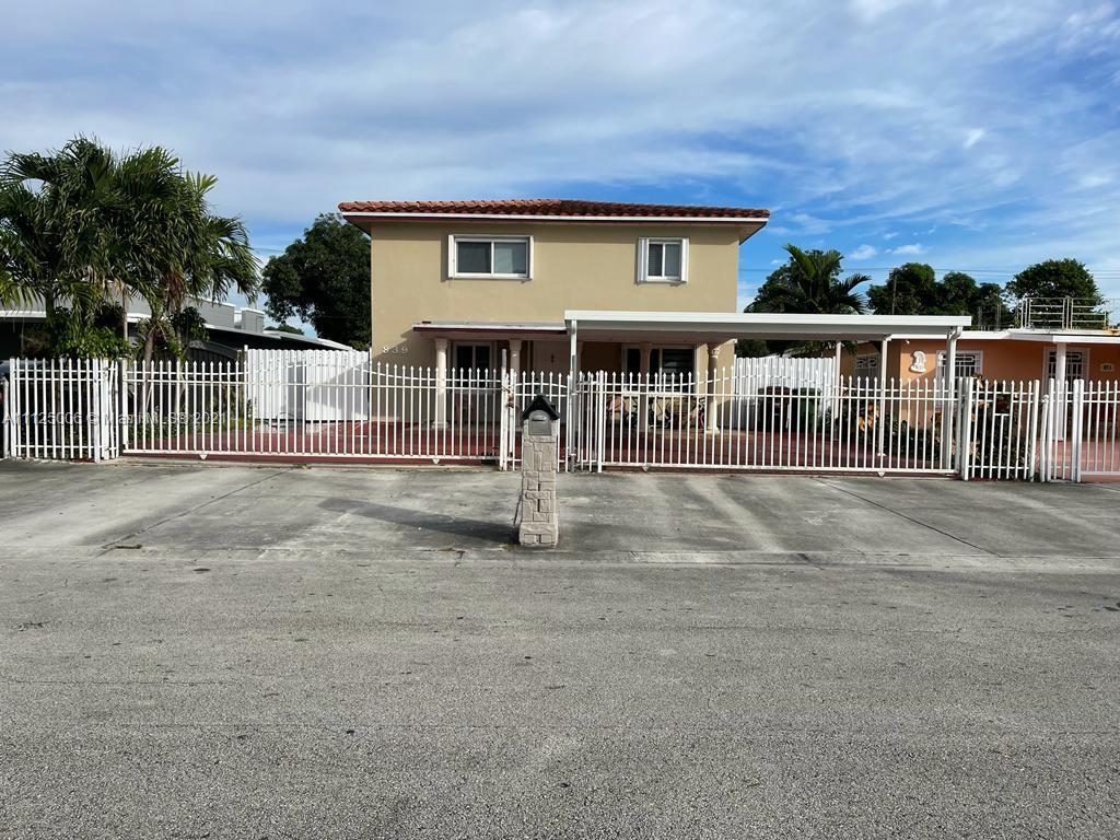 Unique property in hot East Hialeah! 4 bedroom/2 bathroom split in two floors. 2 bedrooms and 1 bathroom on each floor. Florida room that can be converted into an extra room. New roof done in 2017, curved S tile roof. New Central AC unit for both floors. Newly renovated carport area with LED lights. New fencing and gates. Avocado and mango trees on the property. Home features impact windows and shutters for extra protection.