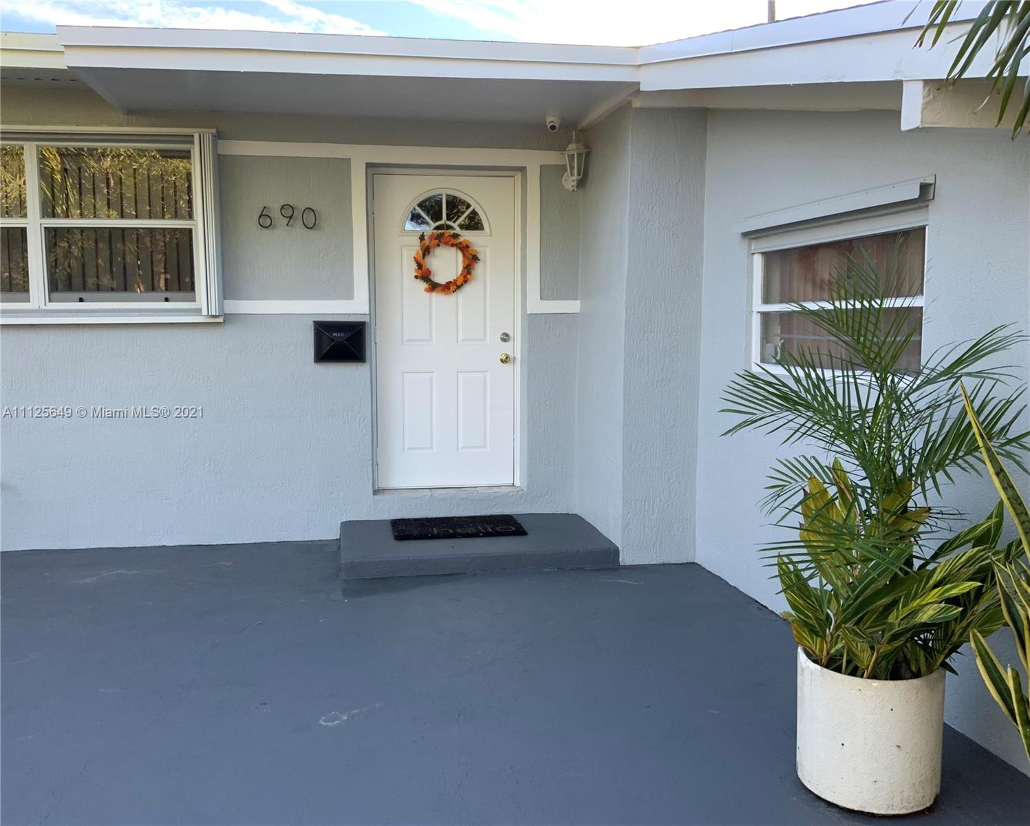 Charming 3 Bed 2 Bath home with 2 additional rooms (old garage) that may be used as an office, playroom, etc. Centrally located in the safe and highly desirable Palm Springs neighborhood, only minutes away from the Palmetto Expressway, Restaurants, Shopping Mall and Hospital. Cozy family room leading to an outdoor covered patio great for BBQs and family gatherings. Large fenced backyard with mango and avocado fruit trees, also room for a pool. Accordion shutters throughout the front of the house & hurricanes aggregated panels for the remaining windows. House has been freshly painted outside, large driveway w/ plenty of parking. The roof was replaced in 2011. House sold "AS-IS", just use your imagination to create the perfect home for lifetime memories. NO HOA!