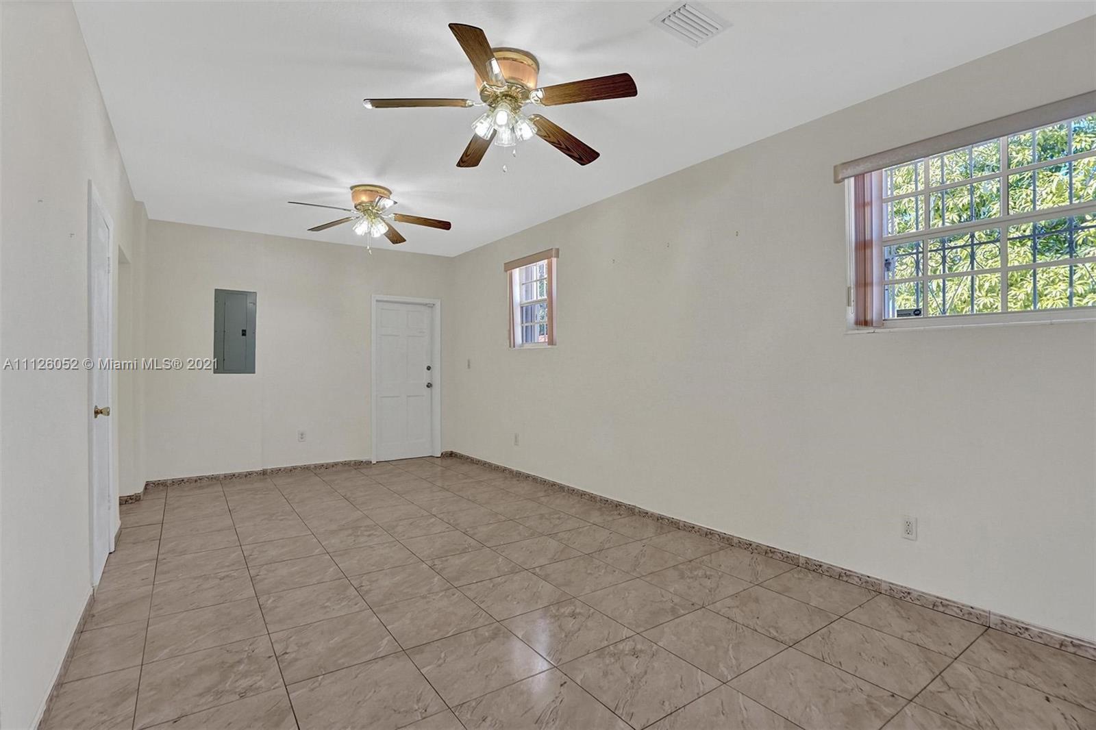 Upgraded, Spacious, Full-featured 4/2 Single family residence in desirable Hialeah. Fully fenced with 6ft galvanized aluminum fencing, dual remote control gates, concrete stamped driveway, car porch 3 spaces, huge backyard with 3 sheds for storage, backyard has concrete floor great for hosting, updated tile roof and exterior features like columns, wall texture/paint, window frames and facia. Upgraded wooden cabinets and granite countertops in the kitchen. matching modern appliances. solar panel, accordion hurricane shutters. Interior has been upgraded with knockdown texture in walls and ceiling. freshly painted. Beautifully tiled flooring. Upgraded master bathroom with new wall tiles, shower, vanity, and toilet. Oversized Florida room! Impact rated windows/doors. Proof of Funds w/ contract