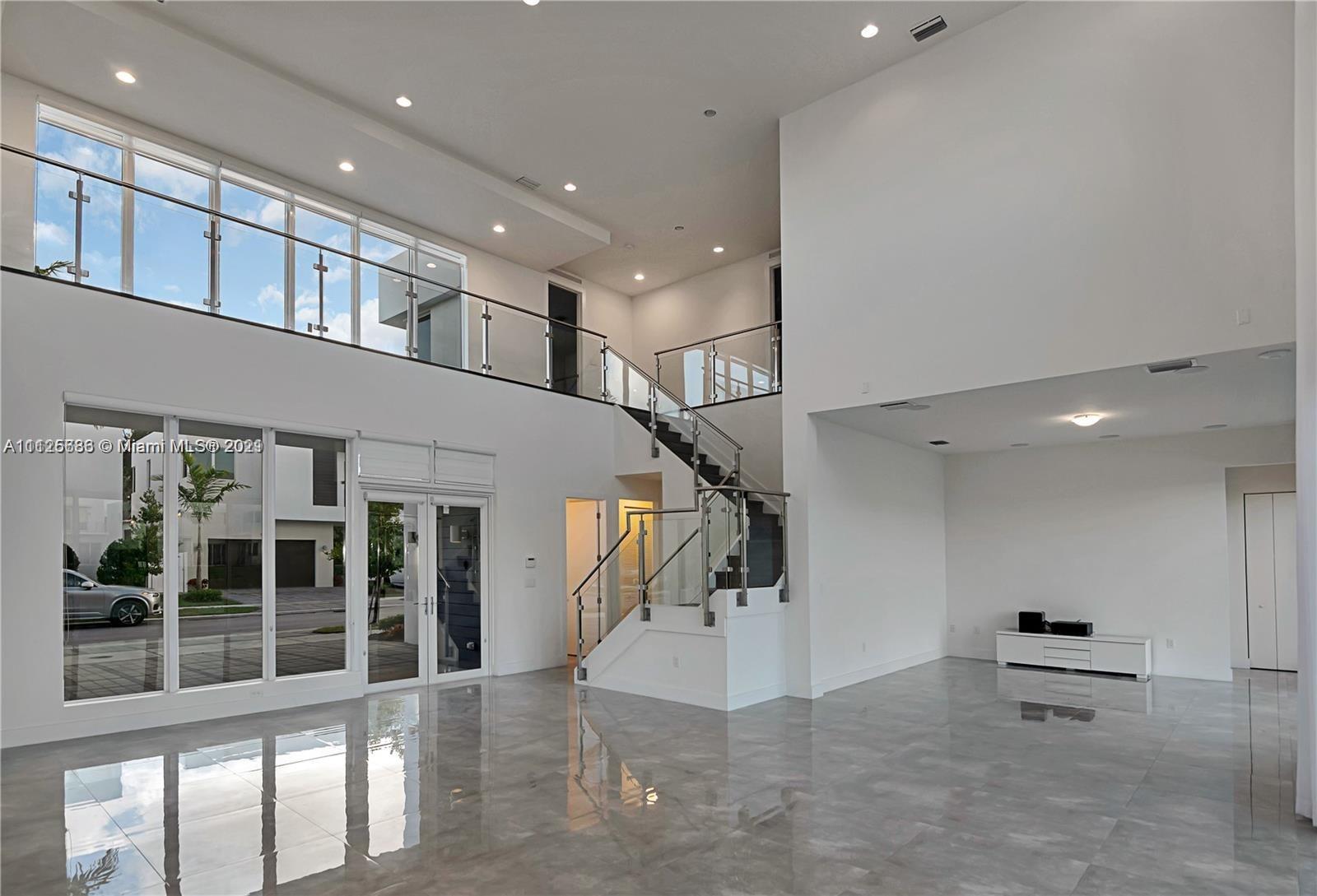 Luxurious Home at MODERN DORAL 75 is a dream home in a high-end community that's minutes away from Trump National Golf Club. Lakefront residence graced by double height ceilings, with lake views from multiple vantage points. Upgraded glass staircase draws you into a voluminous layout made for entertaining. The master suite presents a terrace overlooking the water. Hardwood floors in the entire second level. All closets are custom made by an Italian Brand. One bedroom and Laundry are conveniently located on the lower level. Smart Home Automation includes: Lutron Lighting Control, drapery Sonfy Shade. A/V Systems include: Surround system in Family room and Master bedroom, audio zone in kitchen and patio, Nest thermostats, CCTV Surveillance camera system and WiFi Network system.