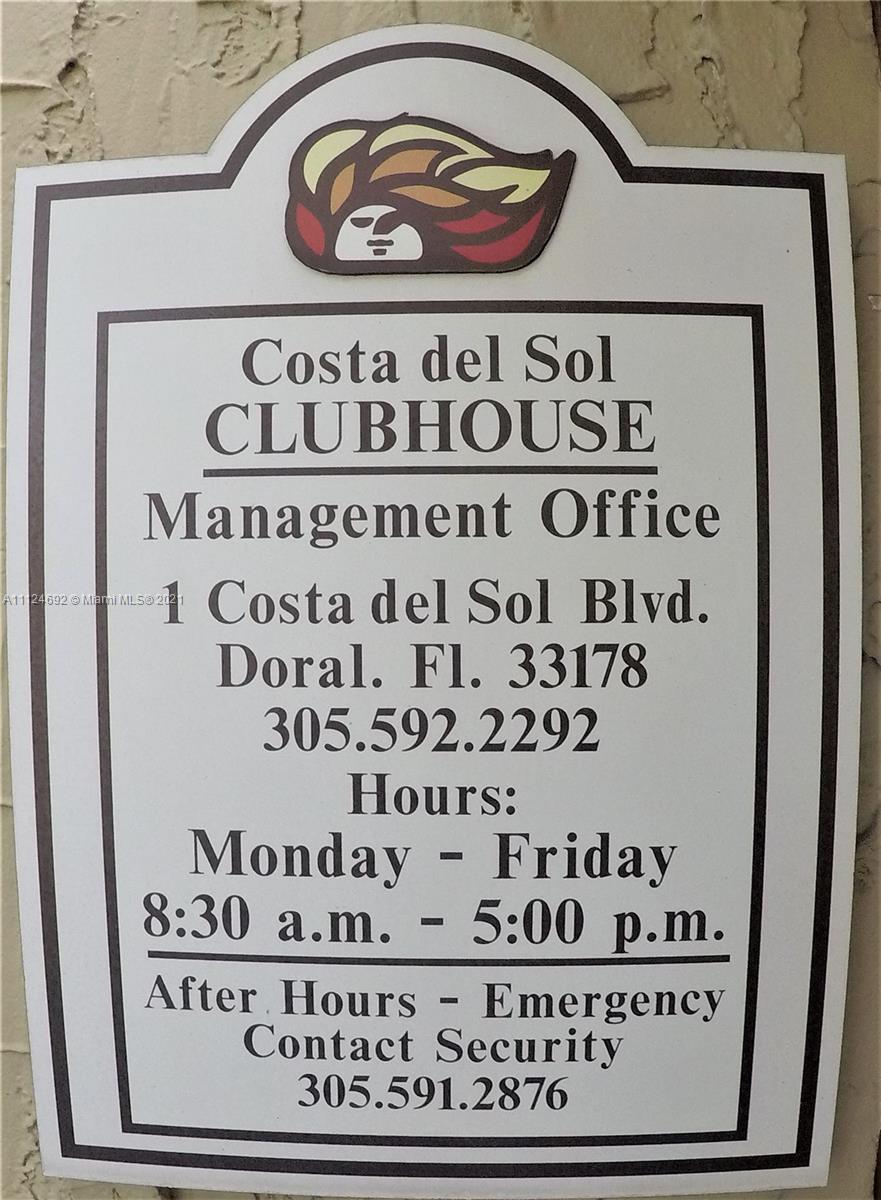 Great Townhouse with large 3 Beds/2.5 Bath, well-maintained townhouse in secure Costa Del Sol. Ample 1,712 sq. ft. . Tile floors throughout. Enclosed entrance courtyard. The large and bright living area faces a large backyard, open kitchen w/breakfast nook. There is a half bath on the 1st floor for your guests. On the2nd floor, there are 3 large bedrooms with balconies. Lots of closets. Newer washer & dryer. NEW A/C SYSTEM. 1 car garage w/storage. Costa del Sol is an HOA/Condo that includes roof maintenance, exterior paint, and others. Besides the great gardens & lakes areas, has amenities such as a pool, tennis, gym, party room, restaurant, and 18 hole golf course for a fee. Pets ok. The maintenance fee Include Basic TV cable, internet, pest control, water & sewer. MUST SEE!!!