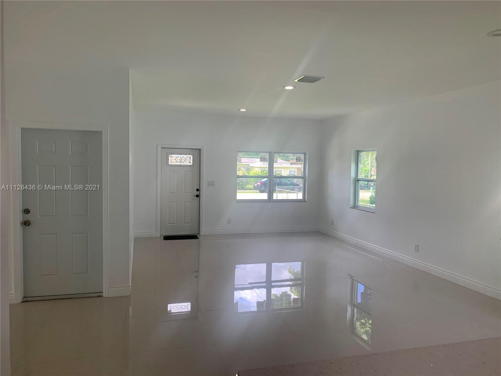 Do not miss this opportunity!!!!! Brand new construction home with 3 bedrooms 2 bathrooms. Huge living and dining room. 2 car garage with just over 2,000 square feet. 9 foot ceilings, quartz kitchen counter with Stainless steel appliances, 32" rectified porcelain tiles throughout entire house. Impact windows and much more!!