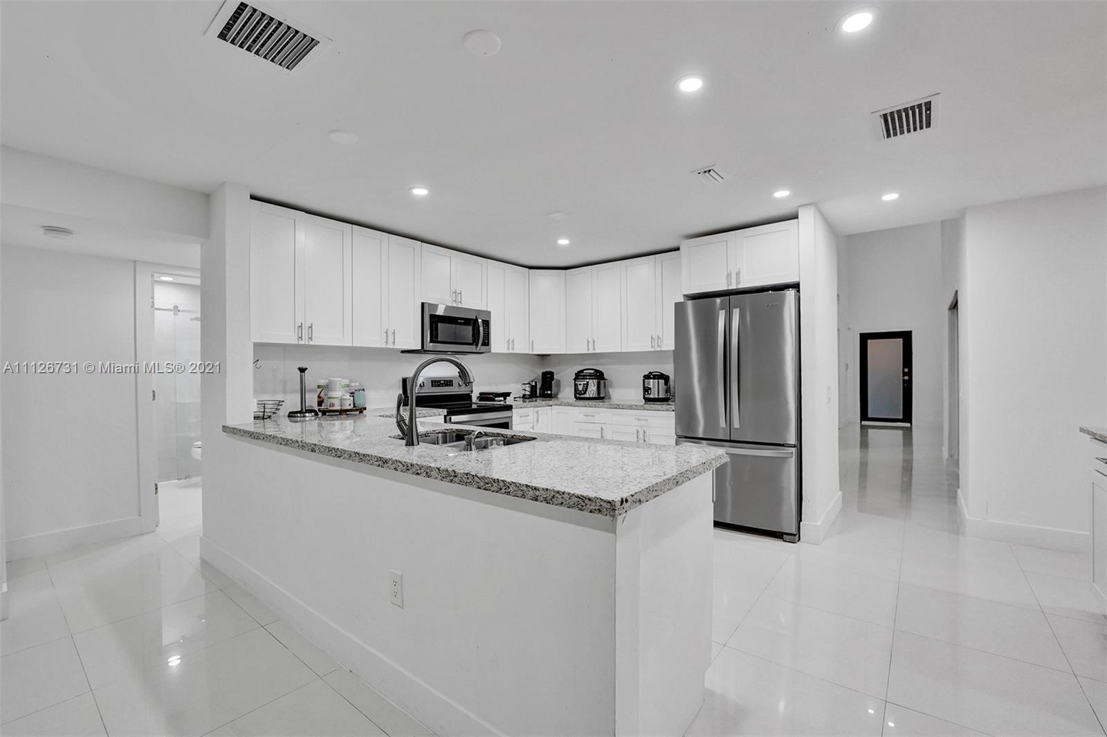 Magnificent fully renovated home combining warm and luxury style. Incredible opportunity! Home features 5 bedrooms, 3 bathrooms. Two Bedrooms are Downstairs. Beautiful new window treatments. Impact windows, and doors. Big backyard for room for a pool. Perfect for entertaining family and friends. Property is located in a very pleasant neighborhood. The Community has multiples pools, tennis courts, club house and more amenities. Close to shops, restaurants and major grocery stores. This Home will not last!!