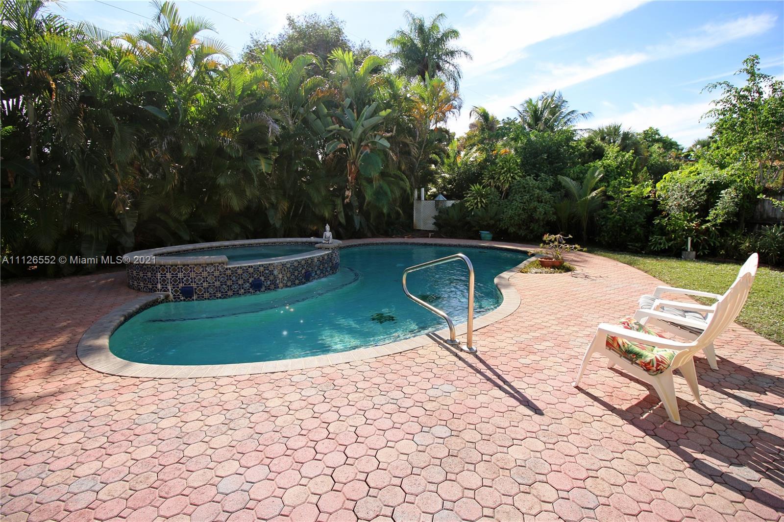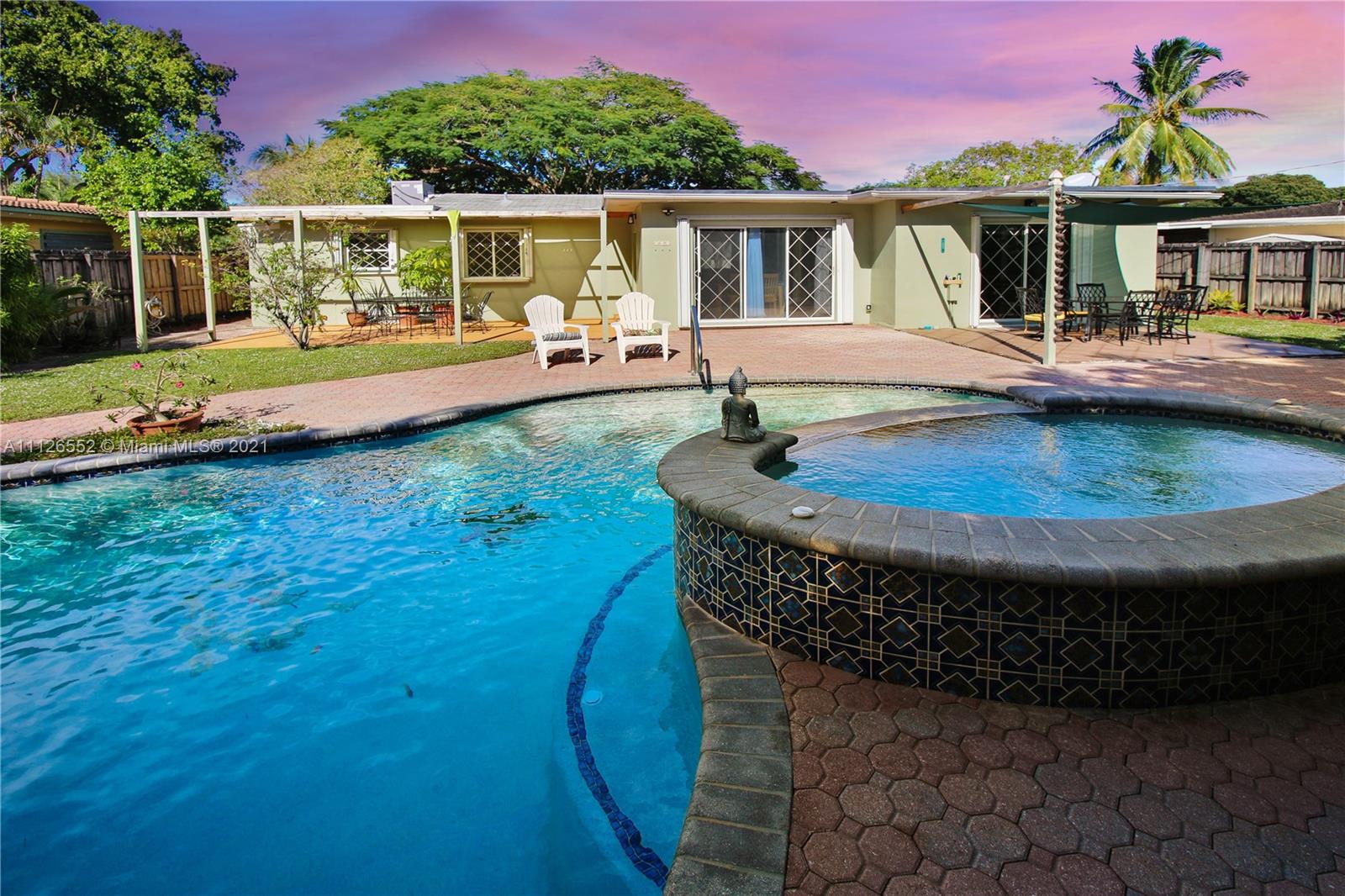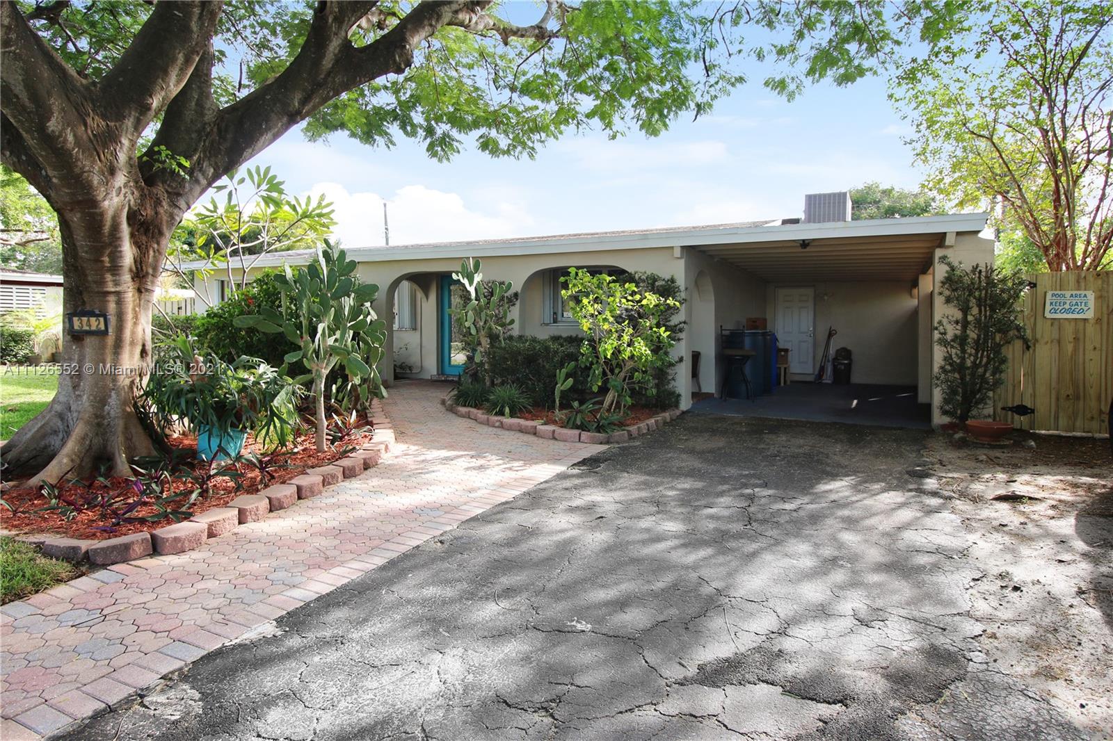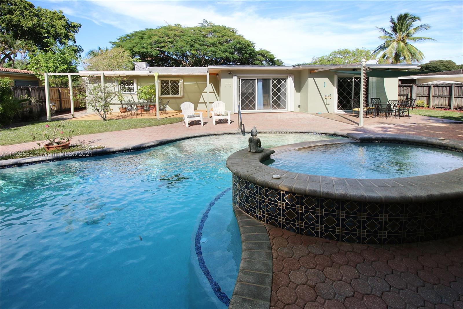 Entertain in this amazing POOL home with an oversized, fully fenced lush backyard on over 8,000 SF lot. This 3 bedroom, 2 bathroom home features two living areas, two dining areas, extended farmhouse style kitchen with sink window looking out to pool, lovely stained glass features, a beautiful flamboyant tree on front lawn, covered carport, shed in backyard, and NEW A/C. Kitchen features additional pull out cabinets for extra storage/pantry space. Opportunity to own an island-style home, and potential to make it your own! Lovely neighborhood. and close to beach!