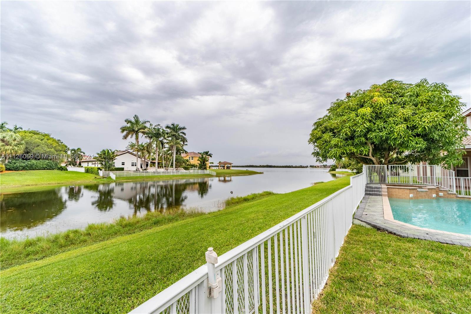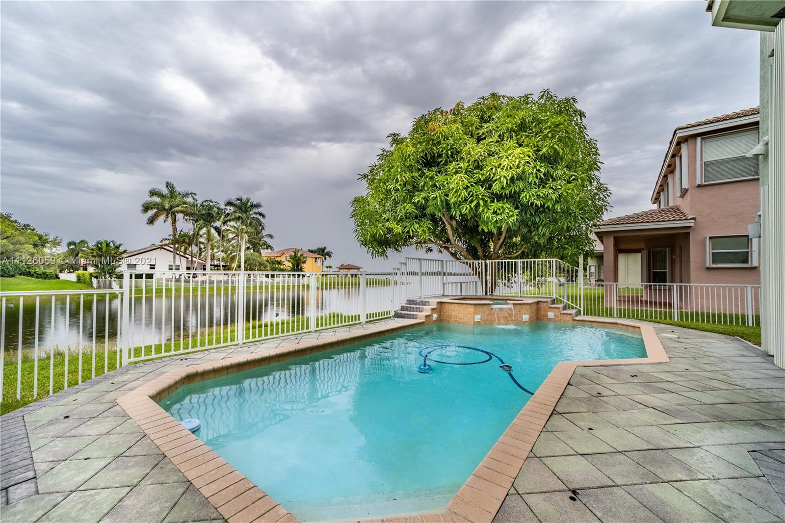 Once in a life time!!! Come and relax in your resort style backyard w/ a beautiful pool and spa with waterfall and feel like you're on your own private island! Beautiful lake views from your pool. Many builder upgrades. This 5 bdrm/+ den/4.5 bathroom (6 rooms in total). Home features stainless steel GE Profile appliances, built in surround sound wiring for your own home theatre, Cat 5 wiring for ethernet, wood kitchen cabinets with crown molding and granite, jacuzzi tub in master bath, bamboo flooring through out 2nd floor, tile though out 1st floor, full service laundry room located on the 2nd floor, and pool control panel inside the house. Recently upgraded with two new Trane ac units, new sprinkler system, water heater and washer and dryer. Property has two exotic mango trees to enjoy!
