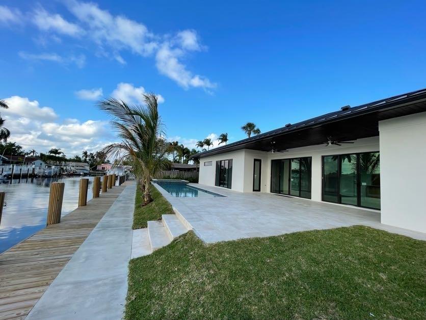 New construction/waterfront in East Pompano Beach, canal front, ocean access home designed to provide the best Florida living lifestyle. New 65 feet private dock/seawall, heated pool & spa, large covered patio, cabana bath and outdoor kitchen. Step inside to a luxury finished modern interior, high ceilings, simple one story living, European porcelain tiles throughout entire home, marble baths, custom cabinetry & closets, high end appliances and plumbing fixtures. 4 beds, 1 master, 1 en-suite, 3 full baths, 2 half baths. Built for the peace of mind with many upgrades, high impact doors & windows, metal roof. Only a few min to the beach, amazing restaurants, airport and Fort Lauderdale. Ready to move in December 2021. By appointment only!