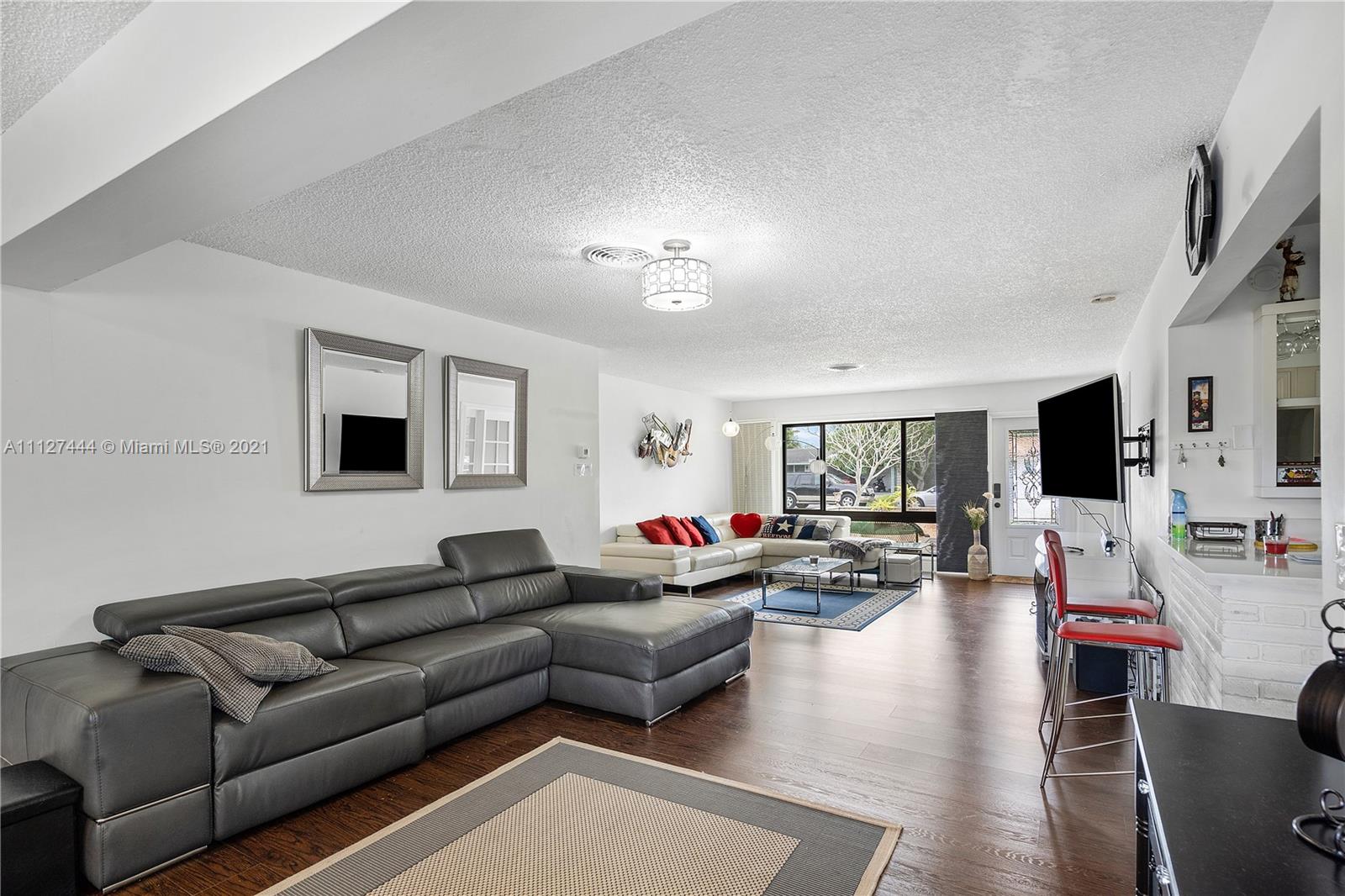 Enter through the front doors with the new paver patio that is gated. 1,690 sqft 3/2 with bonus in-law suite (could be a fourth bedroom) Recently remodeled throughout, tile floors, hurricane proof windows, new travertine pavers, long circular driveway with extended drive on the side of the house and stainless steel appliances. Outside is a fabulous oasis for relaxation, entertaining and grilling on the new BBQ island. Yard is fenced in with resin fencing, new shed, mango tree, rare palms, and solar shower for when you are done swimming in the pool. Located on the back and side of the house are remote control awnings.