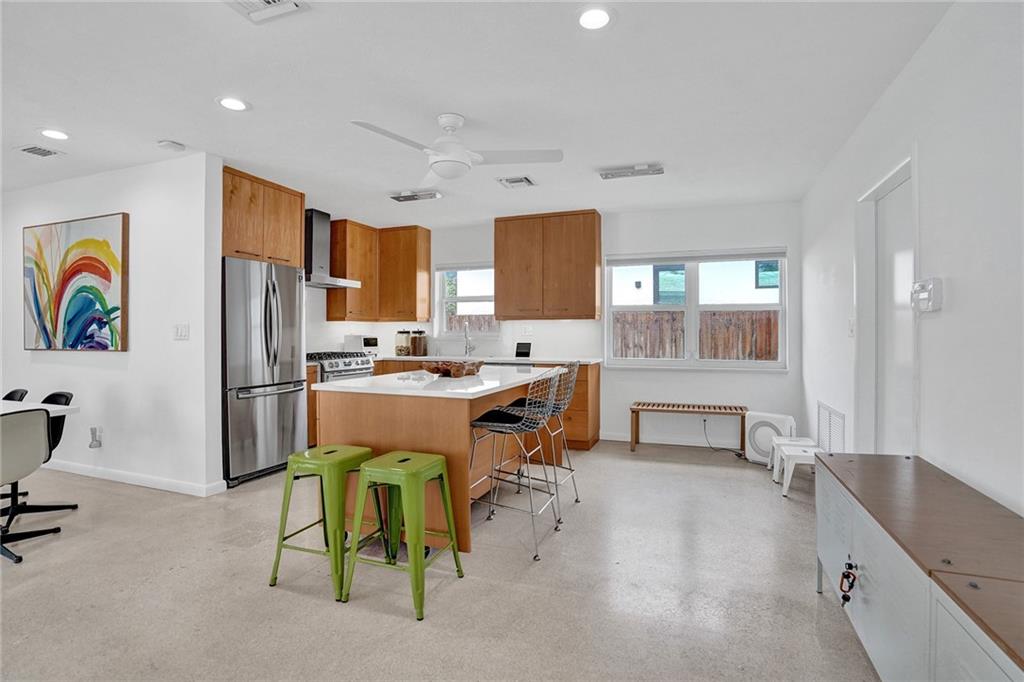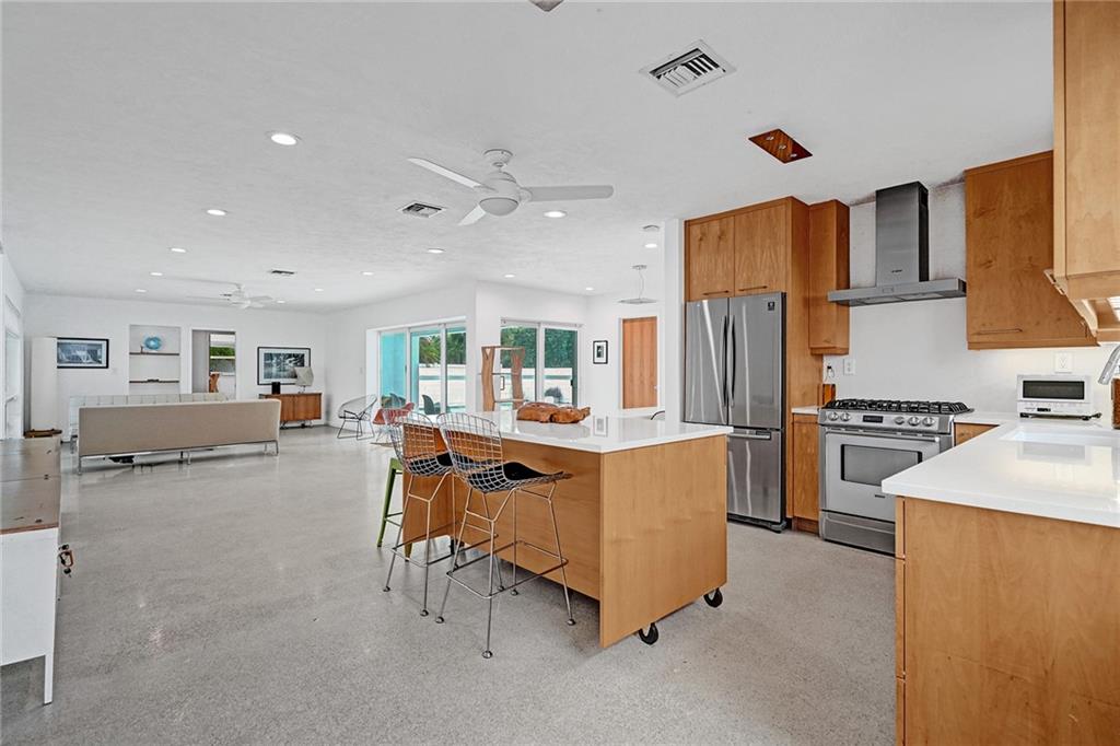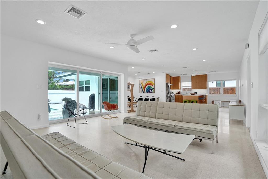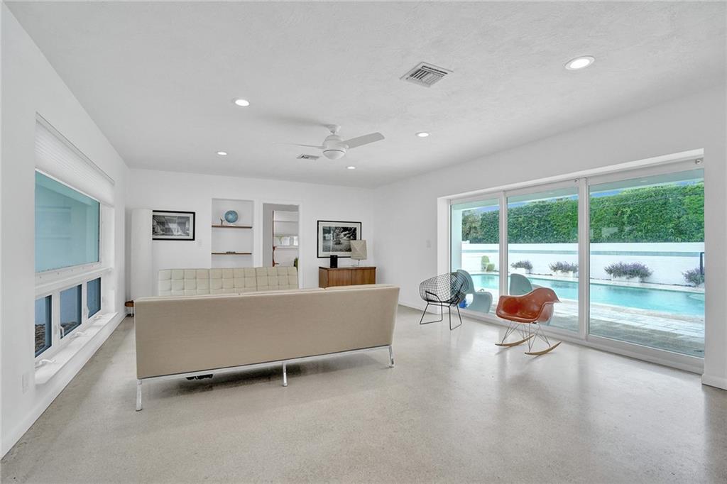 Fantastic 3 bedroom 2 bath home nestled on a quiet street in Coral Ridge Country Club. Impact windows and doors new this year! Bright and open living area boasts tons of natural light. Kitchen features wood cabinetry, quartz countertops and gas cooking. Terrazzo flooring throughout. Spacious bedrooms! Saltwater pool. Quick walk to Bayview Park.