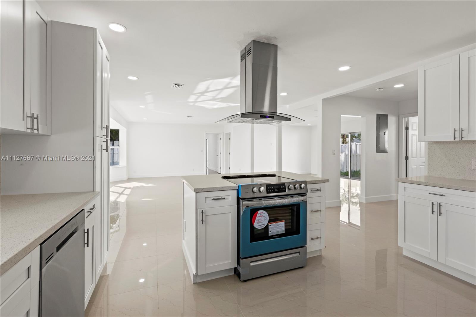 This completely remodeled ready to move in home truly checks off all the boxes! The home boasts 3 bedrooms, 2 bathrooms with a pool on a spacious corner lot! Numerous features include: fantastic open floor plan great for entertaining, renovated bathrooms, porcelain floors, LED recessed lights, and privately fenced in backyard. Kitchen offers spacious new cabinetry with cook-top island, quartz countertops, and brand new top of line stainless steel appliances. This is a must see!! Will not last!!! Contact the listing agent today to schedule a private showing!