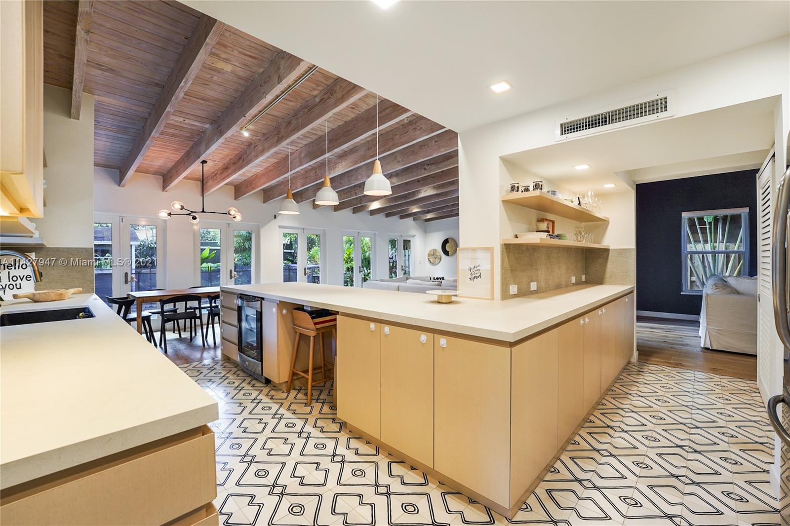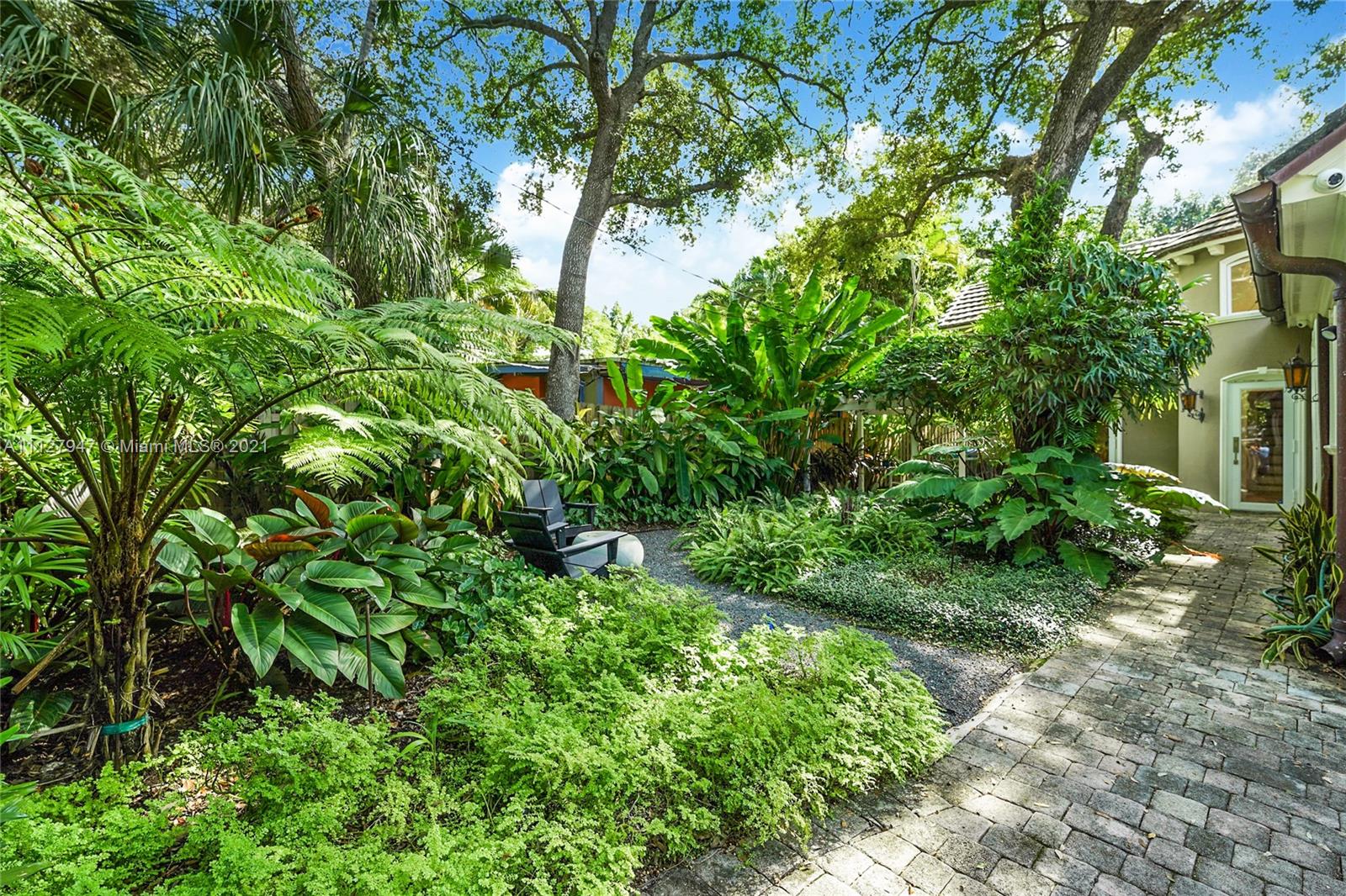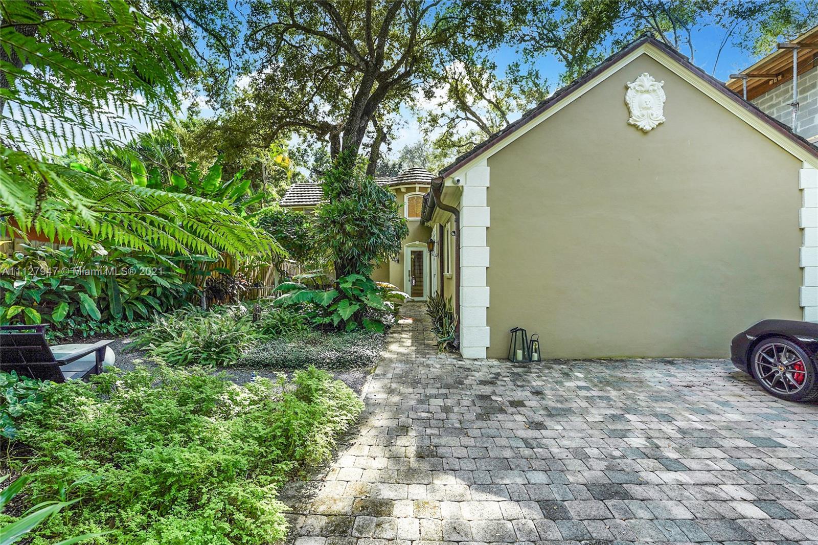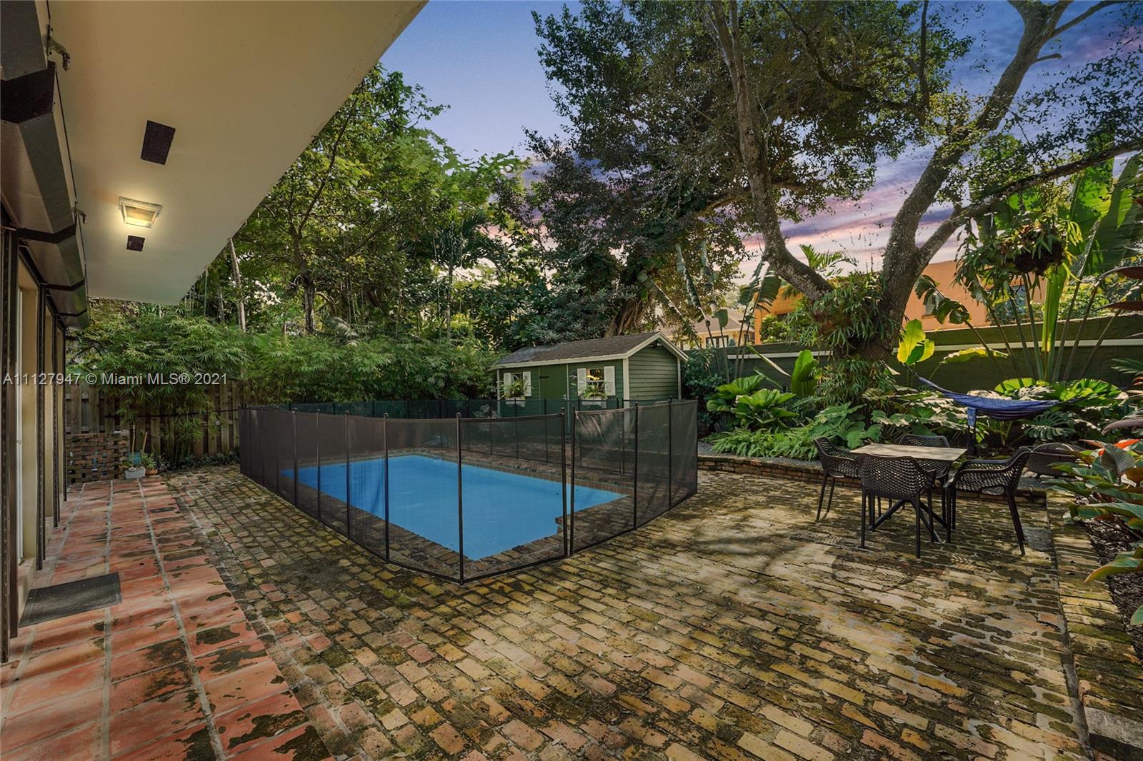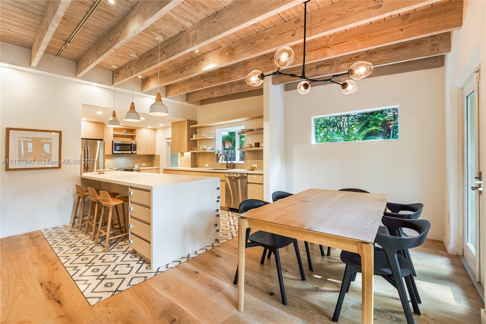 A fairy tale home meets modern design elegance. This 3 bed/3bath remodeled gated home is nestled on an oak laden lot. A dramatic foyer and living room with 20ft. beamed ceilings leads to social areas, with views through French doors to a salt water sparkling pool. The open family/dining area and gourmet kitchen make this home perfect for entertaining! Special features include a downstairs master bedroom (27 x 17), 10ft. ceilings, hardwood floors, new impact windows, just steps to downtown Coconut Grove and all the top schools.