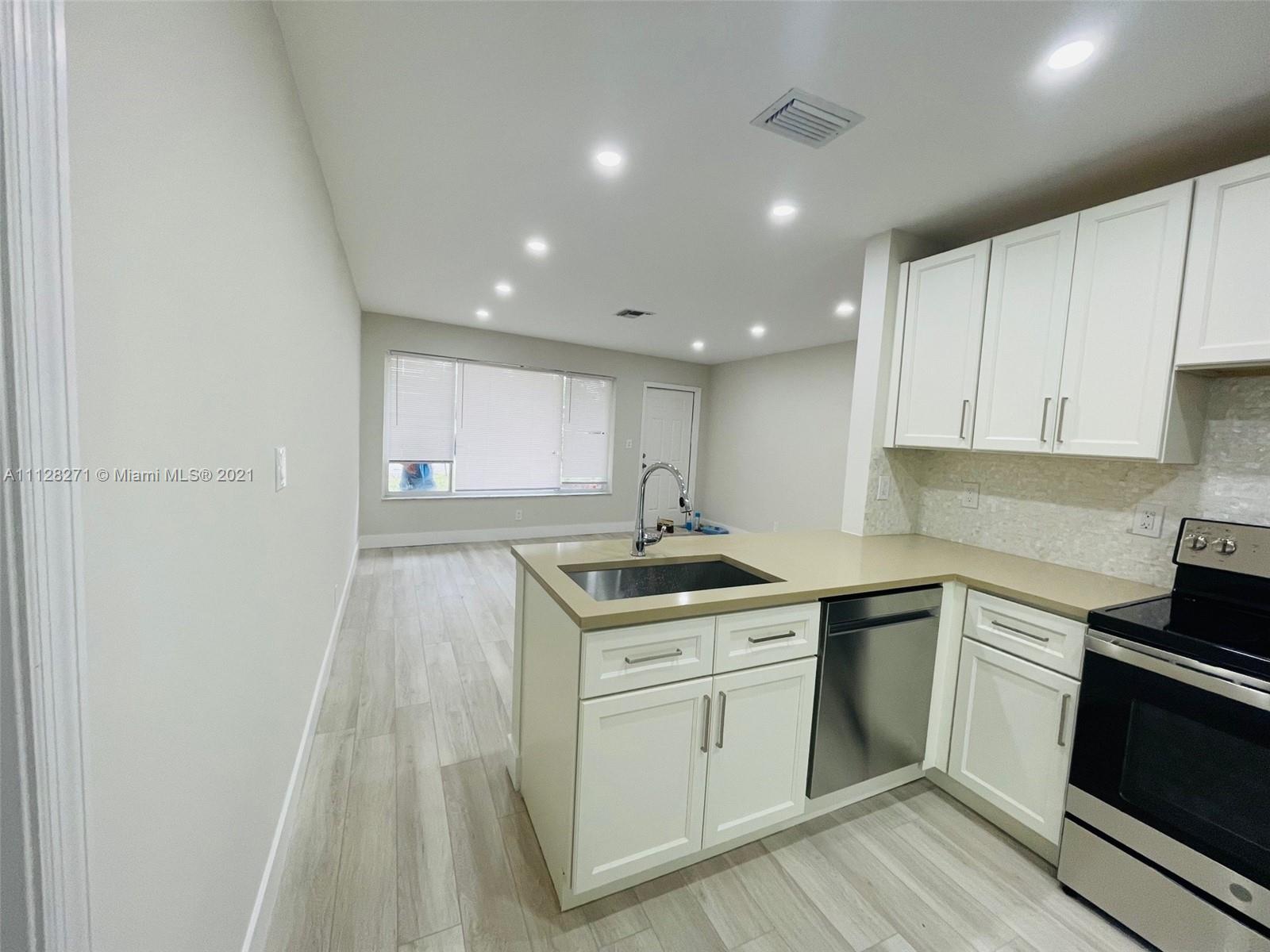 Desirable location!! NE Pompano Beach area, just one block from US1. Beautiful 3 bedrooms/ 2 bathrooms open floor plan. Wood kitchen cabinets with quartz countertops and stainless steel appliances.New floors throughout the house and freshly painted. All updated bathrooms, lightening and fixtures. Outside storage shed with fenced yard and plenty of parking spaces with no restrictions. One car garage with inside laundry and central AC. Must see to appreciate!!