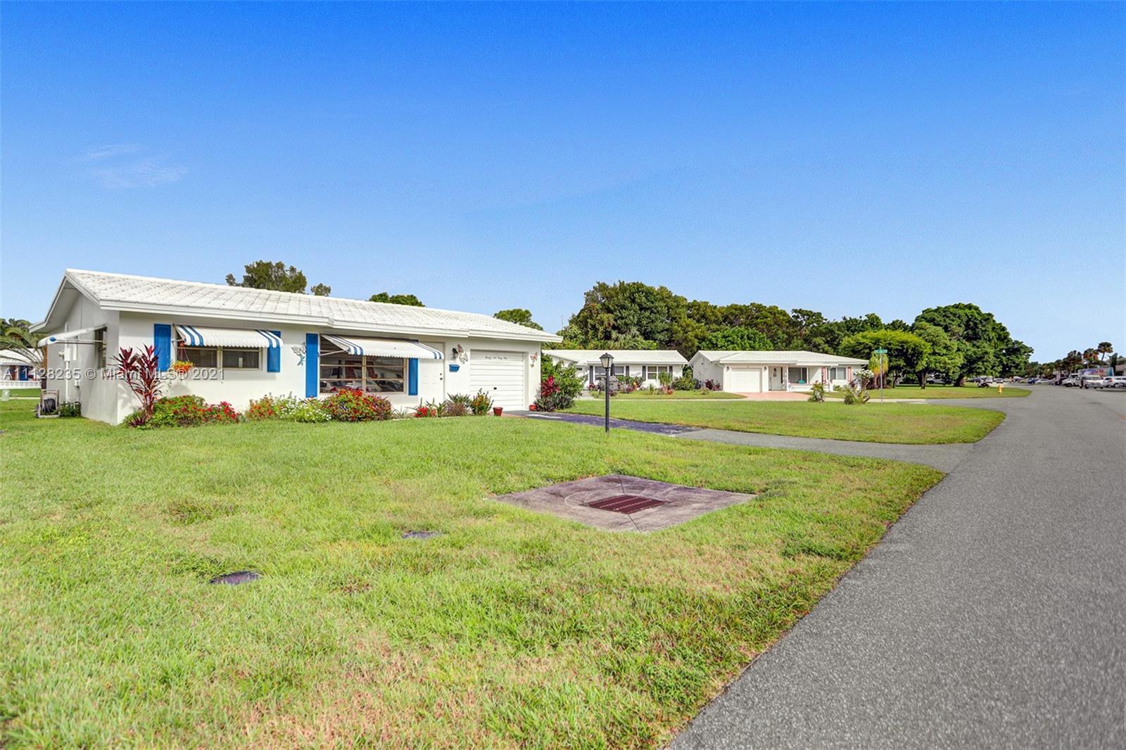 Come check out a quiet (55+) cozy 2 bedroom 1 bath single family home in Leisureville of Pompano Beach. The property sits on an awesome corner lot, has a one car garage, new floors, and was just painted inside and out. The low HOA covers two heated swimming pools, a sauna , golf course with unlimited play (NO extra FEE), two clubhouses(one is being re-done now). Additionally you get to enjoy a pool table, ping-pong, outdoor shuffle board and more. The HOA also covers your city water, landscaping and irrigation!! The board is working together in updating activities, get togethers, and much more for the quality of enjoyment you will love! The location can't be beat as you are a couple minutes away from the highway and 5-10 minutes to the beach. Pets welcome!