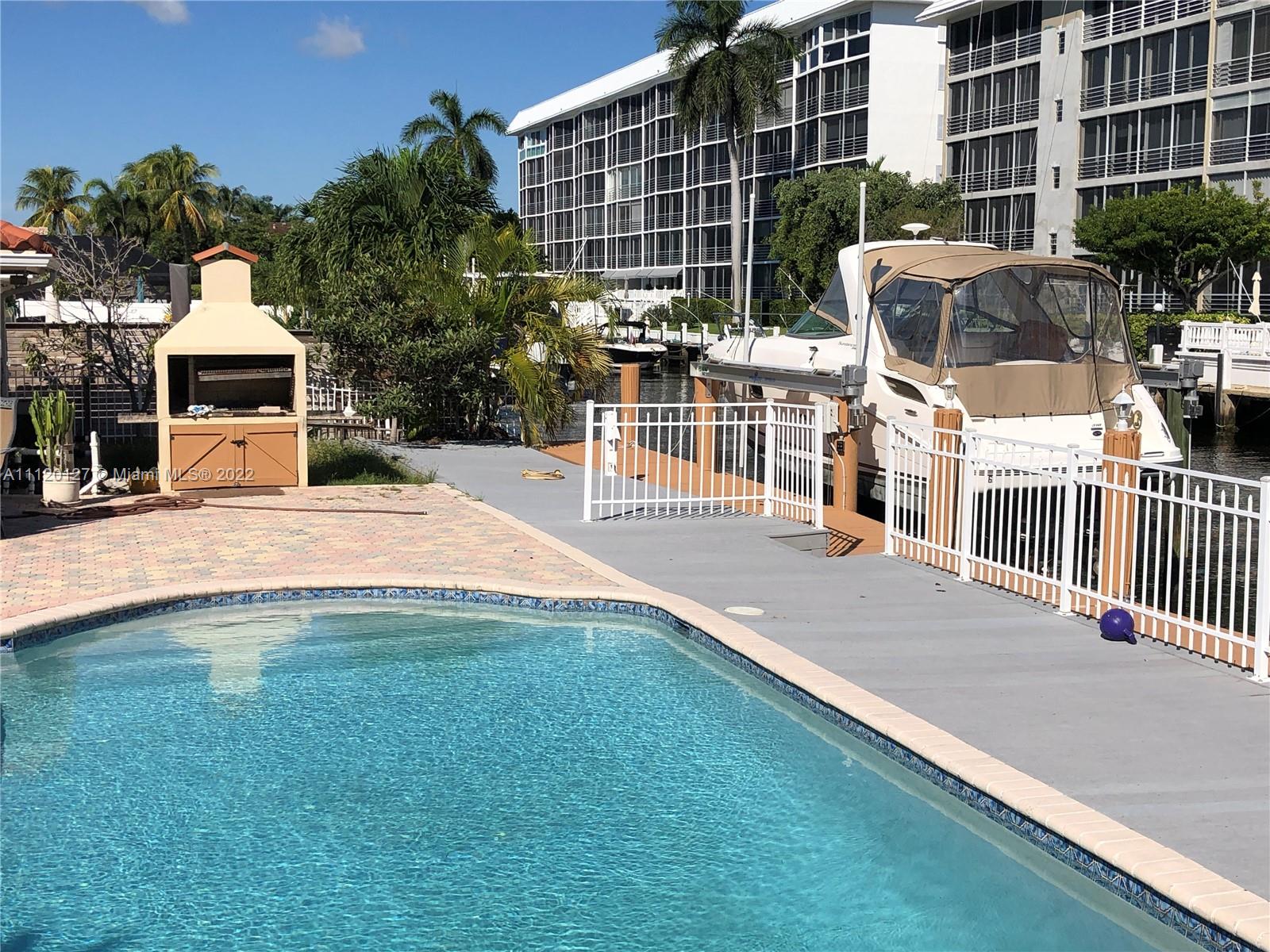 Live right by desired Lauderdale By The Sea. Estate home w ocean access in prestigious Coral Ridge Country Club. Boater’s dream 3 bedroom & 3 bathrooms home with 85 feet water frontage. Deep water canal with no fixed bridges, new dock with a 12 ton capacity hydraulic boat lift. Open concept design with marble flooring throughout, 2 car garage, newer roof and A/C equipment, impact windows, circular driveway and more...Seawall was recently repaired and improved. Pool/spa area has a large covered patio with best sun exposure as it faces south. Florida room under A/C is great for entertainment. Used as a vacation home, make it your own or buy it as an investment. Move in ready. Conveniently located just minutes to the beach and restaurants. The boat is sold separately.