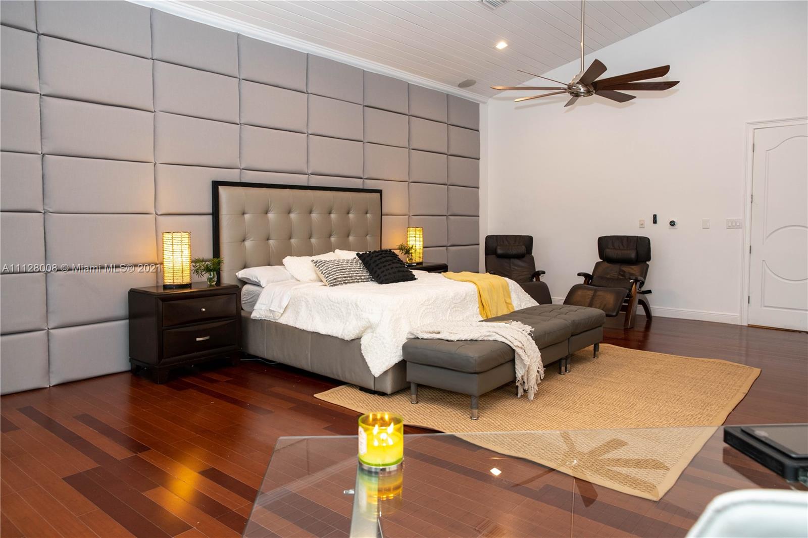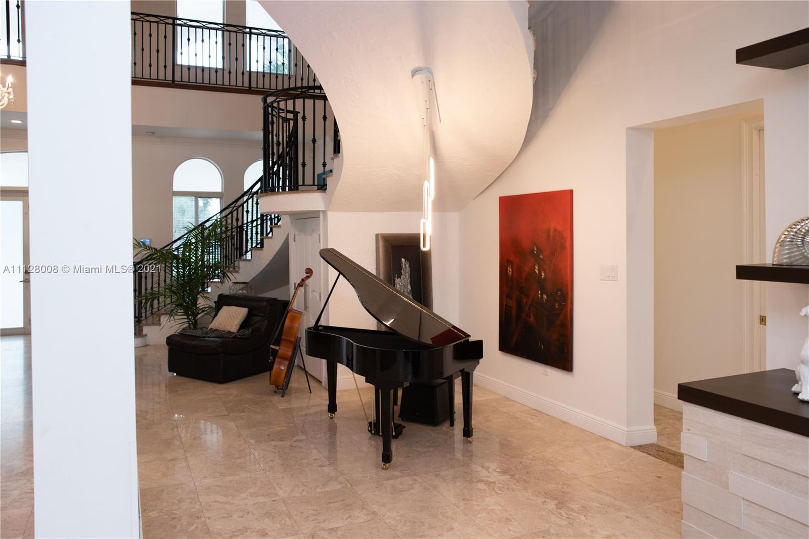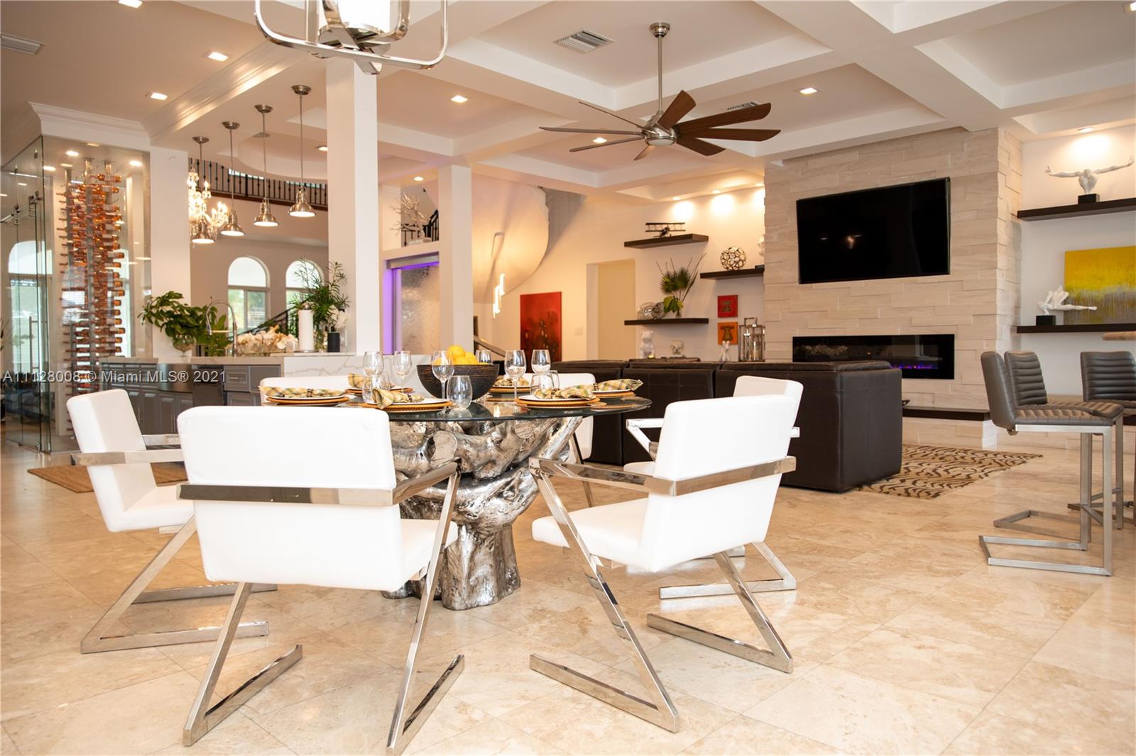 This architecturally stunning 6B+4B (7,598 sf | 1 acre lot) 2014 home displays exquisite sophistication & thoughtful details throughout. This Modern home, seamlessly combines a traditional w/ a modern twist, creating a balance that boasts comfort, natural light, & warmth. From the moment you enter you are greeted with soaring 31 foot high cedar ceilings, and a one of a kind exquisite granite and wrought iron staircase. Family room excels in designer soffit ceilings and fireplace to offer a large social gathering space around an elegant Chef Kitchen w/ stunning Calacatta countertops on display. A wine glass room backed by a large, elegant island with 4 chrome pendant lights over the sink that illuminate the bright gray design of this kitchen and provides space for cooking and entertaining.