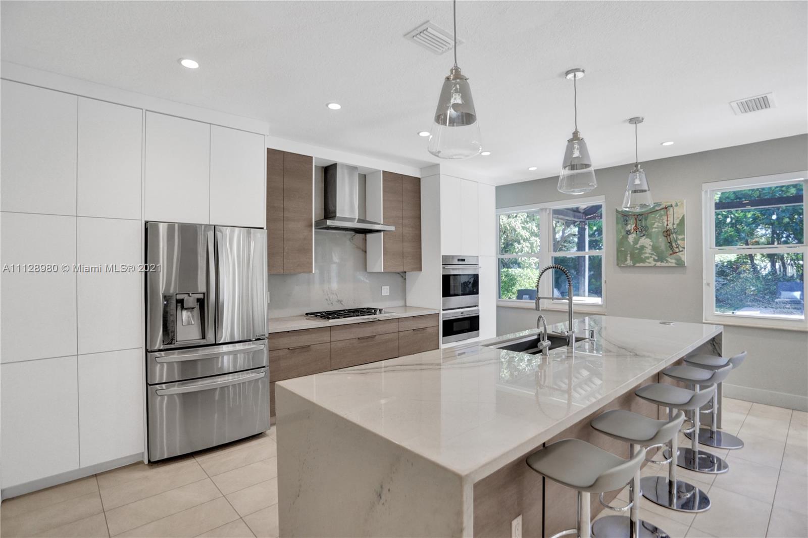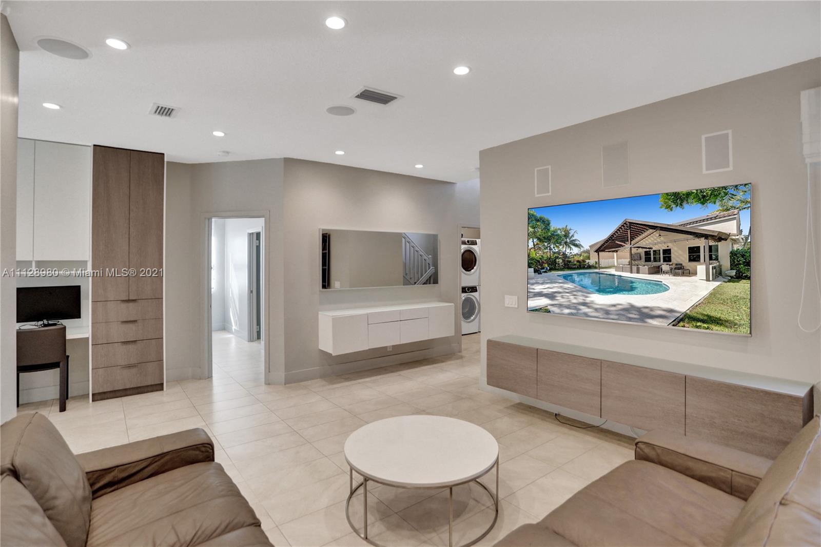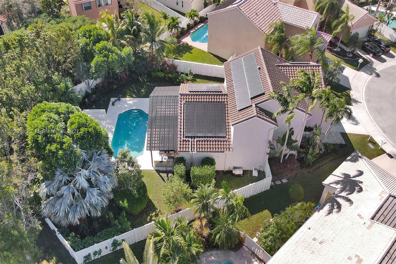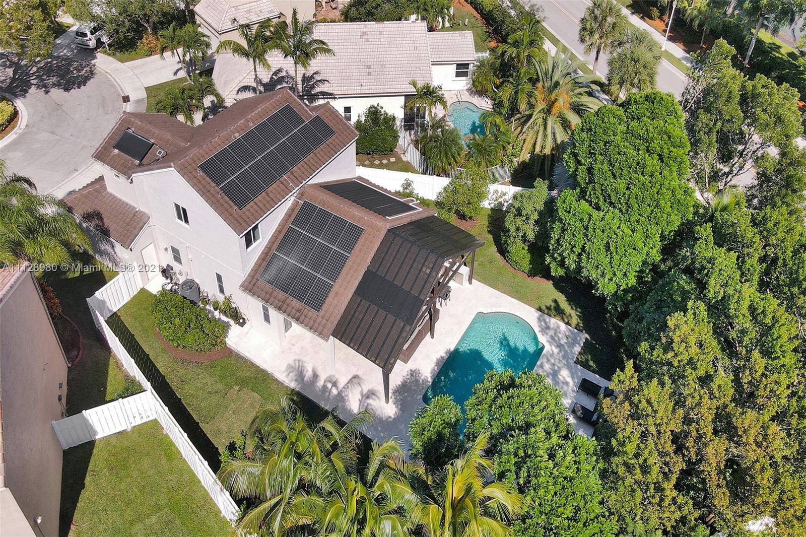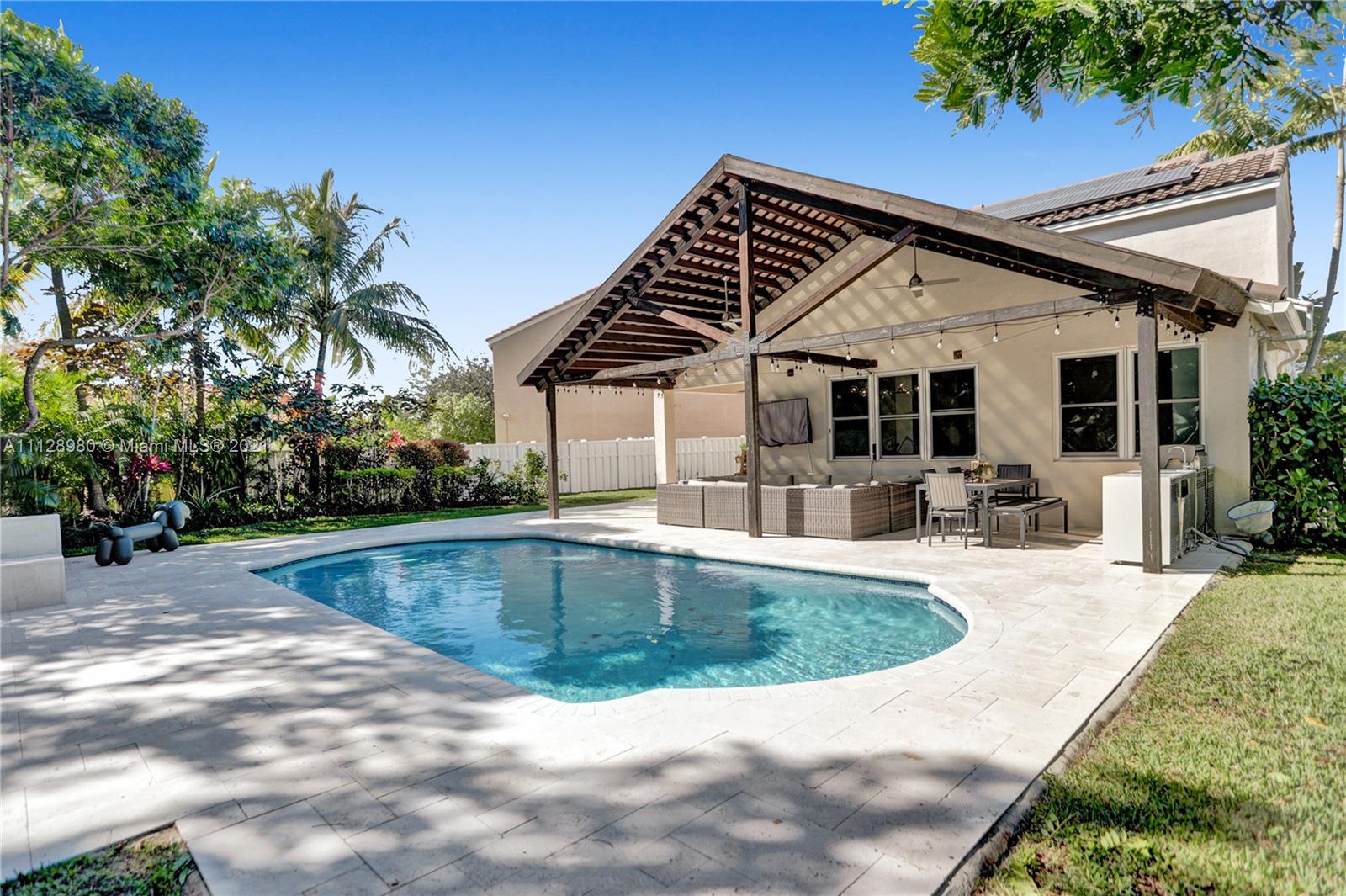 STUNNING & MOVE-IN ready two story home located in "The Falls" on a premier, oversized cul-de-sac lot! This 5 bedroom, 3 1/2 bath home with a spacious floor plan has been beautifully remodeled with only the finest of finishes! Numerous features include: absolutely gorgeous kitchen with large center island, gas stove & top-of-the-line appliances, custom cabinets & built-ins galore, master bedroom suite with luxurious bath, laundry room with 2 washers & dryers, Tesla charger in garage, solar power & solar water/pool heaters, giant pergola perfect for entertaining & enjoying South Florida living with built-in BBQ, sink & refrigerator, custom fire pit & seating area all surrounding the pool & private backyard with lush landscaping & lighting! Hurricane IMPACT Glass & Roof is only 3 years old!