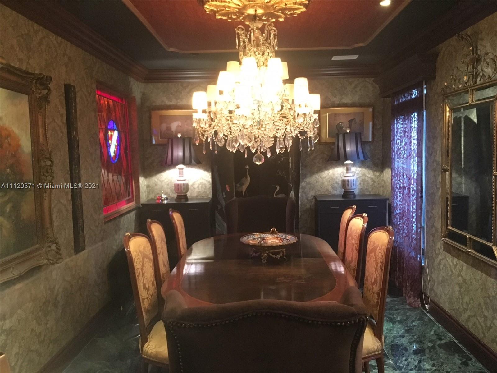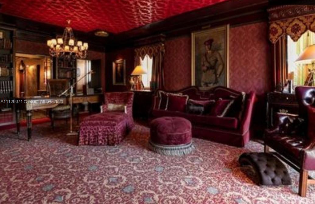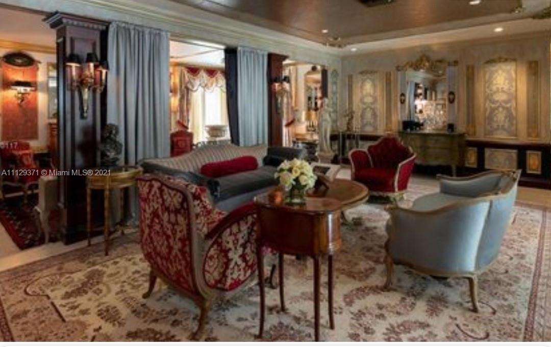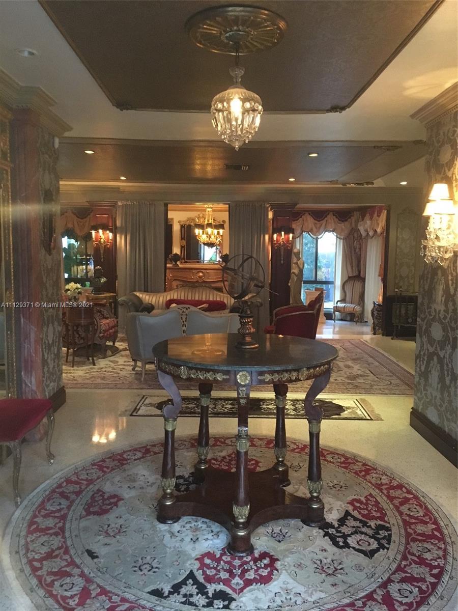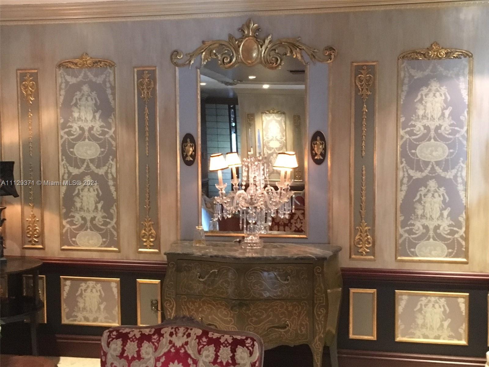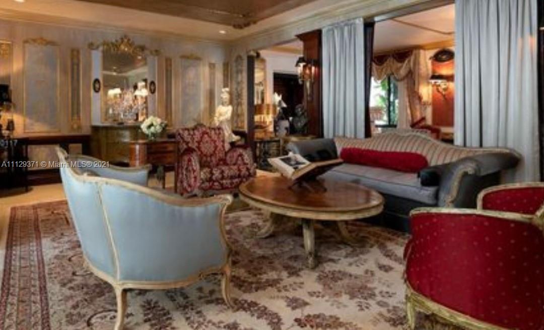 ***Estate Sale***Chandeliers/some curtains not included. Must be approved by Probate Judge once loan commitment & appraisal are completed. This 2808sqft home has been featured in Florida Design Magazine and in numerous music videos due to the Neo Classical and Rococo style. The luscious landscape for the utmost privacy and the open space with Gold Leaf wood trims, elegant wall paper, marble floors and natural terrazzo floors. Renovated bathrooms and gas kitchen. Home has 3 bedrooms and can use the great Florida/den room for another huge master room. very spacious for a large family. You will feel like Royalty. Furniture will also be for sale.