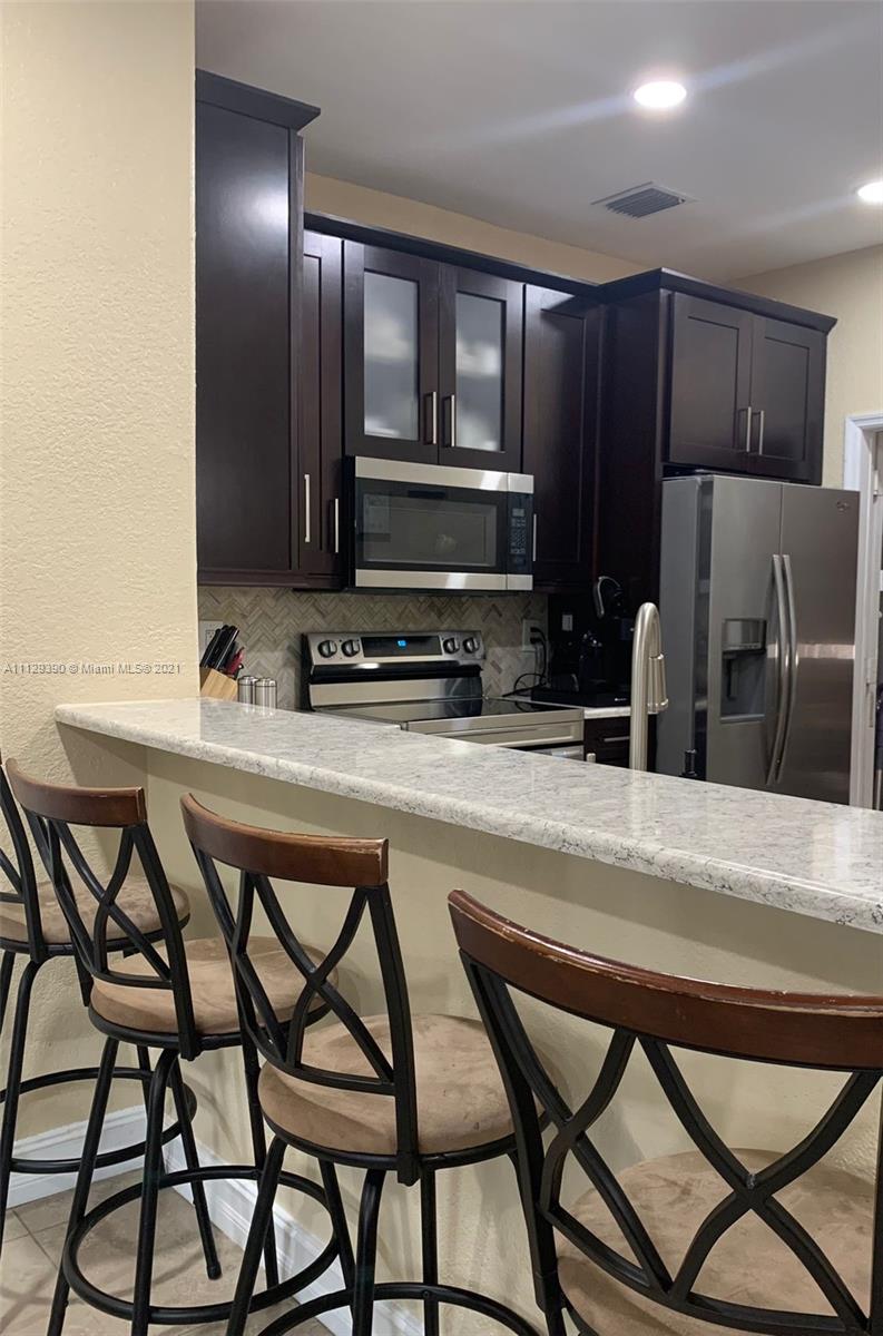 Beautiful and spacious townhouse with lovely gazebo in the extra large backyard. NEW quartz counters with SS appliances, 20" porcelain tile, huge master with tray ceilings and Roman tub. NEW laminate upstairs, NEW paint all over, washer/dryer upstairs. Half of the garage is converted to an additional bonus room for an office or small bedroom. Low HOA includes cable, gardening, security, gym, sauna, basketball, tennis and playground. Private wholesale financing available with 3.5% down and only $1498 per month for qualified buyers!